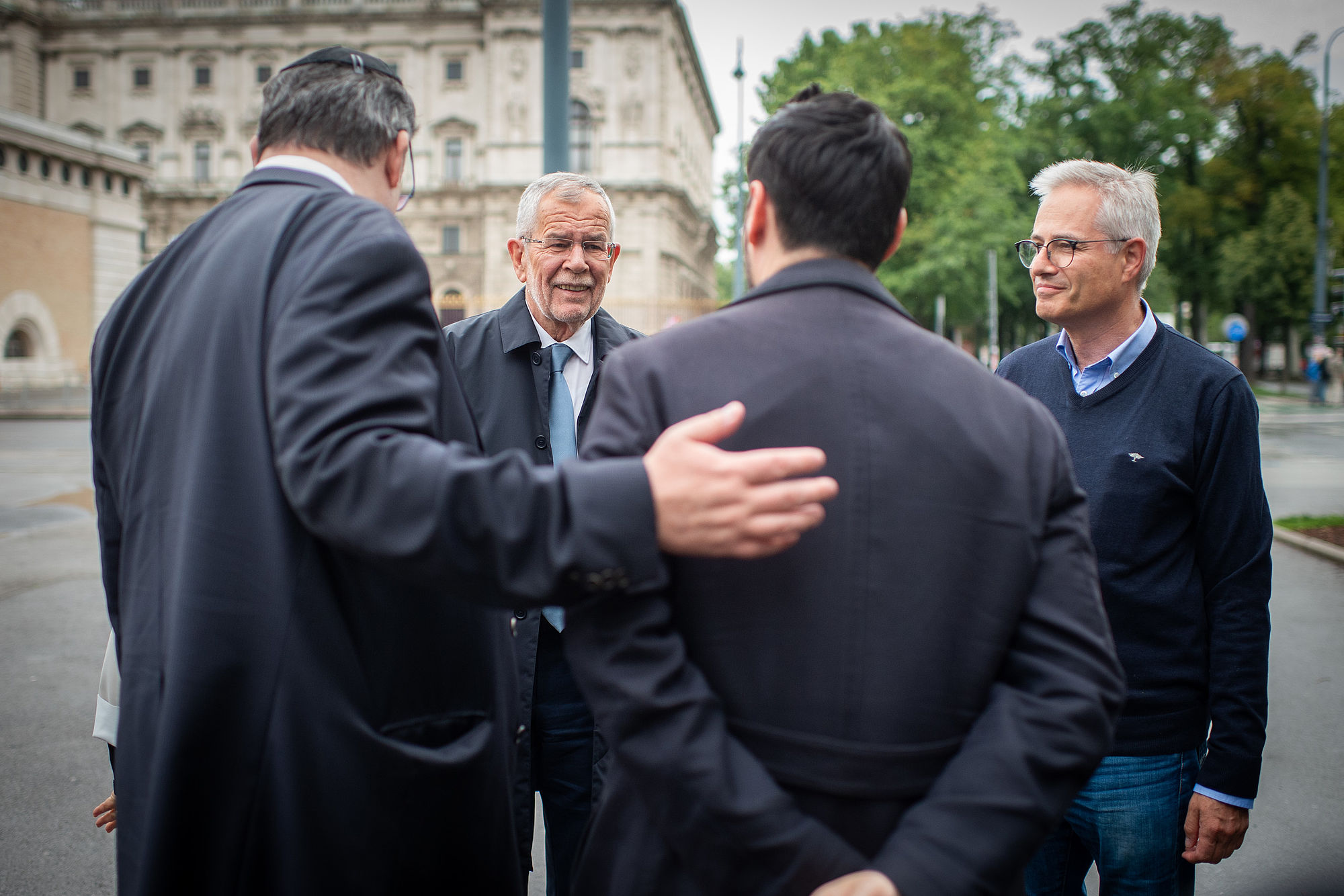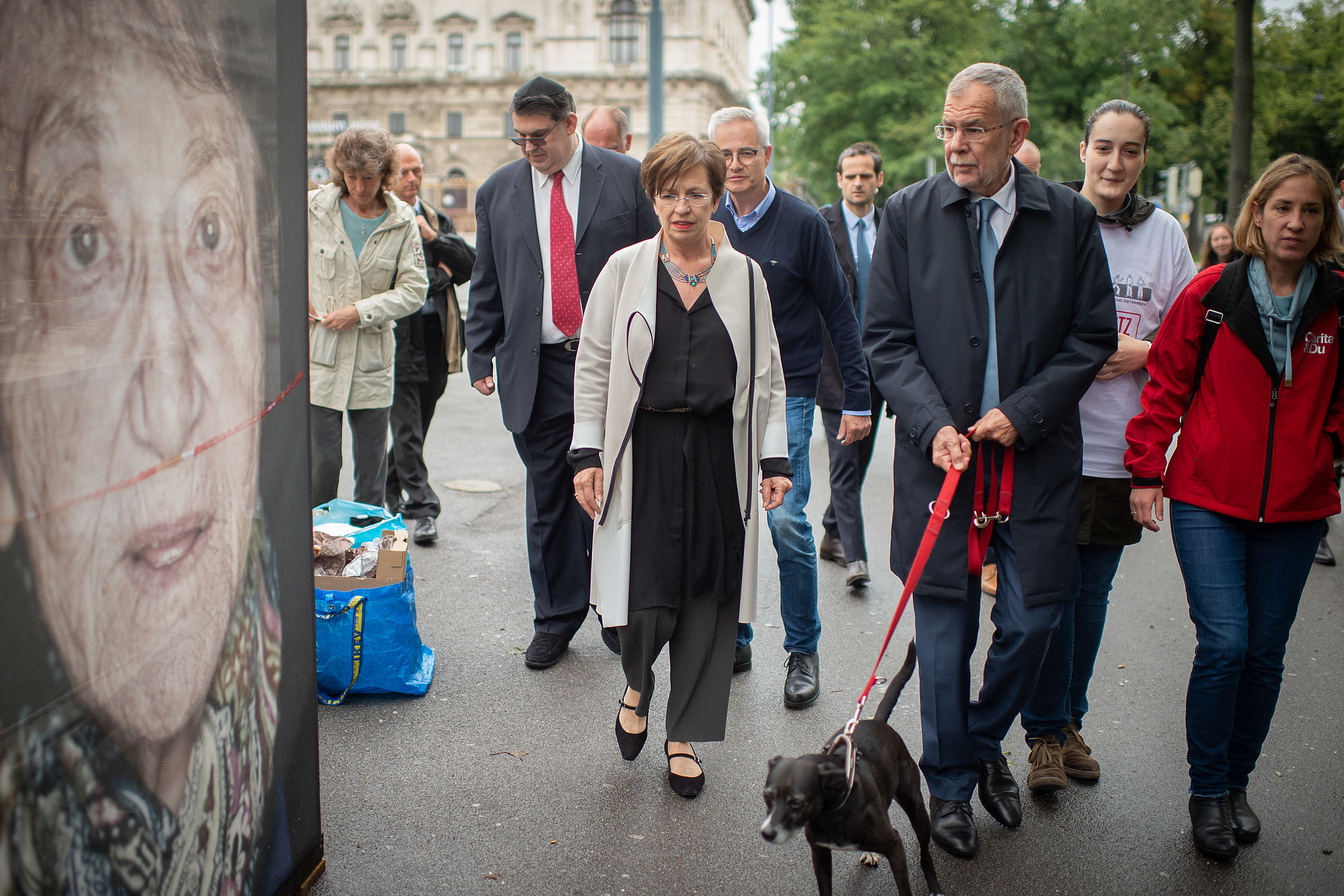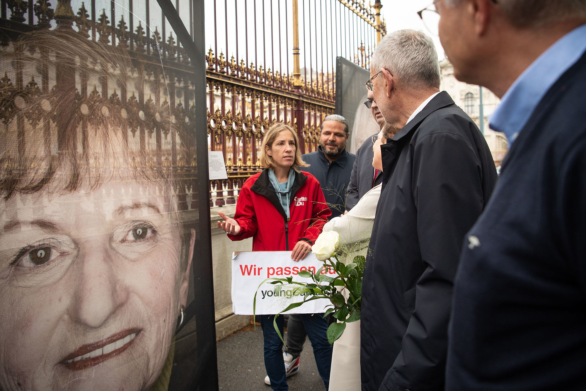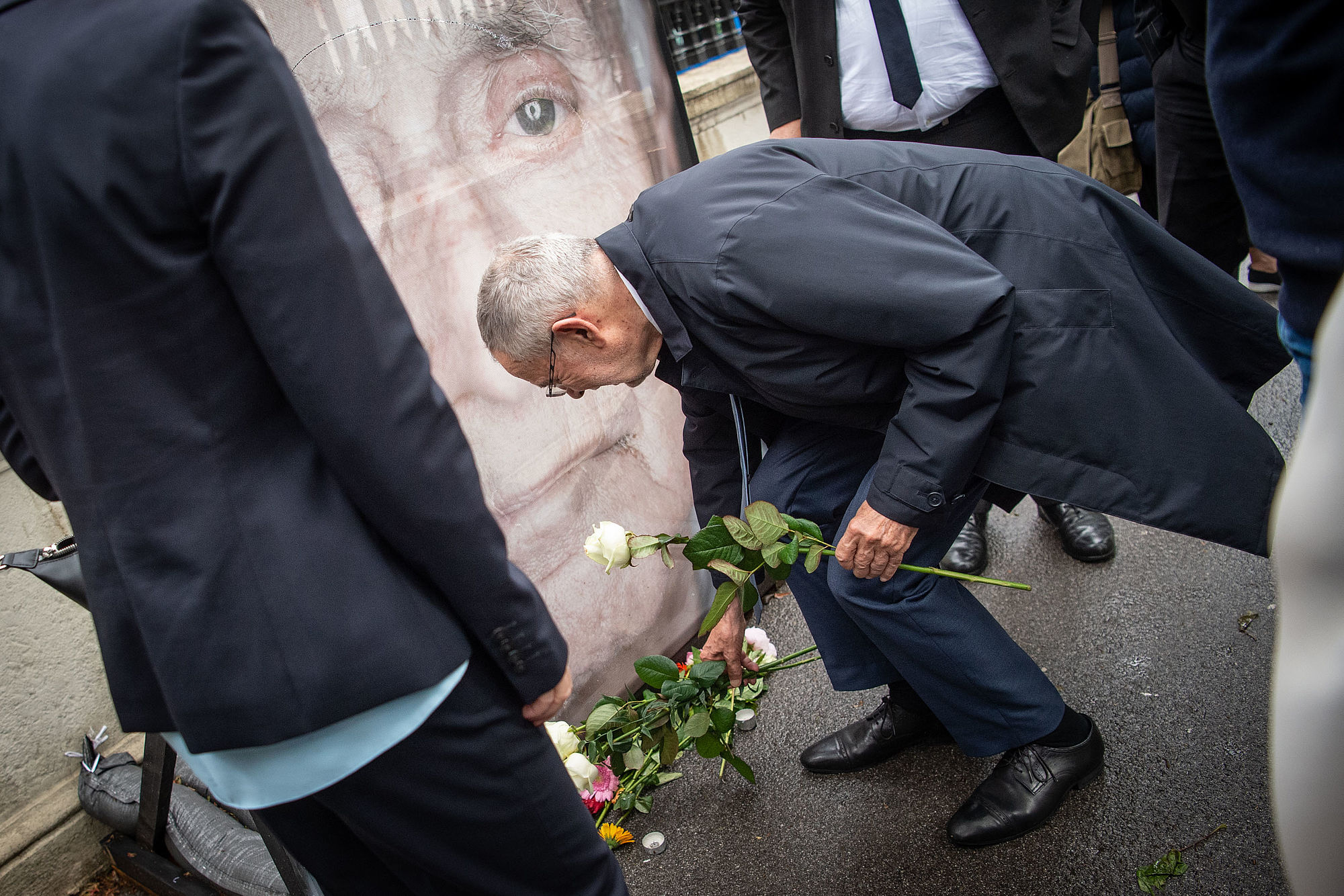 Bundespräsident Alexander Van der Bellen hat am Dienstag die Mahnwache für die zerschnittenen Porträts der Opfer der NS-Gräuel auf der Ringstraße besucht.