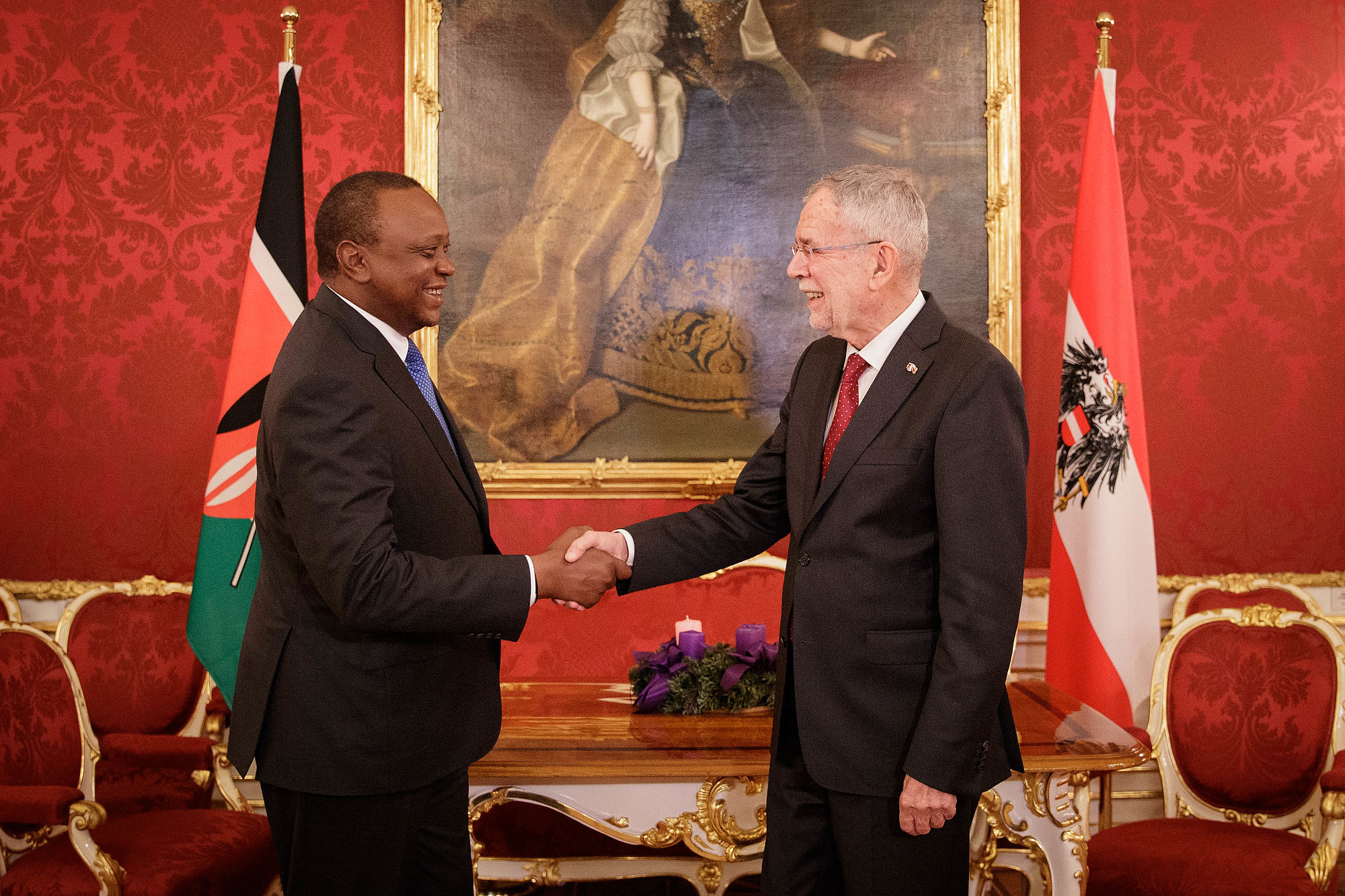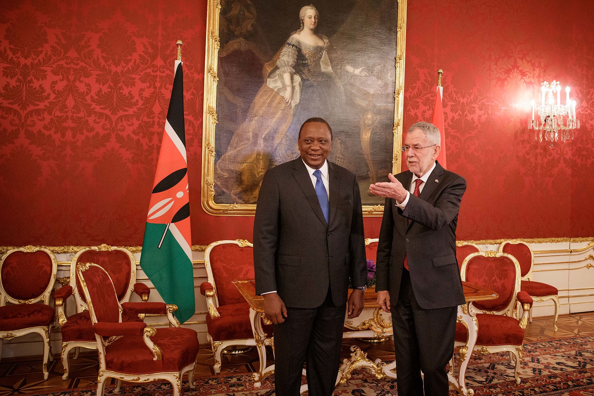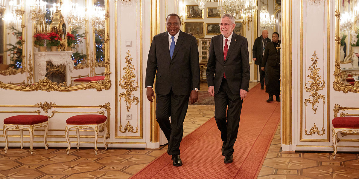 Bundespräsident Alexander Van der Bellen trifft mit dem Präsidenten der Republik Kenia Uhuru Kenyatta, welcher anlässlich des EU-Afrika-Forums nach Wien gekommen ist, zu einem Arbeitsgespräch zusammen.