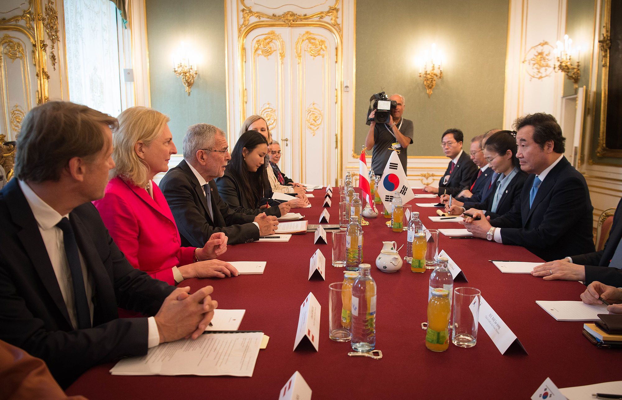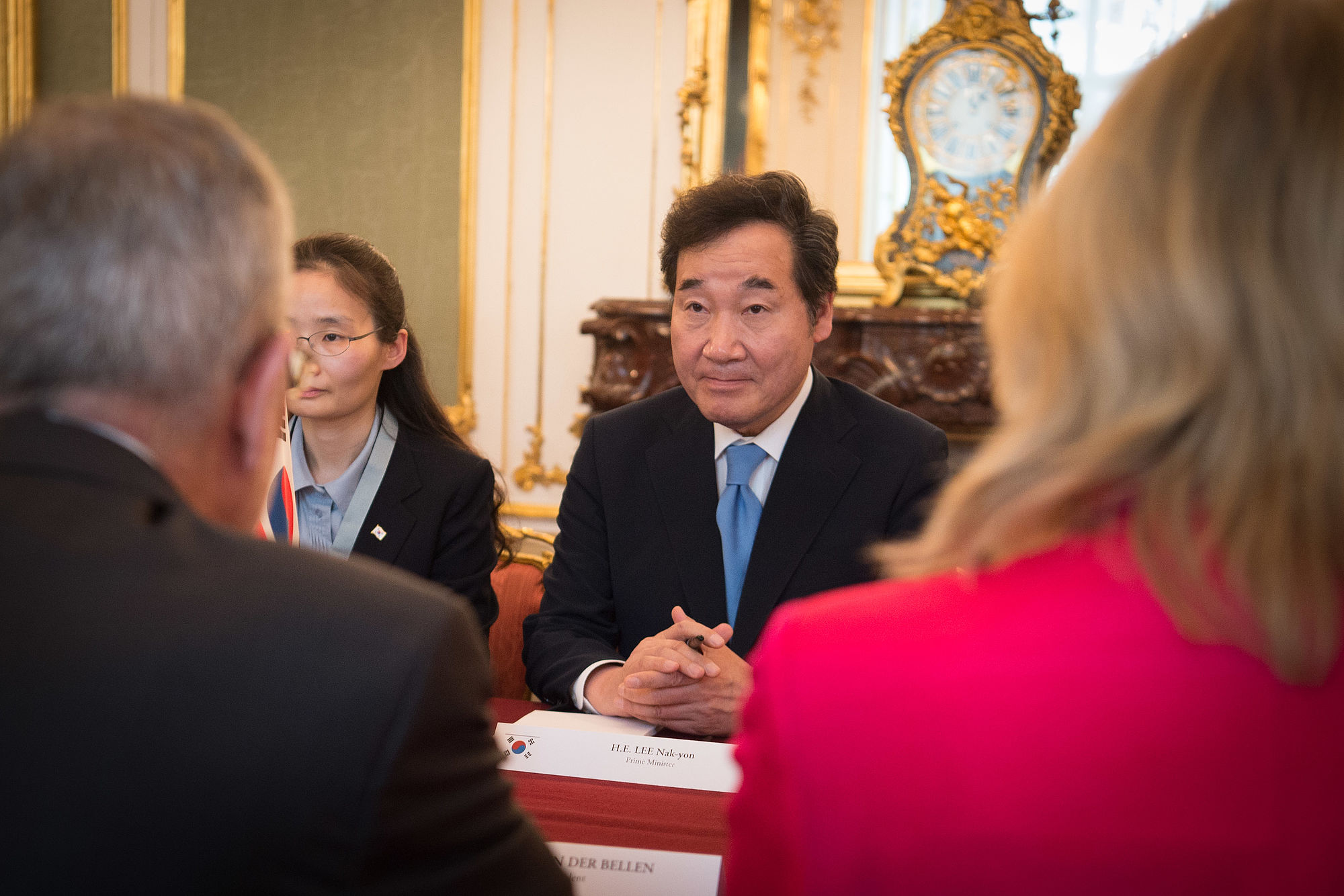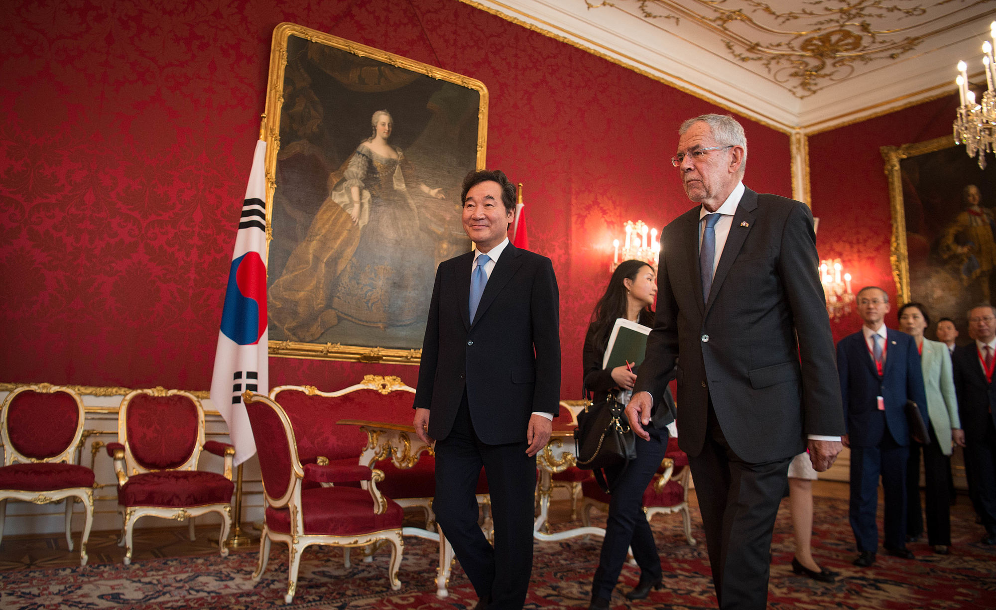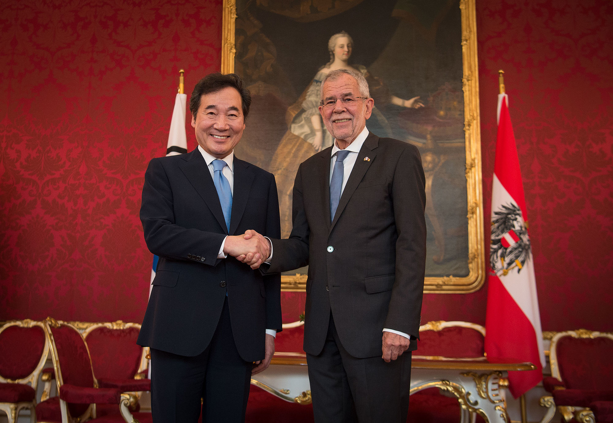 Bundespräsident Alexander Van der Bellen trifft den Premierminister von Südkorea, Lee Nak-yon, in der Präsidentschaftskanzlei zu Gesprächen über die aktuellen Entwicklungen auf der koreanischen Halbinsel.