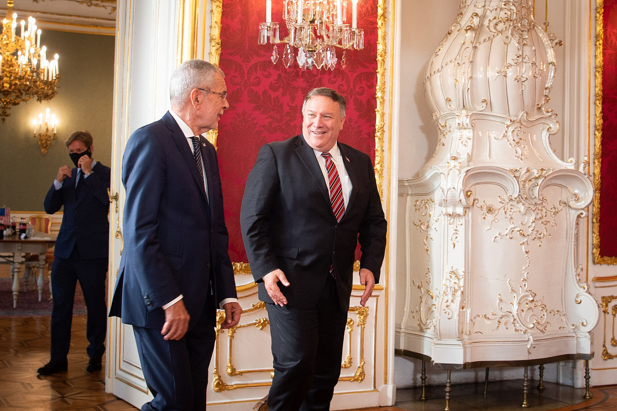 Bundespräsident Alexander Van der Bellen empfing heute US-Außenminister @SecPompeo anlässlich seines Wien-Besuches. Themen waren ua. die aktuelle Covid-Pandemie und der wirtschaftliche Neustart Europas nach dem Lockdown. Dieser müsse nachhaltig sein. (1/2) pic.twitter.com/31mj7TTtPl