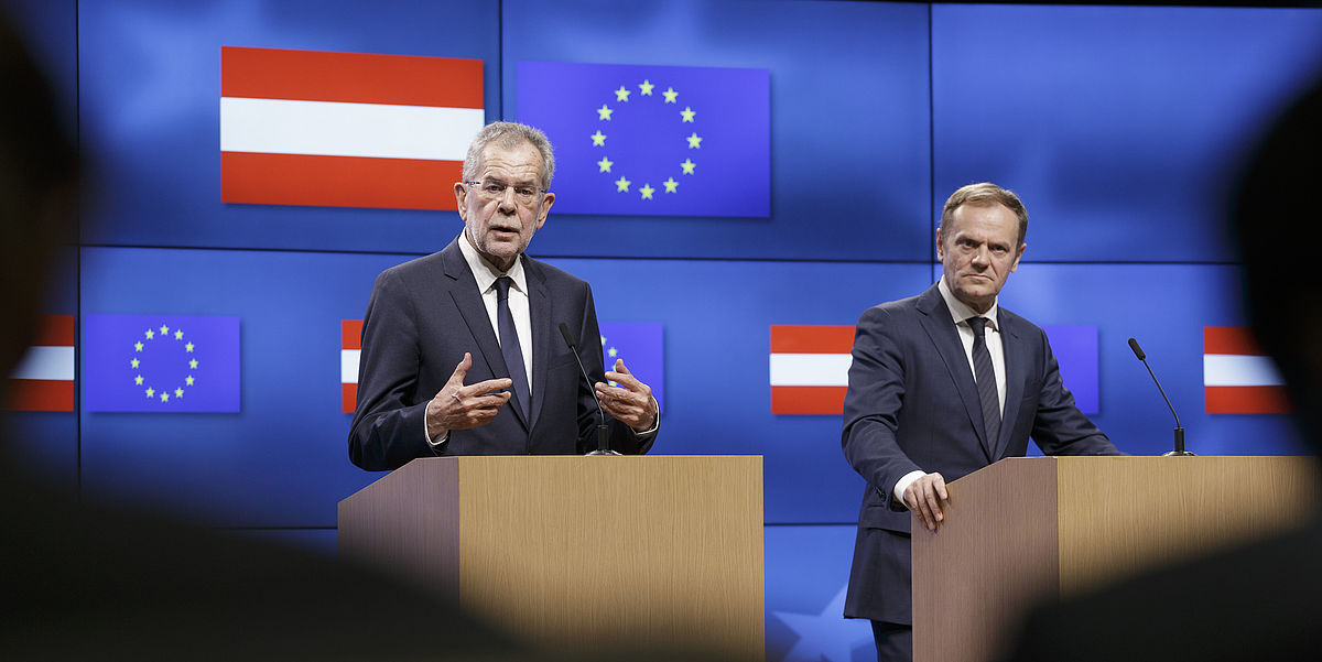 | Bundespräsident Alexander Van der Bellen ist von EU-Ratspräsident Donald Tusk mit "Bewunderung und Respekt" in Brüssel empfangen worden, wie der polnische EU-Spitzenpolitiker am Montag nach dem Treffen in Brüssel sagte. "Sein Wahlsieg ist ein Zeichen der Hoffnung für Millionen geworden", sagte Tusk. Es lohne sich für das zu kämpfen, was Europa in 60 Jahren geschaffen habe. "In einigen Kreisen ist es jetzt in Mode, gegen die EU zu sein", sagte Tusk. Dabei seien vor dem EU-Sondergipfel im März in Rom zum 60-jährigen Bestehen der Gemeinschaft die Herausforderungen größer denn je zuvor. Die geopolitische Lage sei "gelinde gesagt schwierig". Dazu würden noch die Auseinandersetzungen mit Populisten kommen. Bundespräsident Van der Bellen betonte, es sei ihm wichtig gewesen, seine erste Reise als Bundespräsident nach Brüssel zu machen, wobei Brüssel nicht wirklich zum Ausland zähle, "wir sind alle Teil der Europäischen Union". Er dankte Tusk für die "ungemein freundliche Aufnahme". Es sei schön, dass die österreichische Bundespräsidentenwahl auch außerhalb Österreichs auf großes Interesse gestoßen sei. Dabei sieht Van der Bellen ein "paradoxes Resultat" des britischen Brexit-Votums. Diese "fatale Entscheidung" der Briten habe in Österreich ein neues Bewusstsein über die Richtigkeit und die Notwendigkeit der Mitgliedschaft in der Europäischen Union herbeigeführt. Ein weiterer Schwerpunkt der gemeinsamen Beratungen zwischen Van der Bellen, Tusk und Bundeskanzler Christian Kern war die Migrationskrise. Tusk betonte, die EU habe in diesem Bereich schon viel geschafft. Österreich sei auf dem Höhepunkt der Flüchtlingskrise "im Auge des Sturms" gestanden. Die EU konzentriere sich darauf, die illegale Migration von Libyen nach Italien zu reduzieren. Aber auch die östliche Mittelmeerroute müsse in Zusammenarbeit mit der Türkei und anderen Partnern geschlossen bleiben. Auch Bundeskanzler Kern erklärte, die EU habe in der Migrationskrise in den vergangenen Monaten bereits große Fortschritte erzielt. Die Zusammenarbeit mit Libyen sollte man zwar nicht überbewerten. Ziel sei es aber zu einem Europa der offenen Grenzen zurückzukehren, die Grenzkontrollen "machen wir nicht aus Begeisterung". Ein weiteres Thema des Gesprächs war die Vorbereitung der österreichischen EU-Ratspräsidentschaft in der zweiten Hälfte des Jahres 2018. Kern kündigte an, soziale Fragen würden ein ganz wesentlicher Teil des österreichischen EU-Vorsitzes werden. Diese Politik sei am wenigsten weit in der EU, dabei gebe es eine Reihe von Verwerfungen auf den Arbeitsmärkten. "Wir wollen den sozialen Pfeiler zu einem wichtigen Teil Europas machen", so Kern. Die Zusammenarbeit mit Tusk bezeichnete der Bundeskanzler als "exzellent". ths/gru |