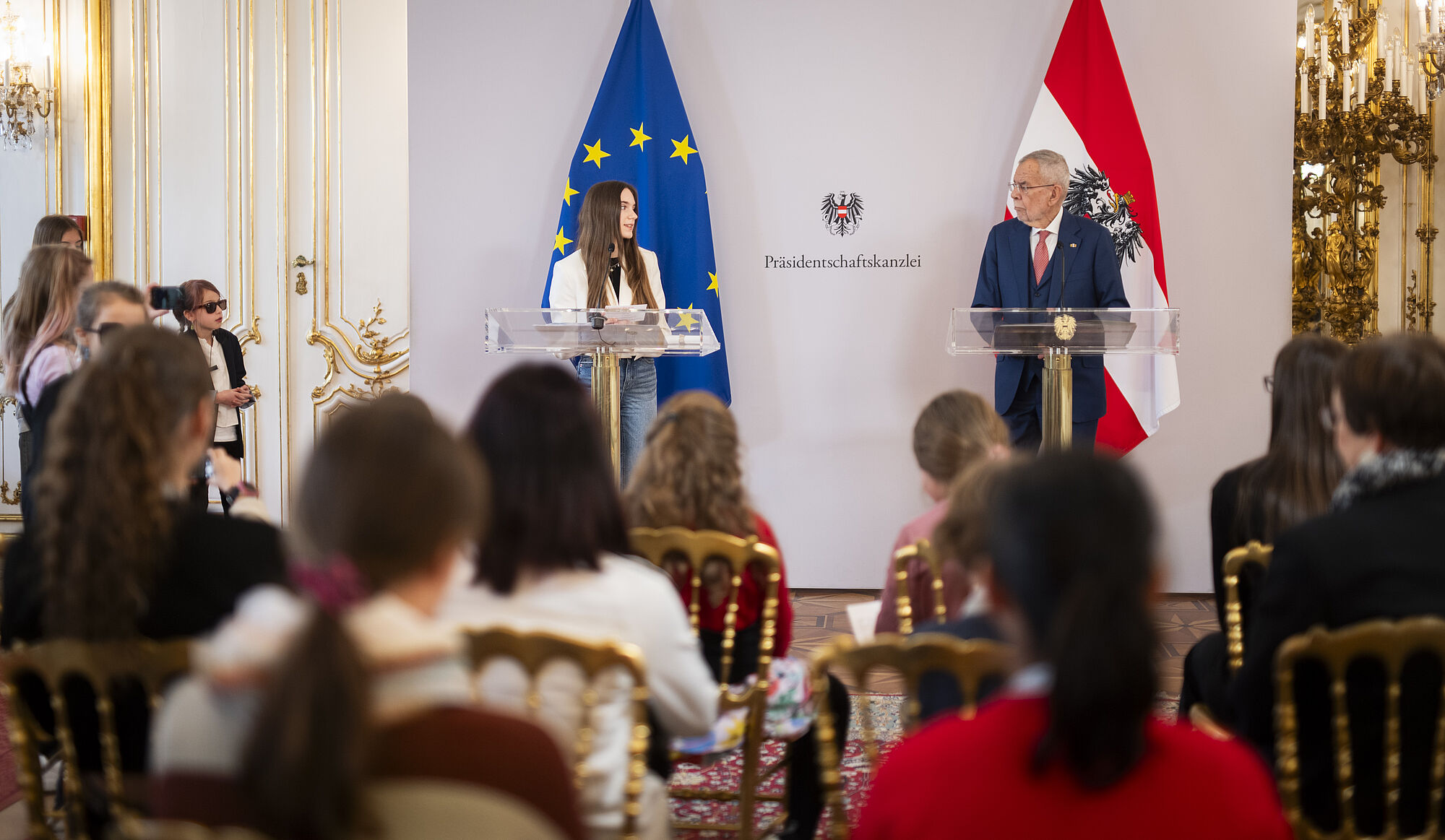 Als Sicherheitsbeamtinnen, Staatsgäste, Journalistinnen und Beraterinnen haben die Mädchen am „Girls‘ Day“ in der Hofburg einen Staatsbesuch absolviert und so verschiedene Berufsbilder und Politik hautnah kennenlernen können.