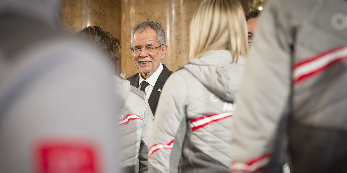Österreichs Staatsspitze mit Bundespräsident Alexander Van der Bellen, Bundeskanzler Sebastian Kurz sowie Vize-Kanzler und Sportminister Heinz-Christian Strache hat am Mittwoch das österreichische Olympia-Aufgebot für die bevorstehenden Winterspiele verabschiedet. "Alles Gute, wir werden auf jeden Fall stolz sein", sagte Alexander Van der Bellen beim Empfang des 105-köpfigen ÖOC-Teams in der Hofburg.