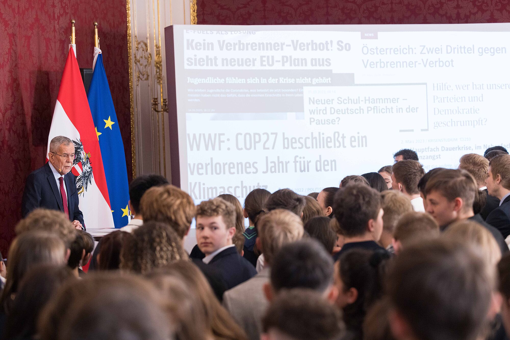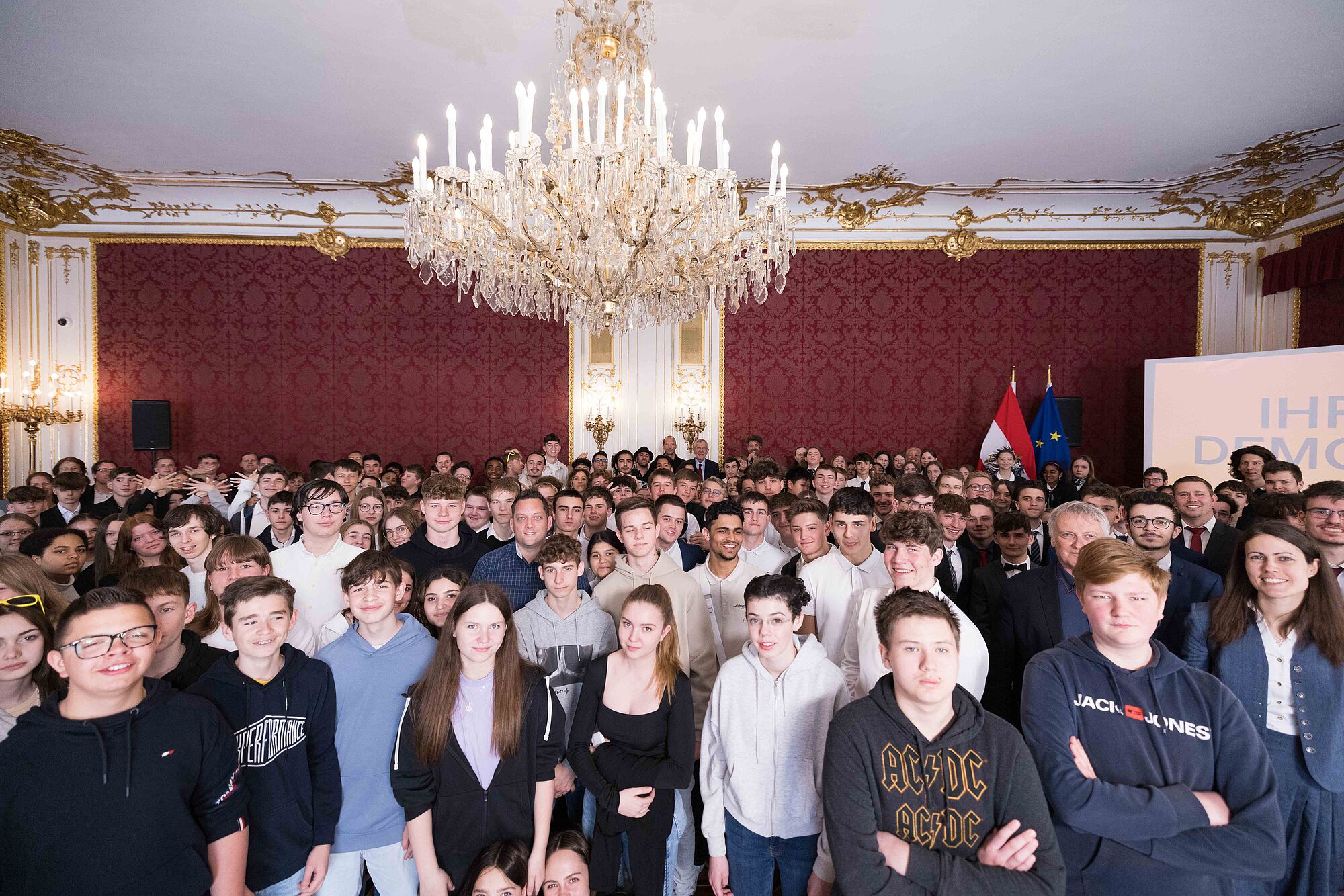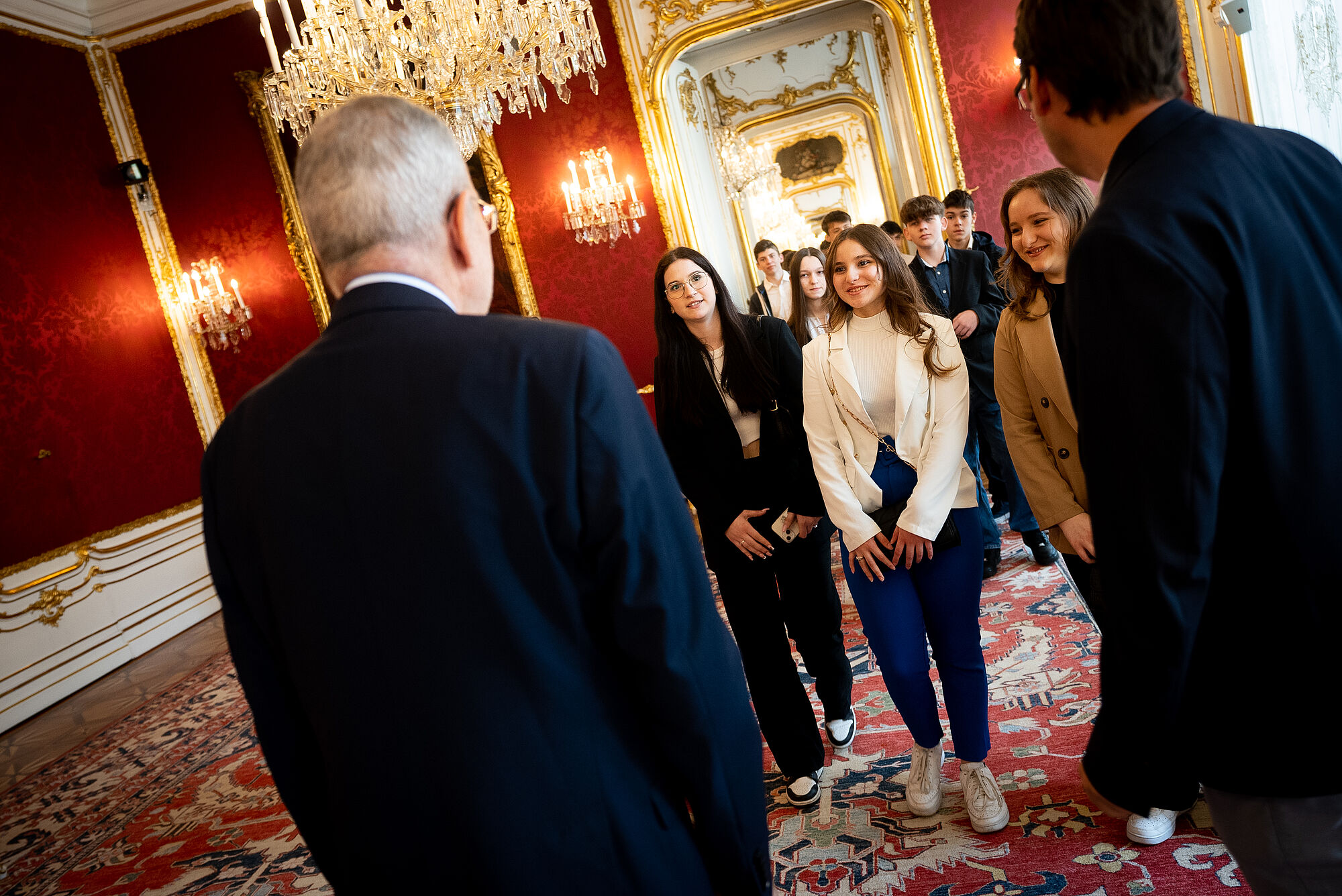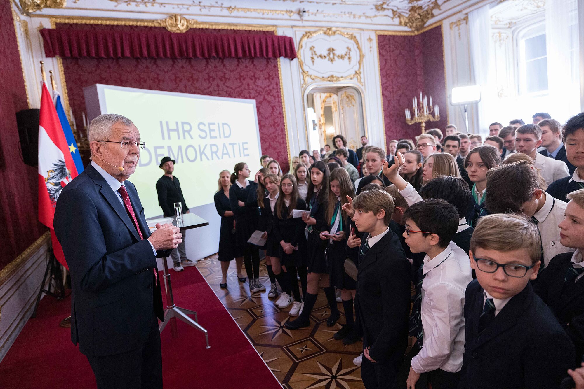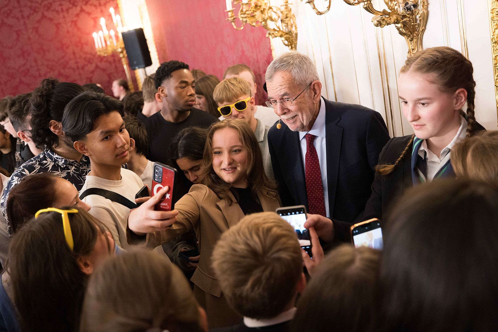 Über 260 Schülerinnen und Schüler haben Bundespräsident Alexander Van der Bellen am 15. Schüler:innentag in der Hofburg besucht.