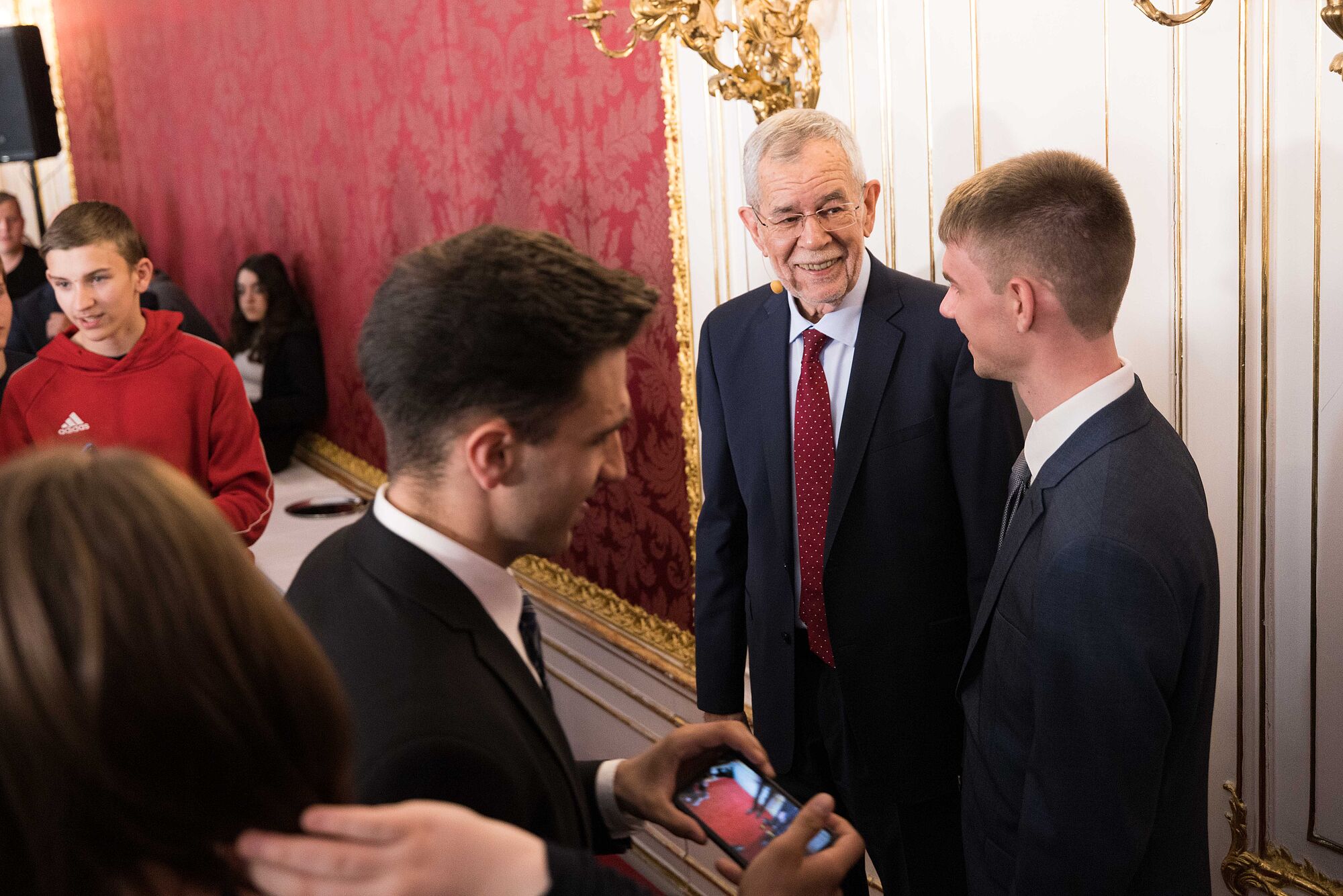 Nach einer kurzen Führung durch die Amtsräume der Präsidentschaftskanzlei gab es eine Diskussion mit Bundespräsident Alexander Van der Bellen. Der Dialog mit der Jugend ist dem Bundespräsidenten ein großes Anliegen.