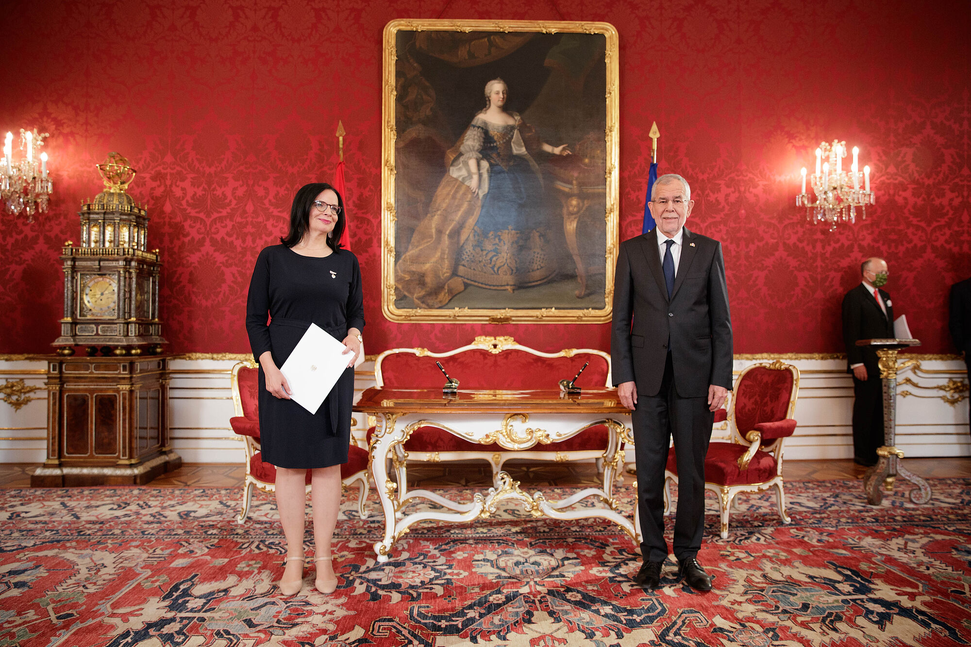 Gemäß den Bestimmungen der Bundesverfassung ist die Staatssekretärin vor Antritt ihres Amtes vom Bundespräsidenten anzugeloben.