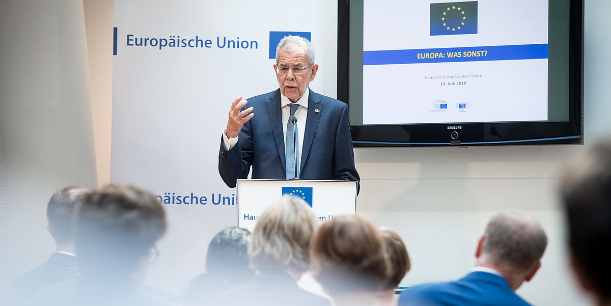 In Bezug auf die in Europa im Vormarsch befindlichen nationalistischen Bewegungen, die die EU für obsolet erklärten und nationale Souveränität über den europäischen Gedanken stellten, meinte der Bundespräsident. "Diesen Standpunkt kann man vertreten, wenn man dazusagt: Der europäische Zwergstaat, wenn er allein ist, ist einfach allein und sonst gar nichts - und als Zwergstaat Spielball mächtigerer Staaten."