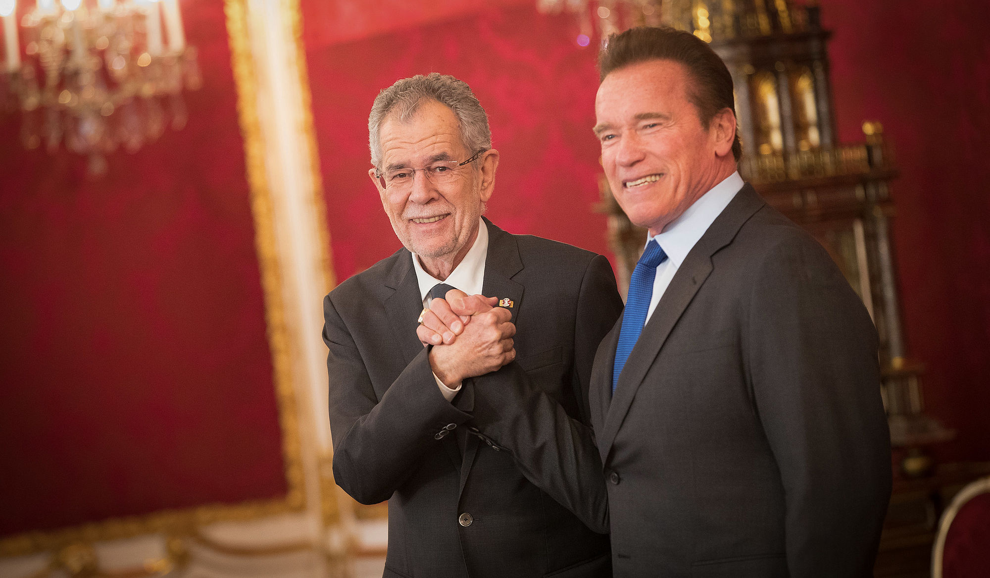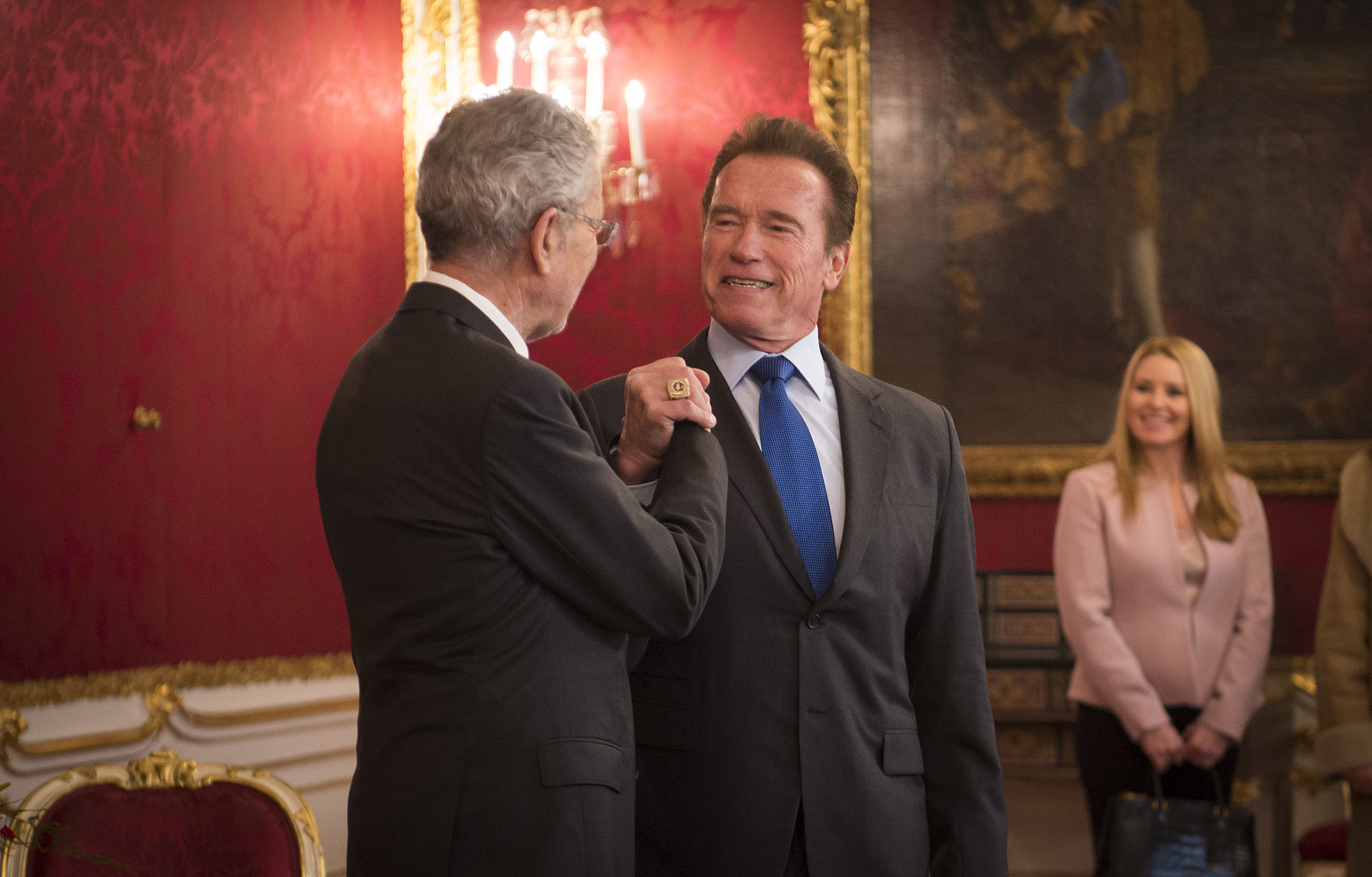 Sein Einsatz für eine "gesunde" Erde hat Arnold Schwarzenegger am Mittwoch erneut nach Wien geführt. Per kräftigem Handschlag begrüßte er Bundespräsidenten Alexander Van der Bellen in der Hofburg. "Klimaschutz ist kein Hobby", stellte dieser nach der gemeinsamen Unterredung vor Medienvertretern fest, während der "Terminator" eine 40-jährige Kampagne für den Klimaschutz ankündigte.