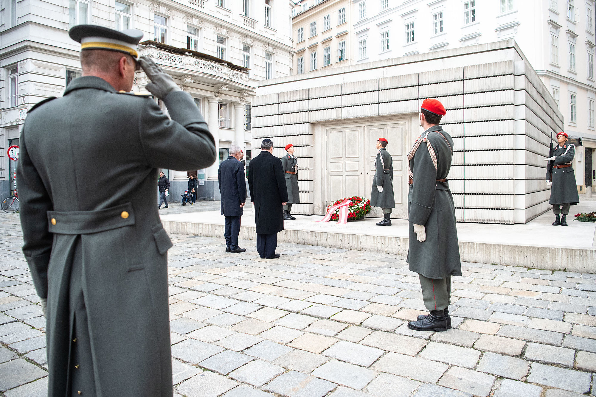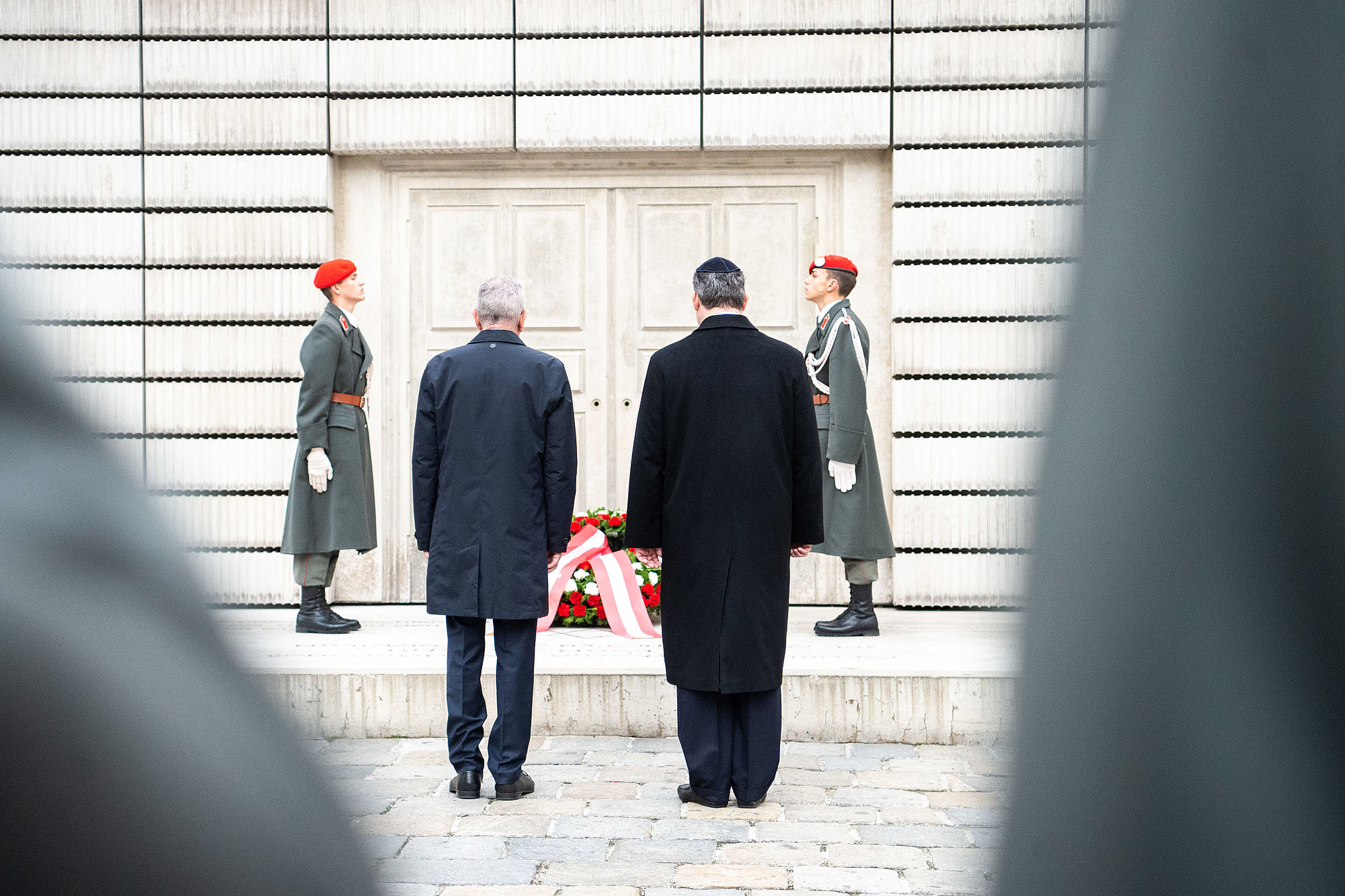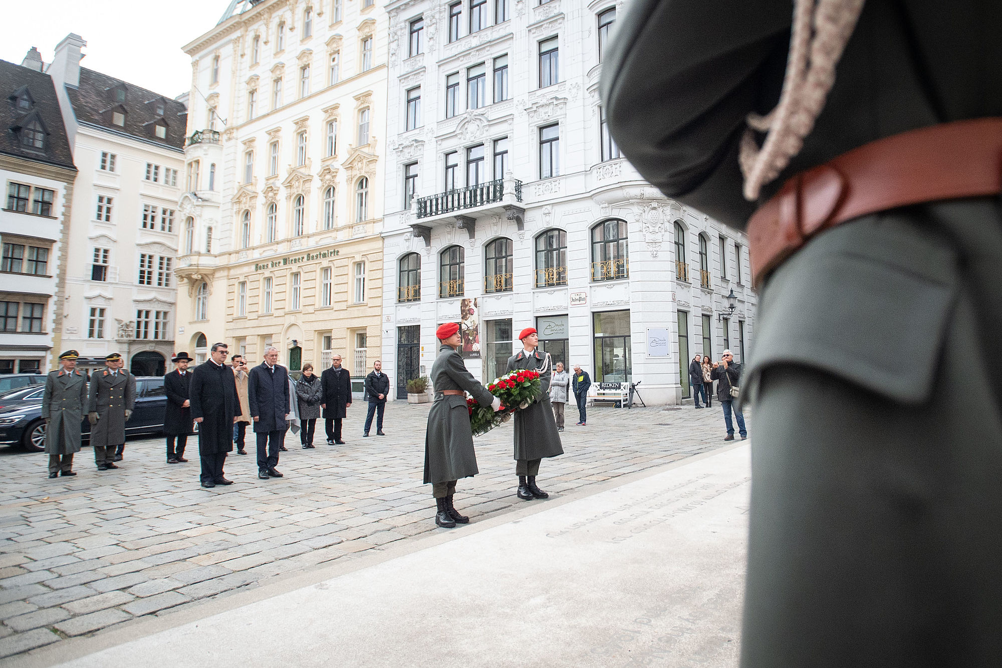 Kranzniederlegung anlässlich des Novemberpogroms beim Mahnmal für die österreichischen jüdischen Opfer der Schoah.