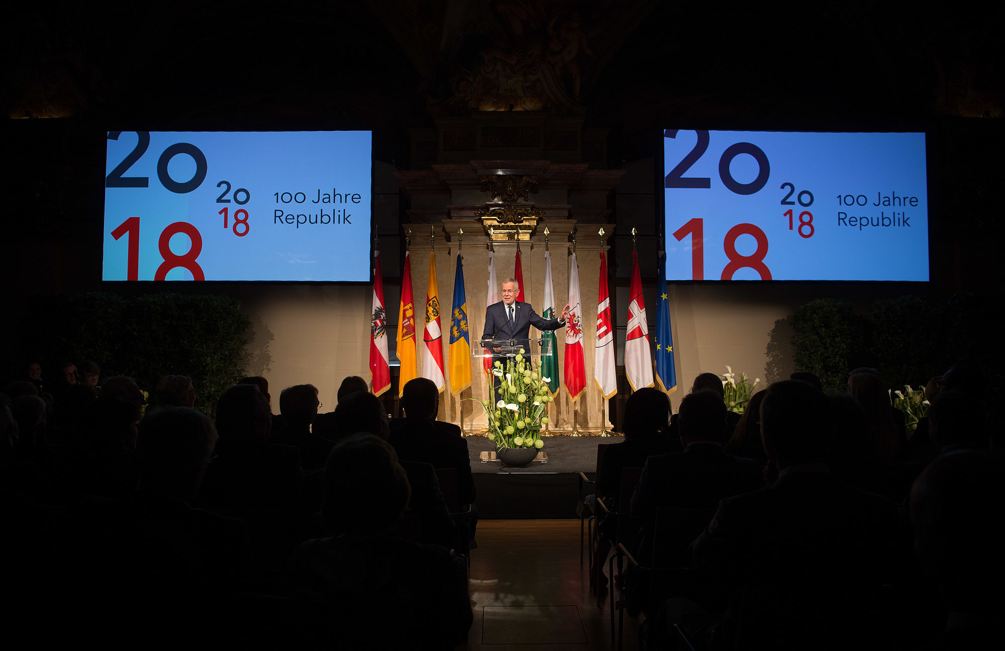 Mit einem Festakt ist am Donnerstag der Gründung der Republik Österreich vor 100 Jahren gedacht worden. Die Landeshauptleute brachen dabei eine Lanze für den Föderalismus und die EU, Bundespräsident Alexander Van der Bellen lobte die Länder als "Kitt eines gemeinsamen Europa". EU-Kommissionspräsident Jean-Claude Juncker erntete Applaus für seinen Appell, gegen "Gefahr von rechts" aufzustehen.