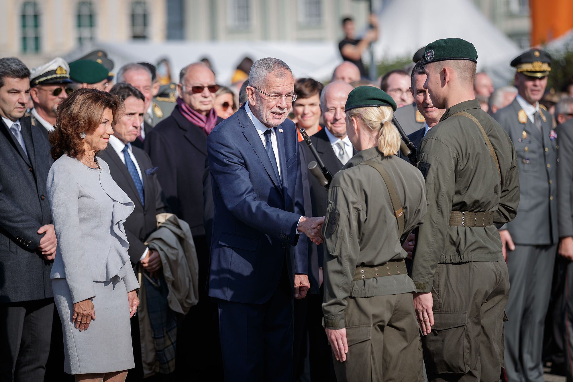 Mein besonderer Gruß gilt natürlich heute am Nationalfeiertag unseren Rekrutinnen und Rekruten. Sie werden in Kürze ihr Gelöbnis als Soldatinnen und Soldaten des Österreichischen Bundesheeres leisten.