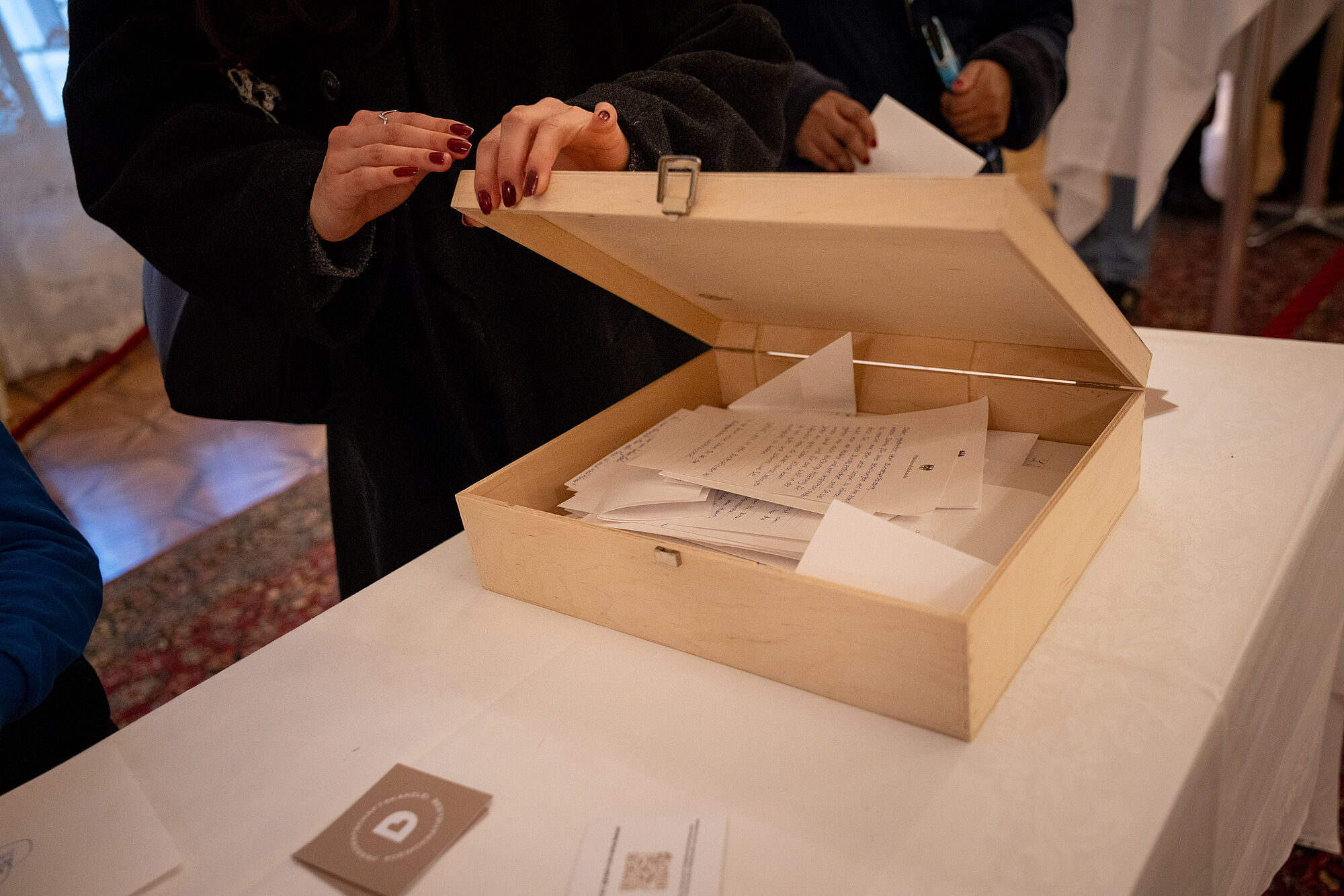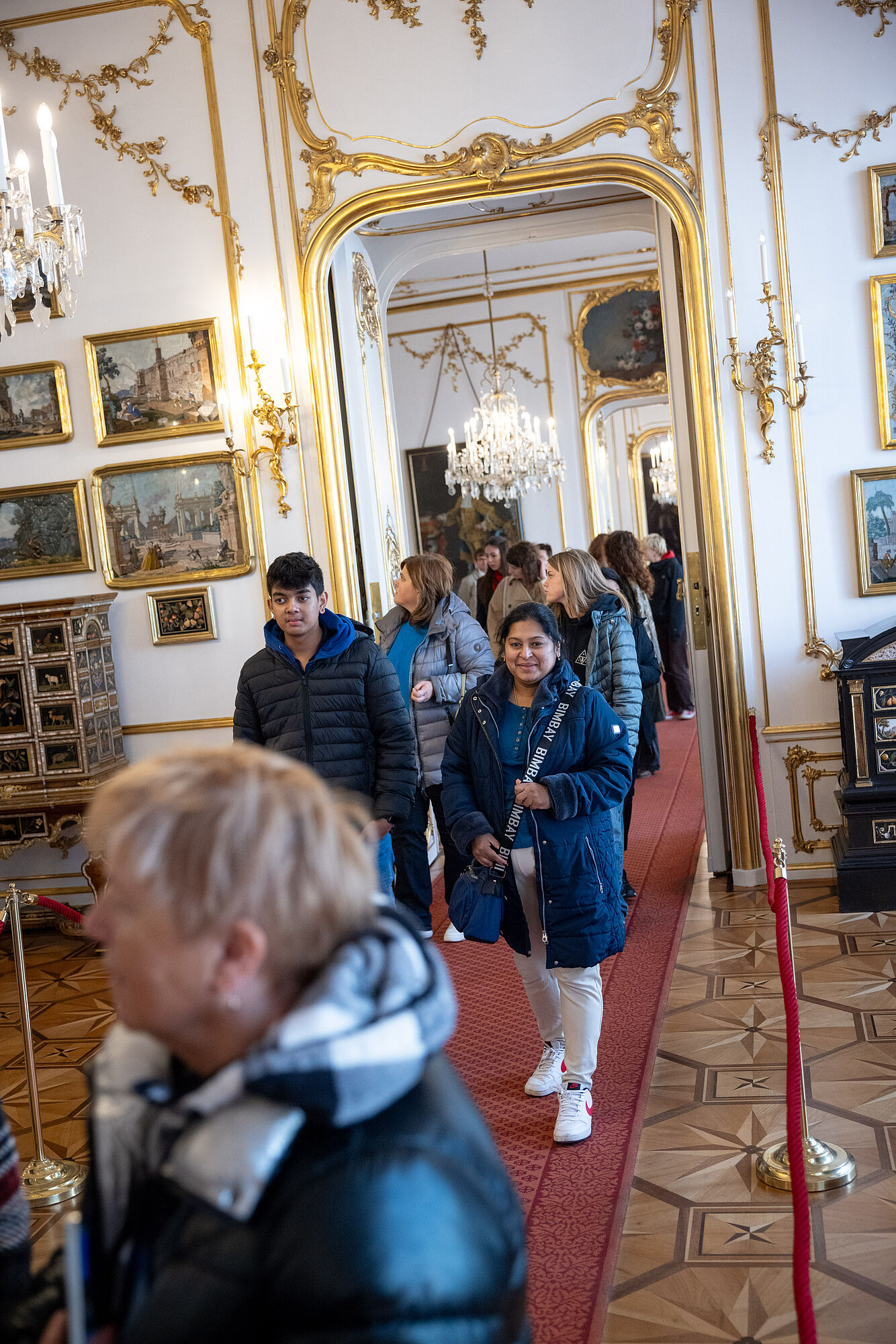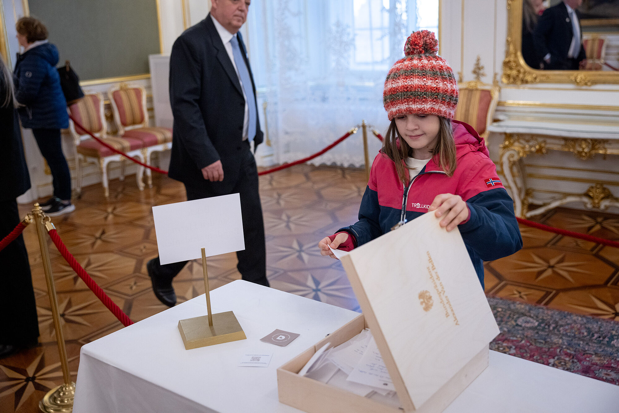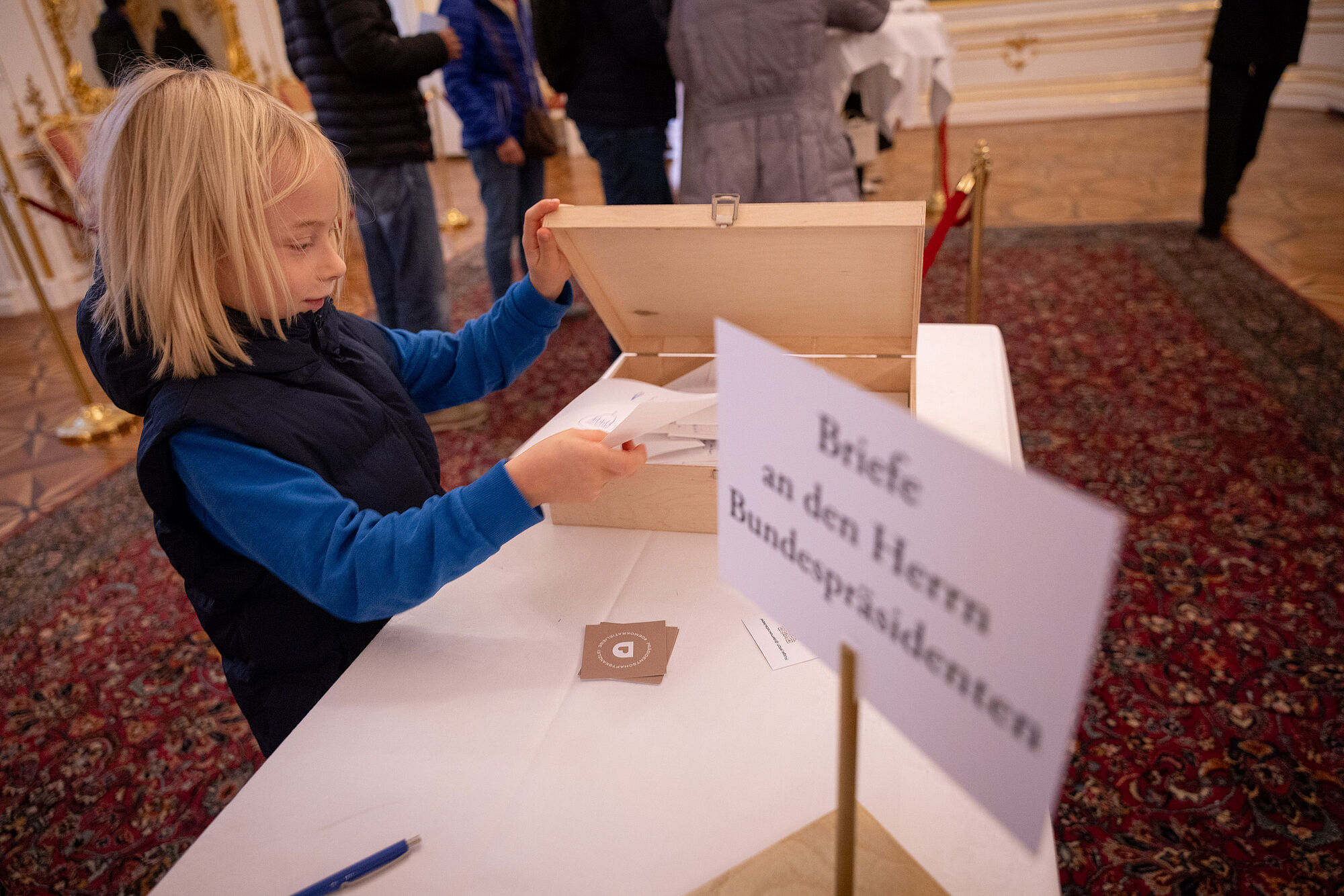 Bundespräsident Alexander Van der Bellen und Doris Schmidauer treffen Besucherinnen und Besucher in der Hofburg.