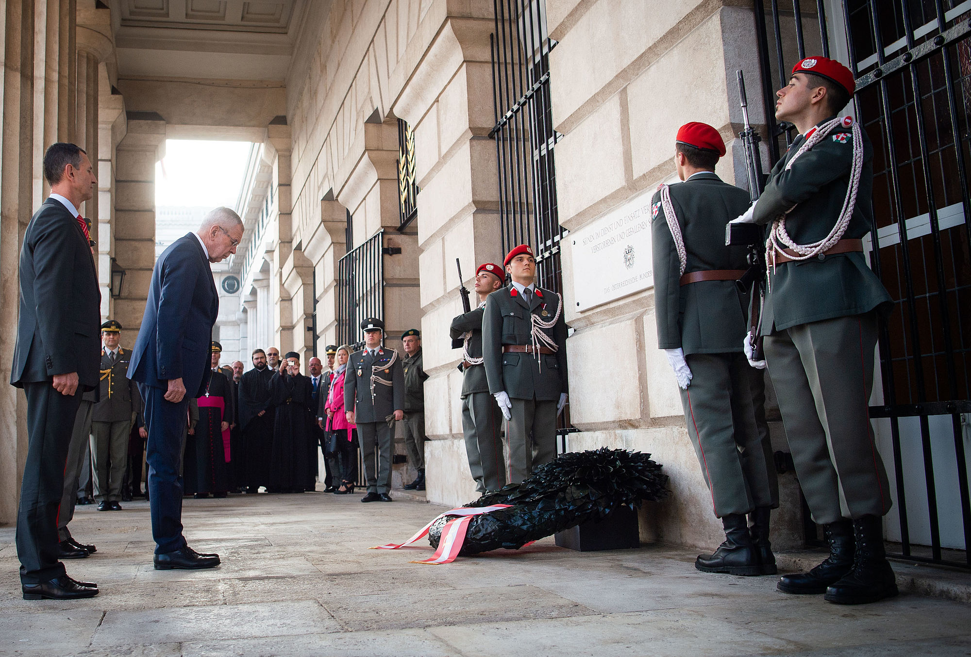Kranzniederlegung am Wiener Heldenplatz. Im Gedenken an die Gefallenen des 1. und 2. Weltkrieges und die Opfer des Nationalsozialismus. #Nationalfeiertag pic.twitter.com/19WdSaPNsE