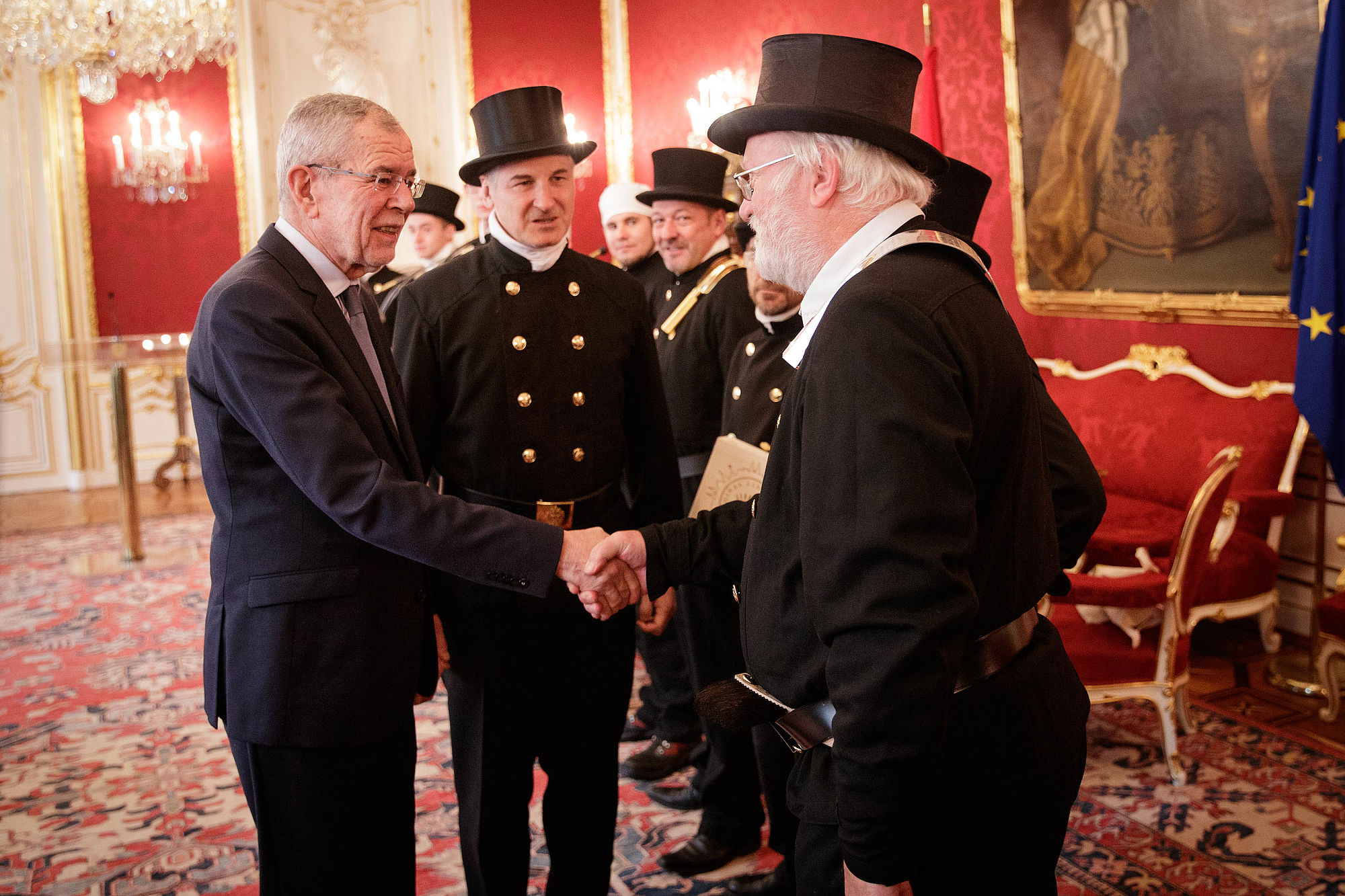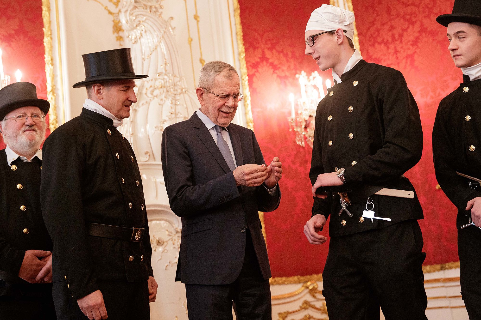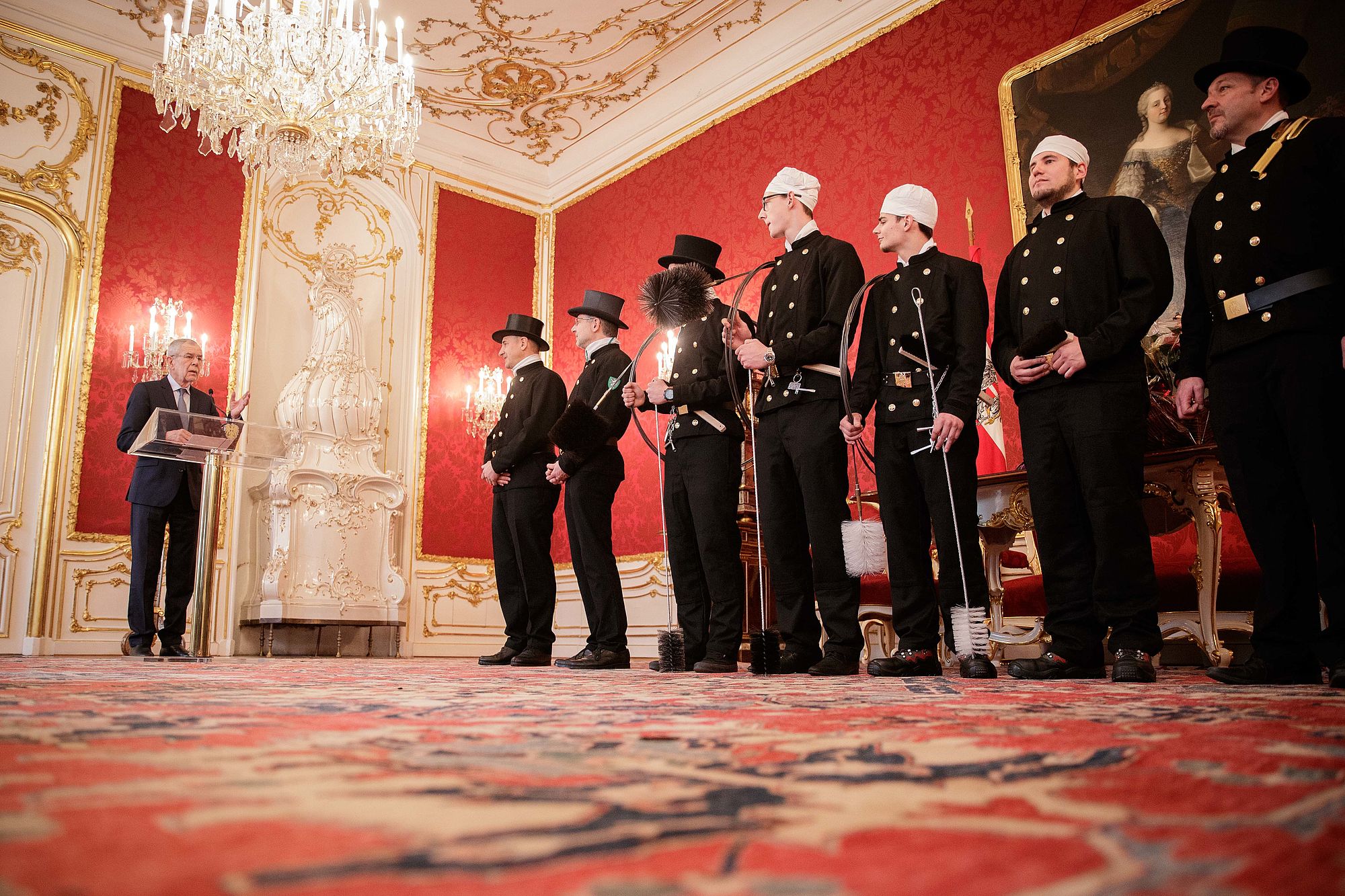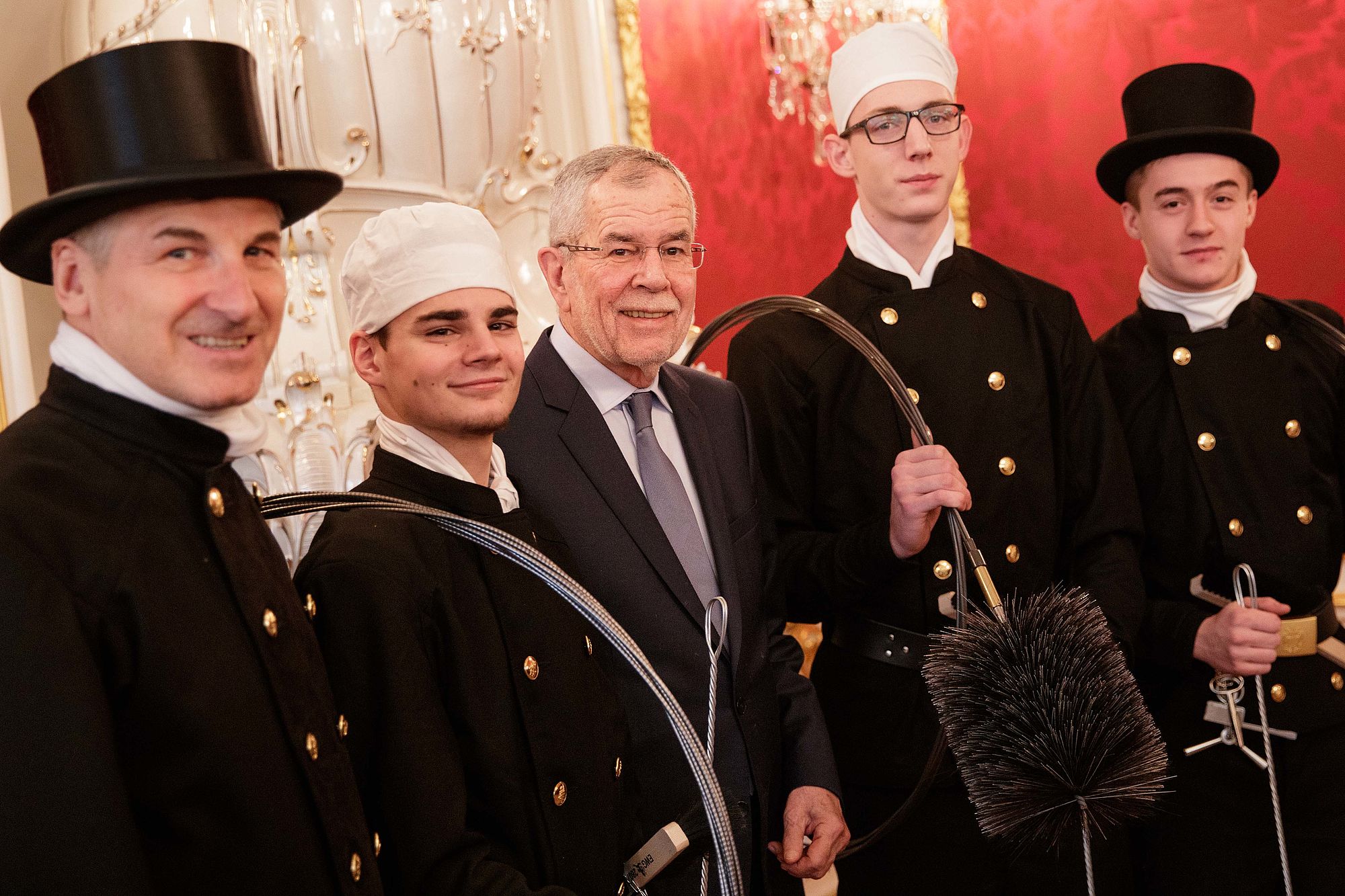 Rauchfangkehrer überbrachten Bundespräsident Alexander Van der Bellen Neujahrsglückwünsche.