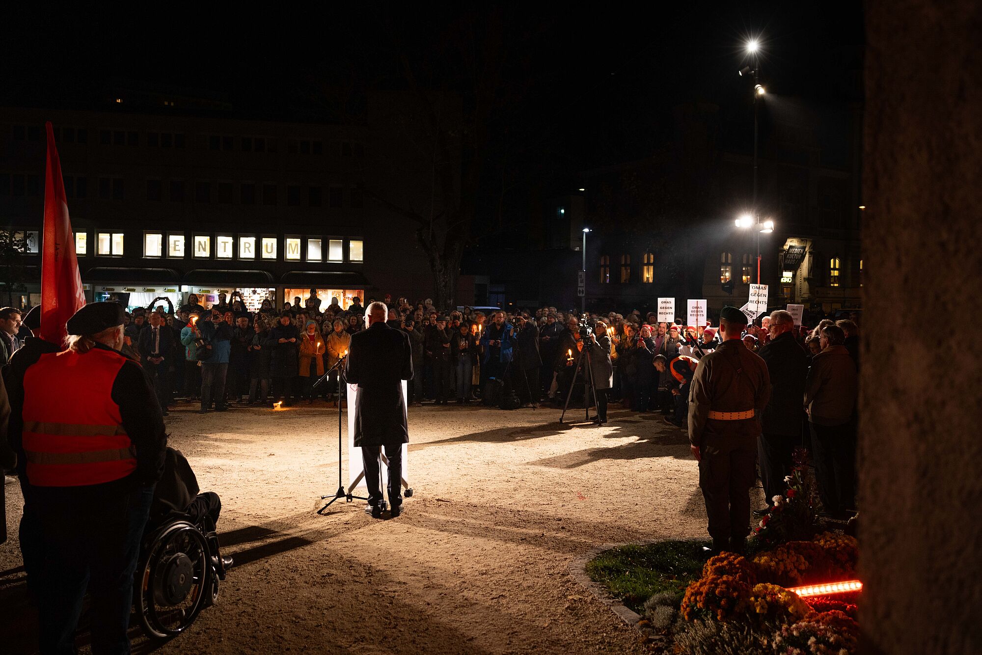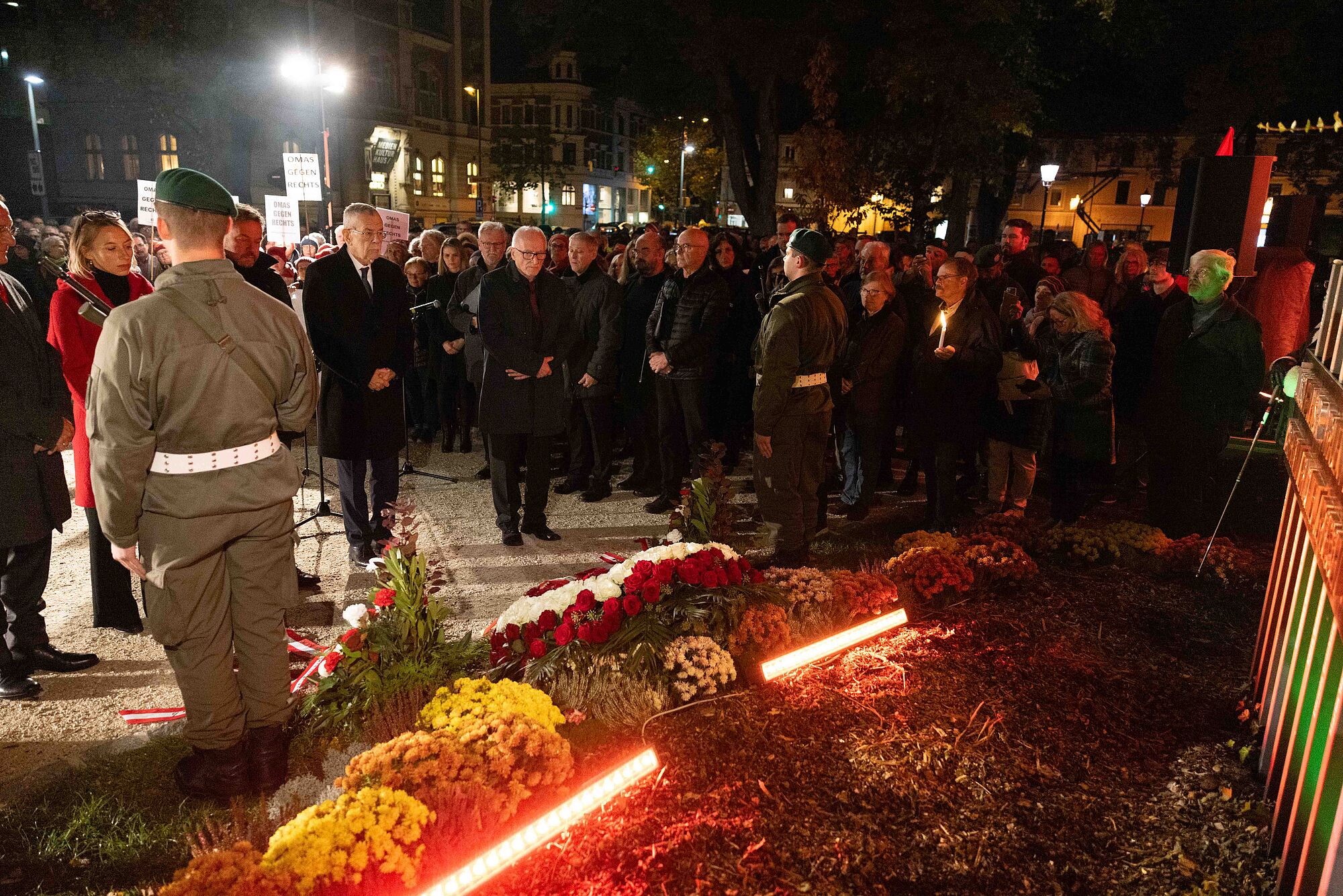 Bei Gedenkfeierlichkeiten wie dieser wird oft das „Niemals wieder“ beschworen. Die letzten Tage haben uns gezeigt, dass diese wichtige Losung heute aktueller denn je ist. Wir alle sind gefordert, sie mit Inhalt zu erfüllen. Wir dürfen nicht wegsehen, wenn Jüdinnen und Juden wieder gejagt und bestialisch ermordet werden