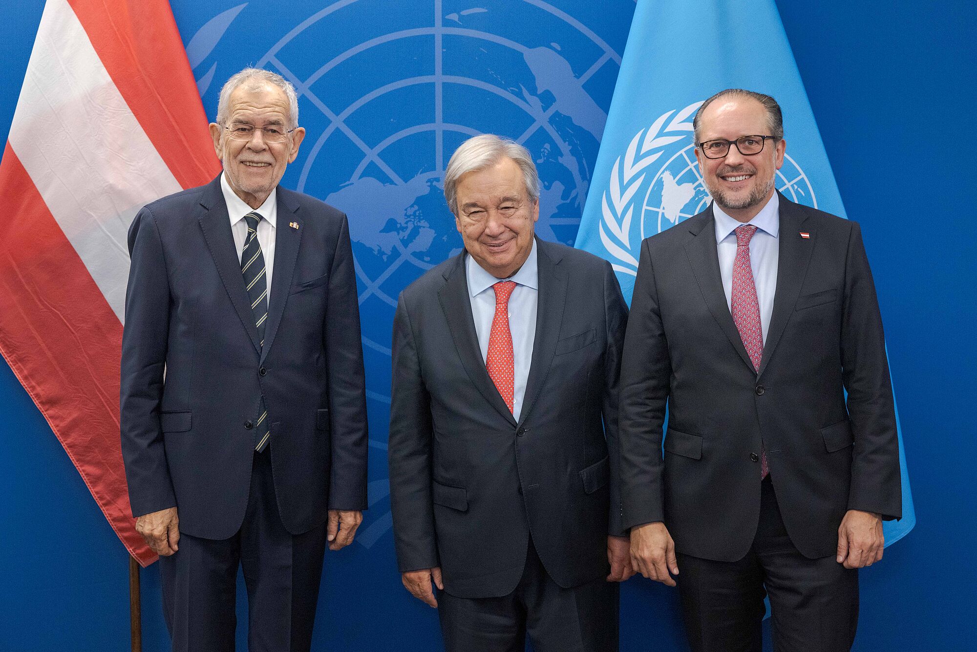 Bundespräsident Alexander Van der Bellen und Außenminister Alexander Schallenberg treten für eine Reform des UNO-Sicherheitsrats ein. Anlässlich eines Treffens mit dem Generalsekretär der Vereinten Nationen, António Guterres, im Rahmen der 78. Generalversammlung am Dienstag in New York waren sich die beiden einig: Die aktuelle Struktur sei ein Ergebnis des Zweiten Weltkriegs und nicht mehr zeitgemäß. Auch Guterres wirbt schon länger für eine Neugestaltung des Gremiums.