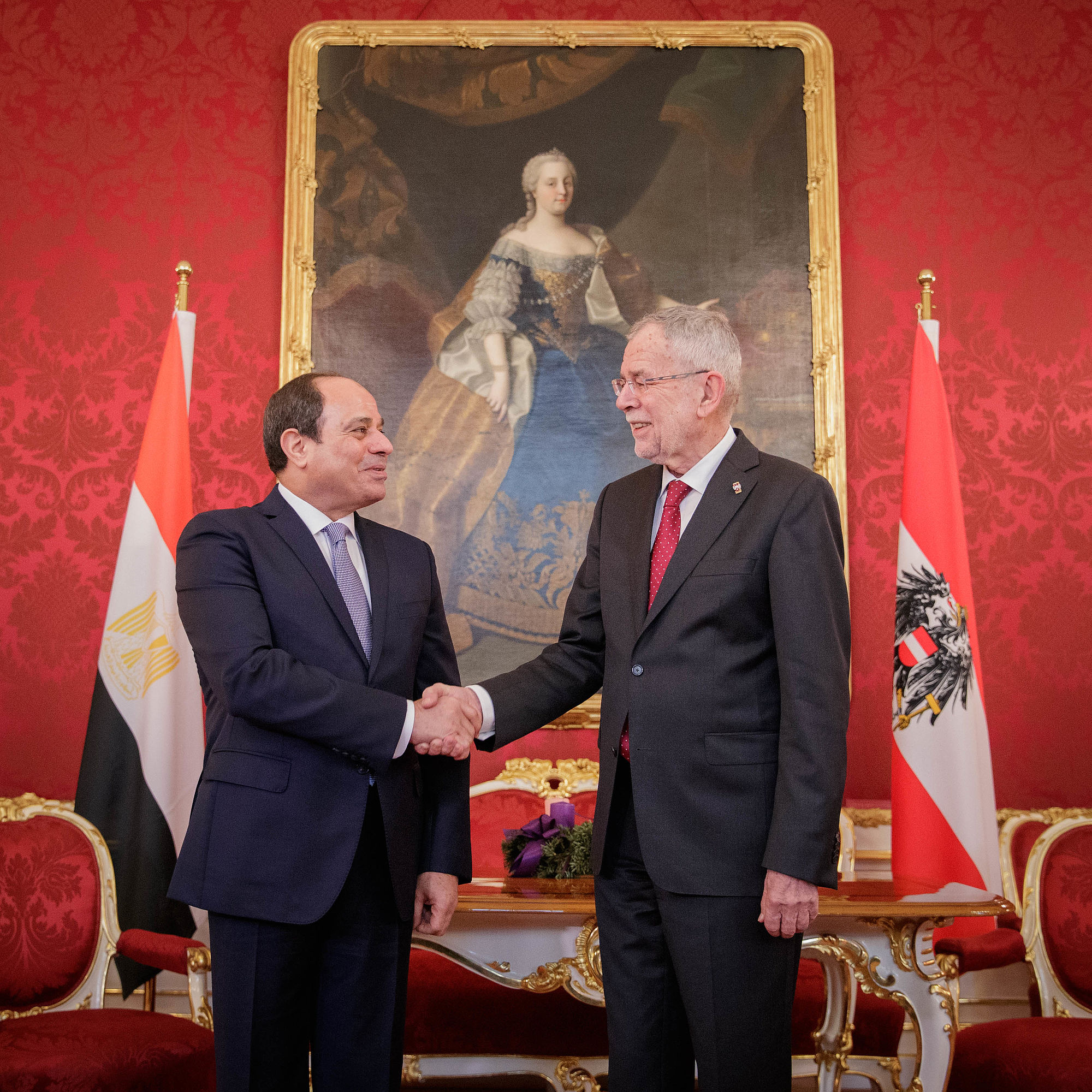 Bundespräsident Alexander Van der Bellen trifft Amtskollege Abdel Fattah Al-Sisi für ein Arbeitsgespräch in der Hofburg.
