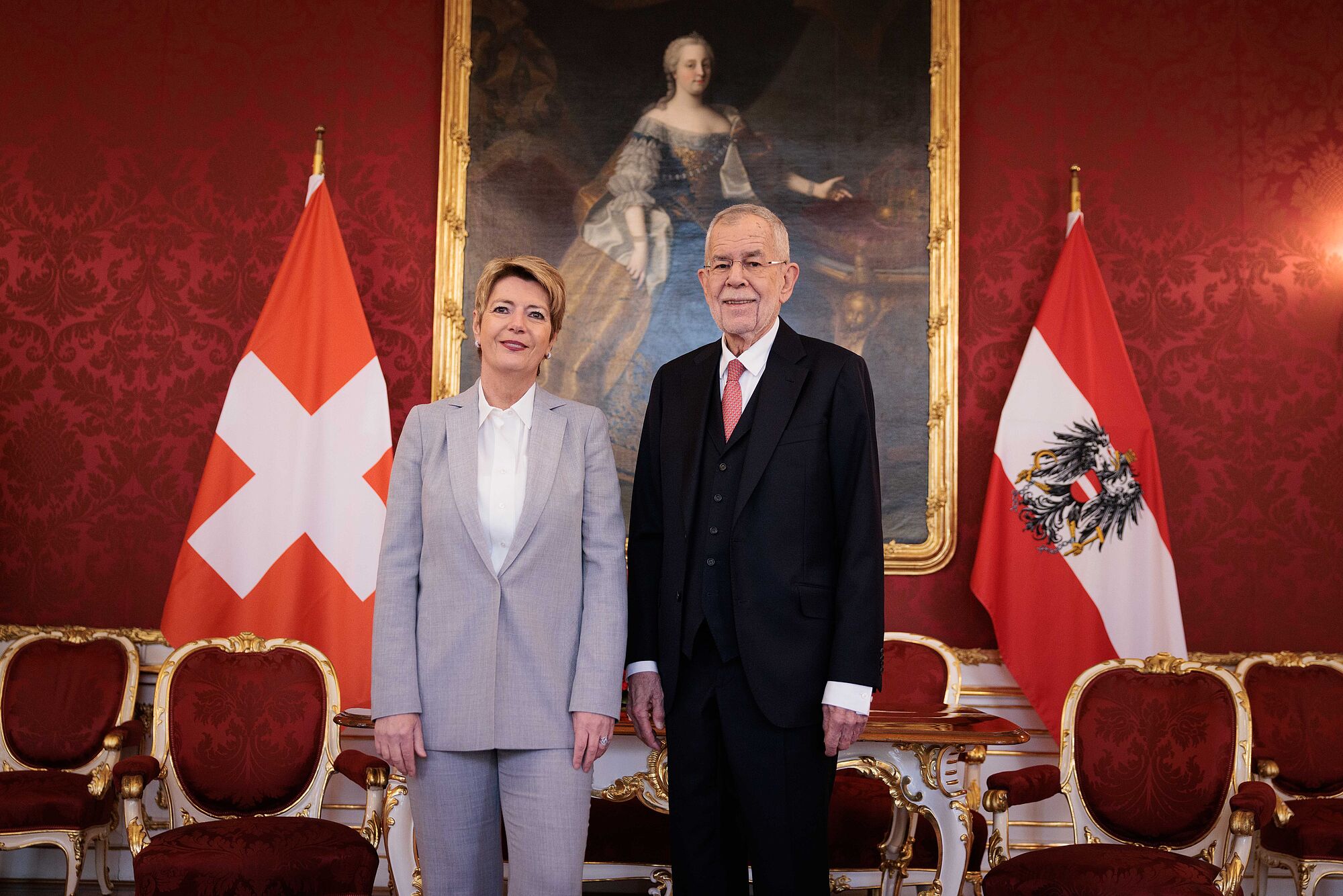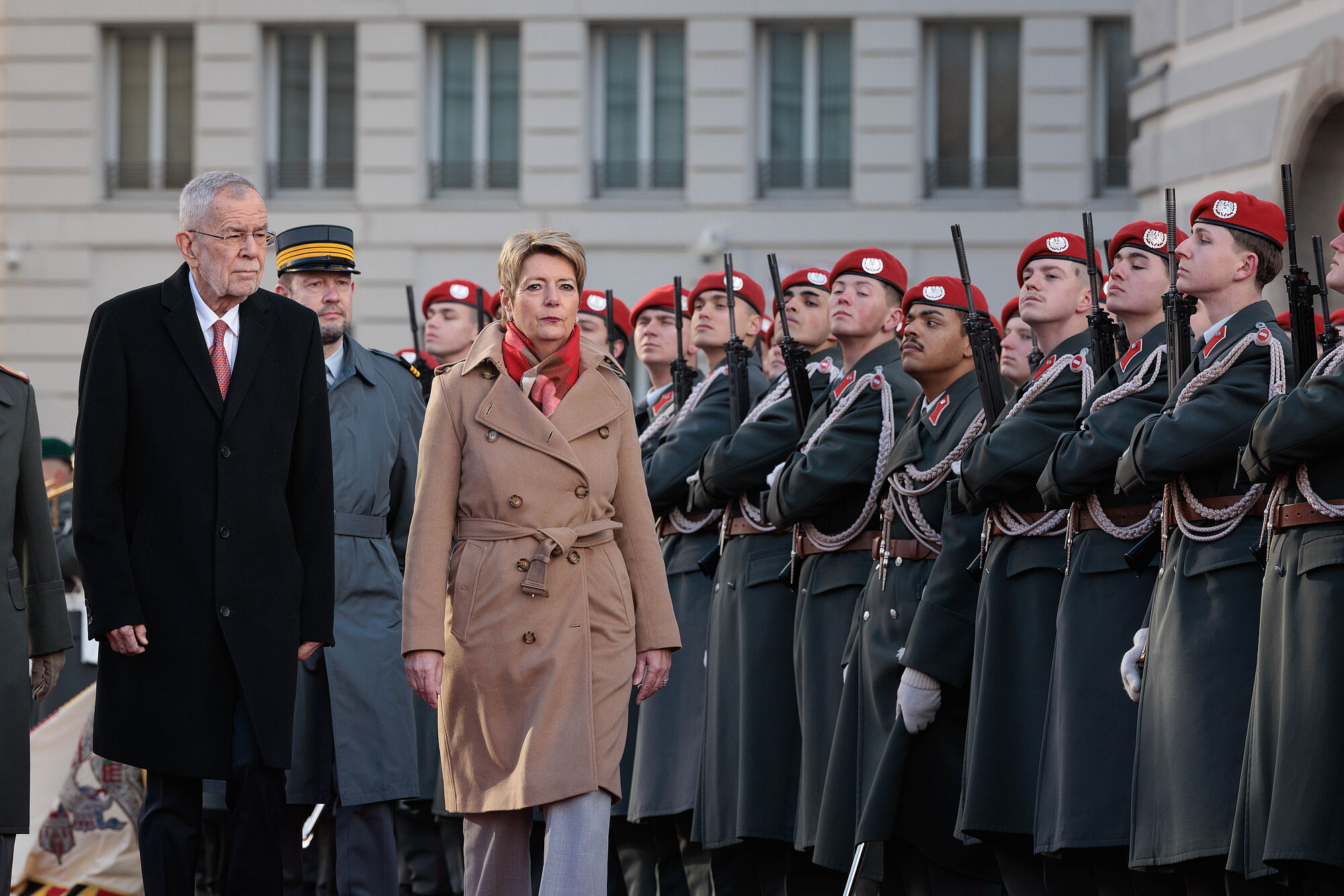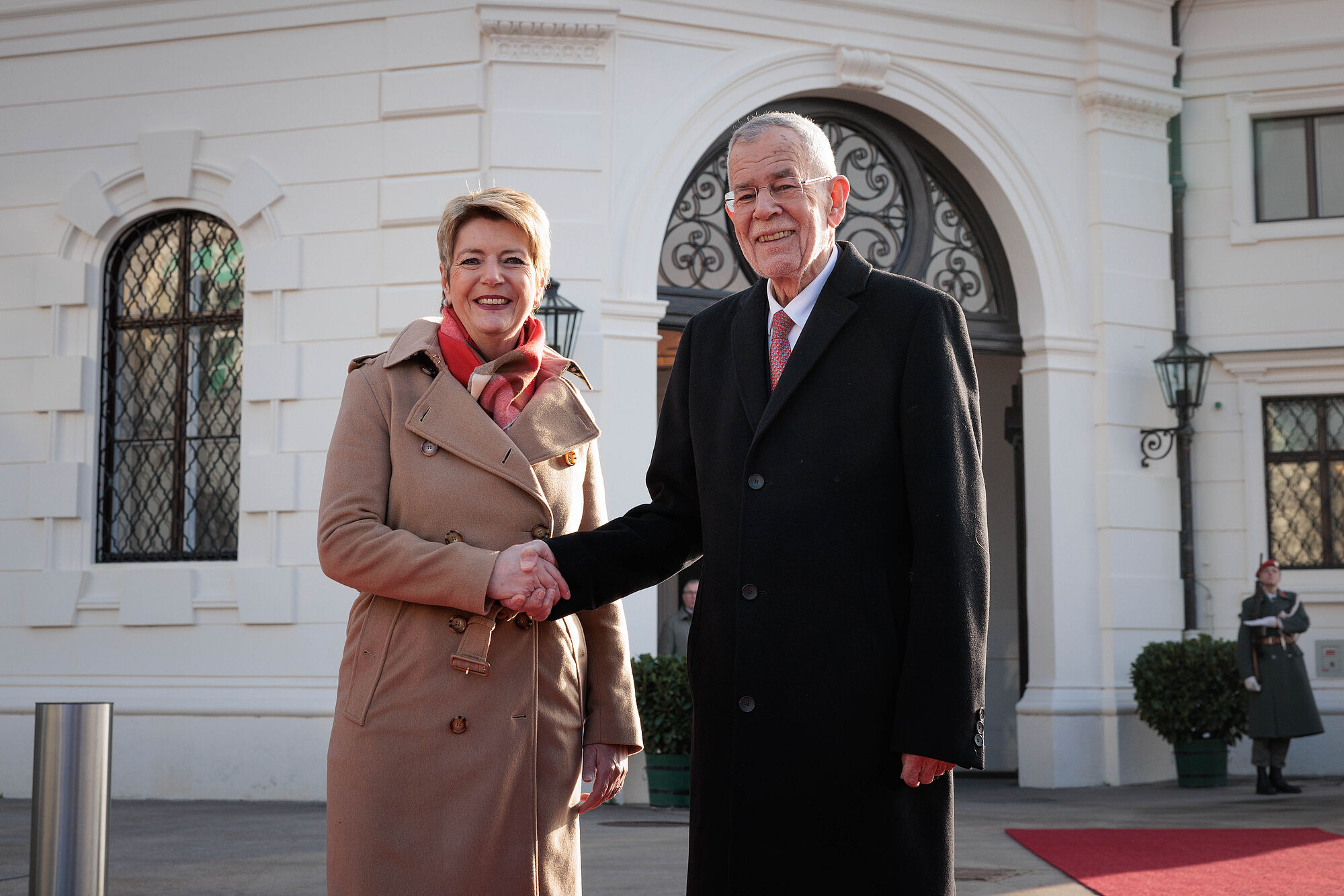 Bundespräsident Alexander Van der Bellen hatte seine neue Amtskollegin mit militärischen Ehren empfangen. Bundespräsidentin Karin Keller-Sutter hat mit Jahreswechsel den Vorsitz in der siebenköpfigen Schweizer Regierung übernommen. Traditionell führt die erste Reise einer neuen Schweizer Bundespräsidentin nach Österreich.