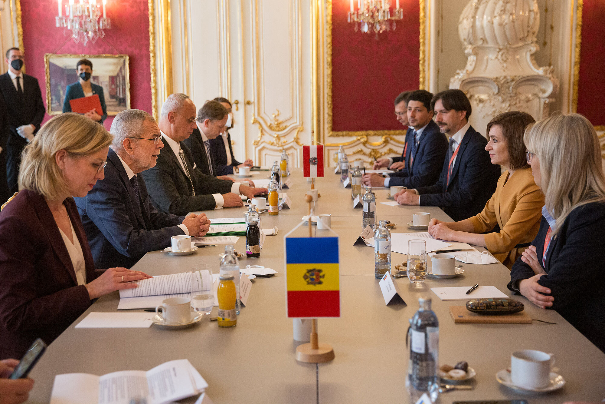"Alle wissen, dass die Unabhängigkeit und die Unbestechlichkeit der Justiz, Rechtsstaatlichkeit und Pressefreiheit auch ökonomischen Gründen wichtige Fundamente unserer Gesellschaft sind", sagte Alexander Van der Bellen und versicherte seiner Amtskollegin Unterstützung bei ihren Bemühungen. Der Bundespräsident erinnerte daran, dass Österreich und die Republik Moldau 2022 das 30. Jubiläum der Aufnahme diplomatischer Beziehungen feiern würden. "Österreich befindet sich unter den 10 größten Auslandsinvestoren in Moldau und das Potenzial ist sicher noch nicht ausgeschöpft", sagte er.