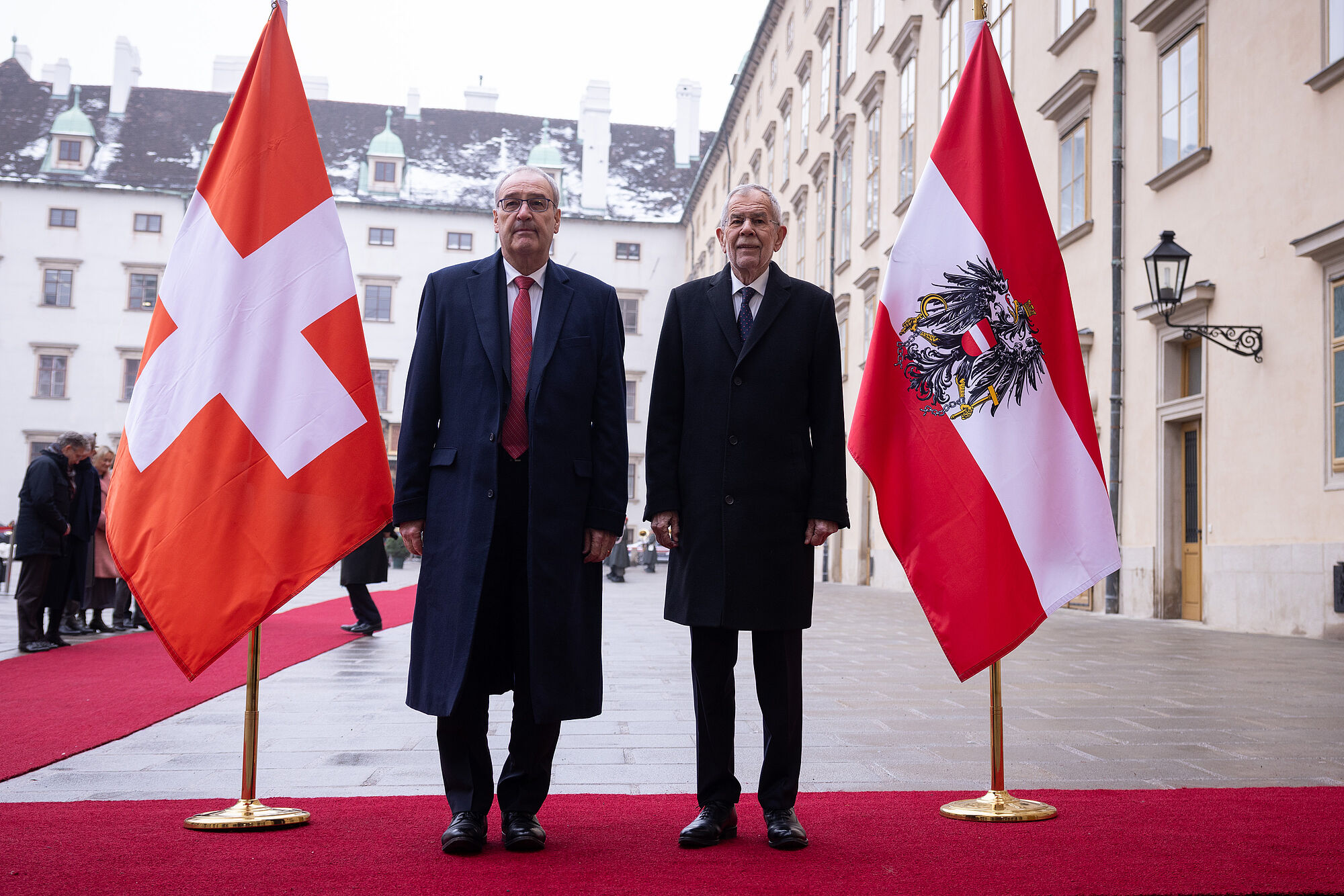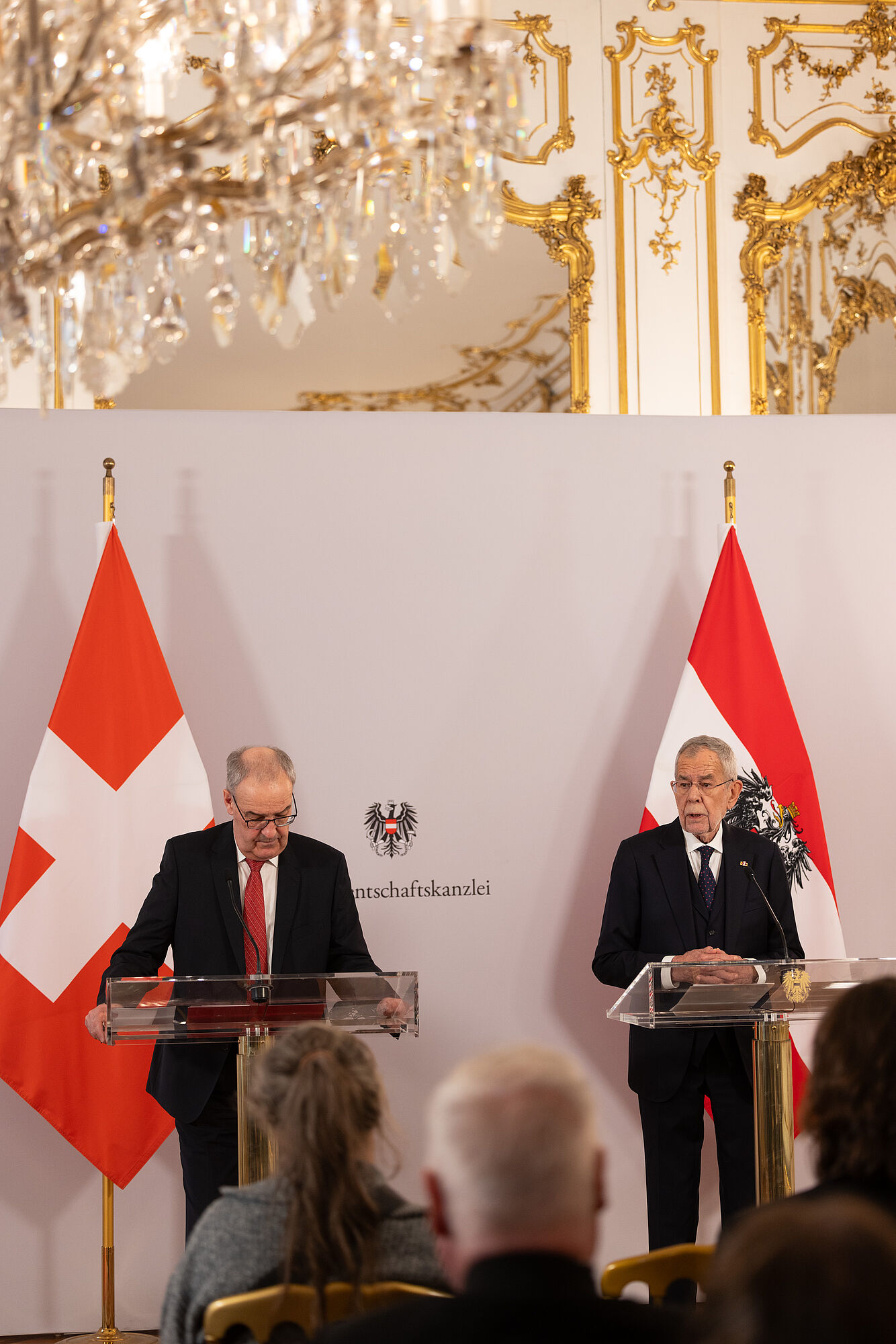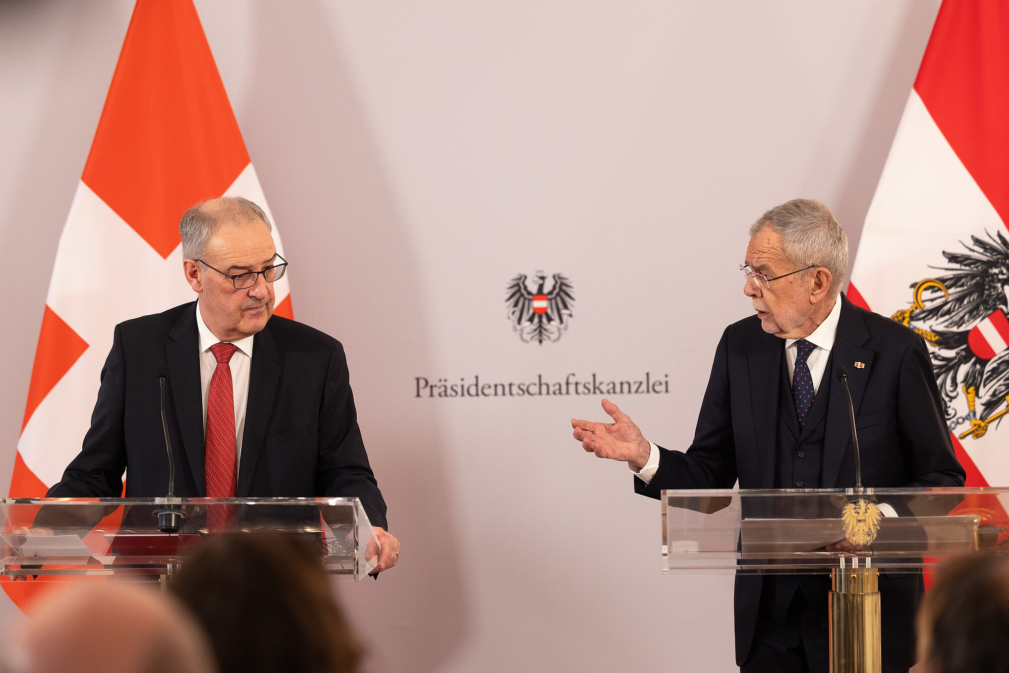 “Was die Schweiz und Österreich eint, ist mehr als Nachbarschaft. Es ist eine über Jahrhunderte gewachsene Partnerschaft, die sich stetig weiterentwickelt und auf die Herausforderungen unserer Zeit reagiert", sagte Alexander Van der Bellen bei einem gemeinsamen Pressegespräch in der Präsidentschaftskanzlei.