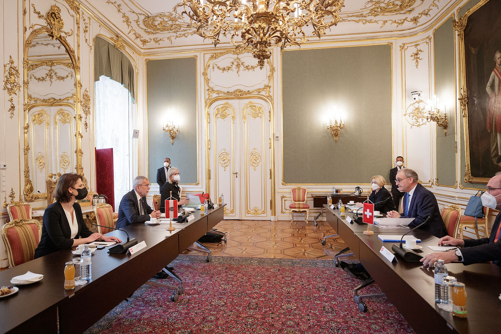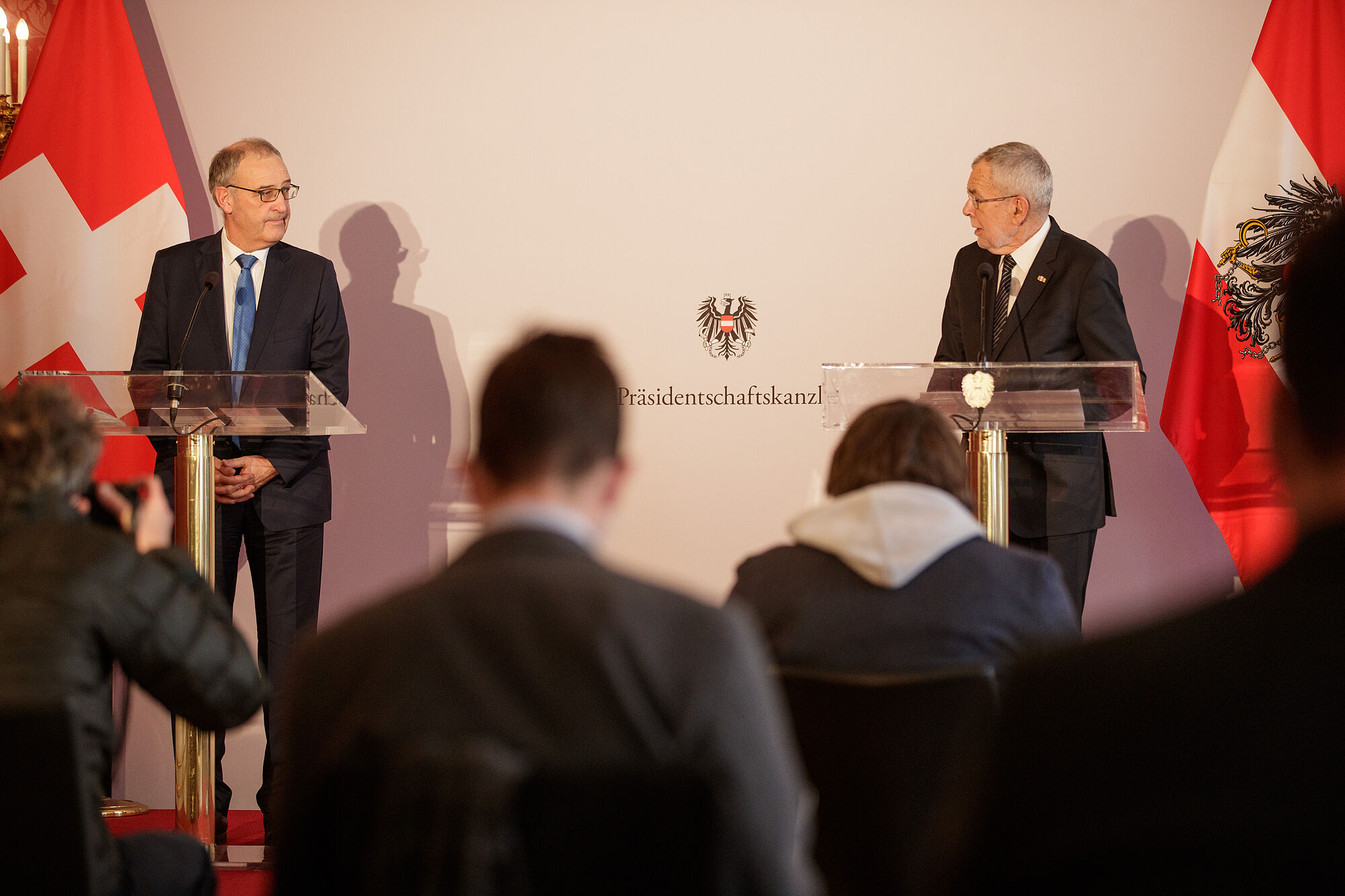 Die bilateralen Beziehungen wurde von beiden Staatsoberhäuptern als sehr positiv bezeichnet. Zwischen der Schweiz und Österreich konnte der Personen- und Warenverkehr "zu jeder Zeit aufrechterhalten werden", erklärte Alexander Van der Bellen. Die Handelsbeziehungen hätten während der Pandemie nicht gelitten. Im Gegenteil: "Erstaunlicherweise haben wir ein leichtes Plus festgestellt." 65.000 Österreicher, die in der Schweiz leben, bildeten die zweitgrößte Gruppe der Auslandsösterreicher. 9.000 Grenzgänger würden täglich in die Schweiz zur Arbeit pendeln.