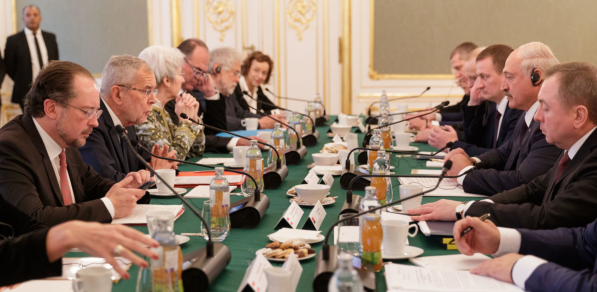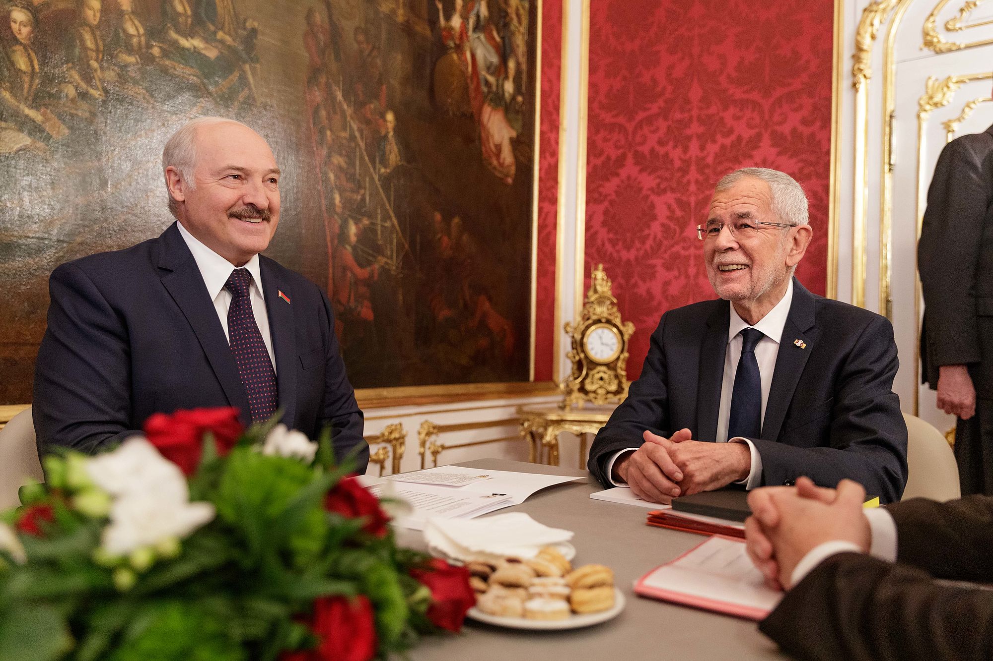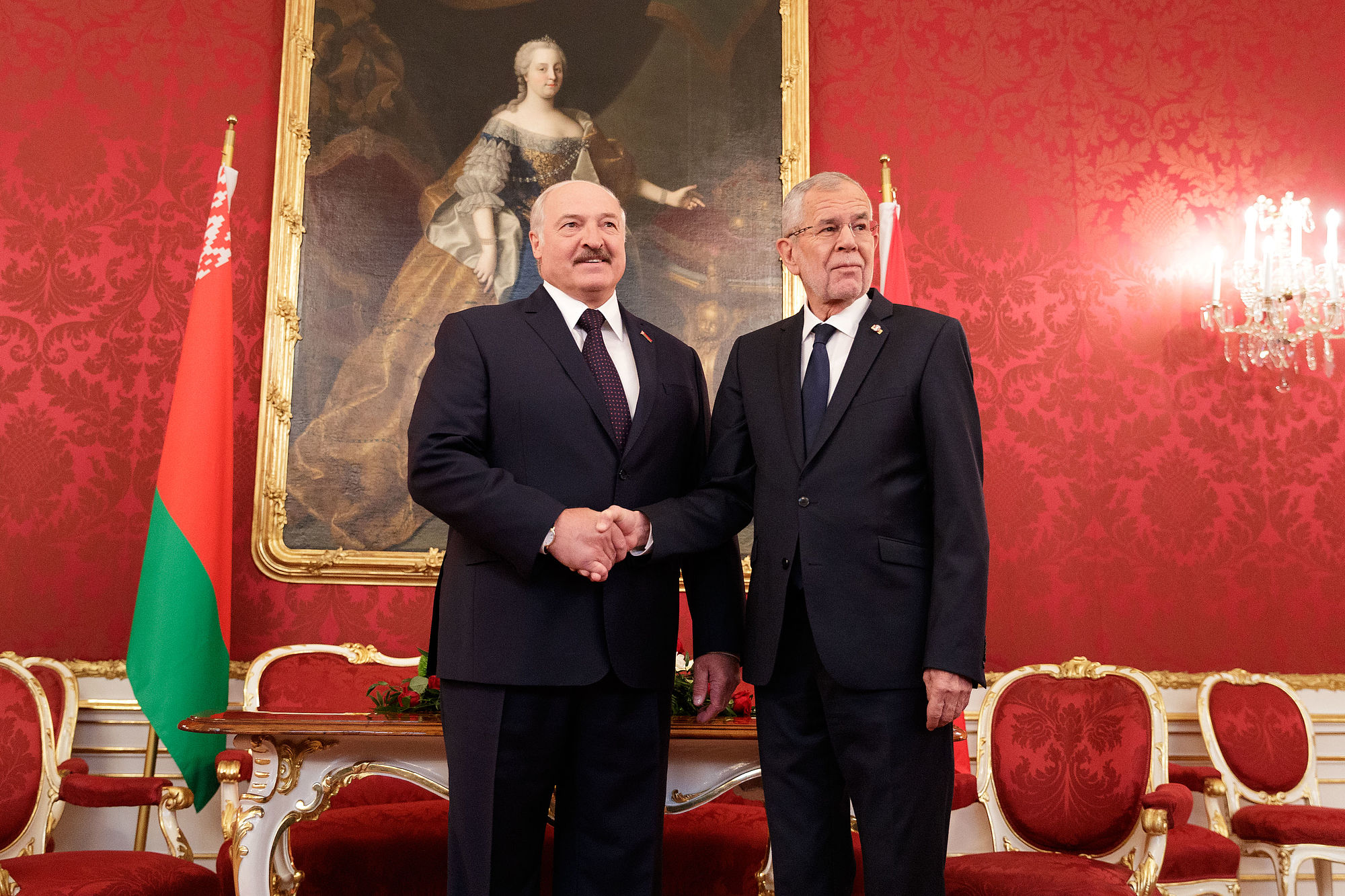 Der Präsident der Republik Belarus Aleksandr Lukashenko wurde von Bundespräsident Alexander Van der Bellen mit militärischen Ehren im Inneren Burghof empfangen. Es handelt sich um seinen ersten offiziellen Besuch in einem EU-Land seit dem Ende der EU-Sanktionen, die 2016 nach der Freilassung politischer Gefangener aufgehoben wurden.