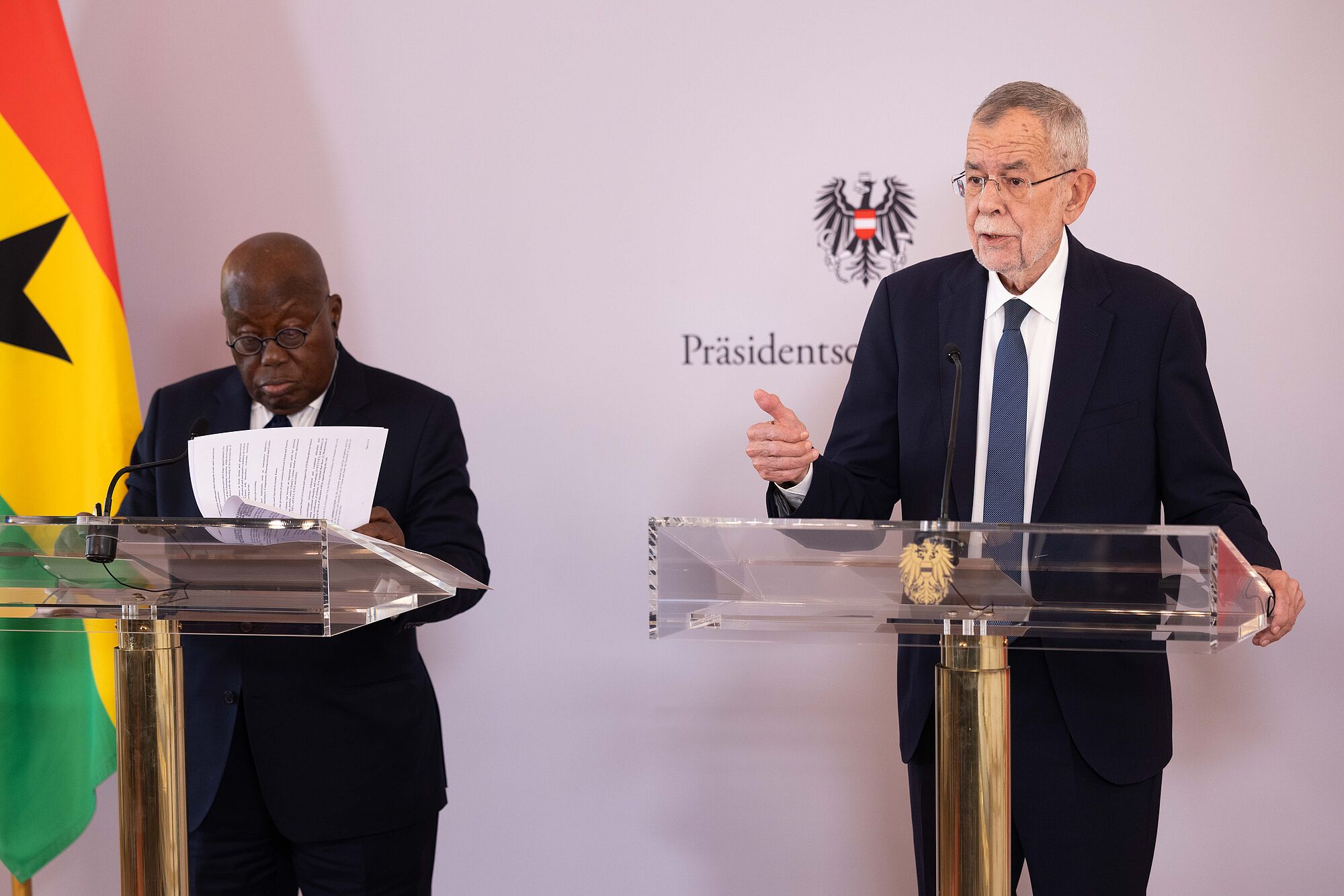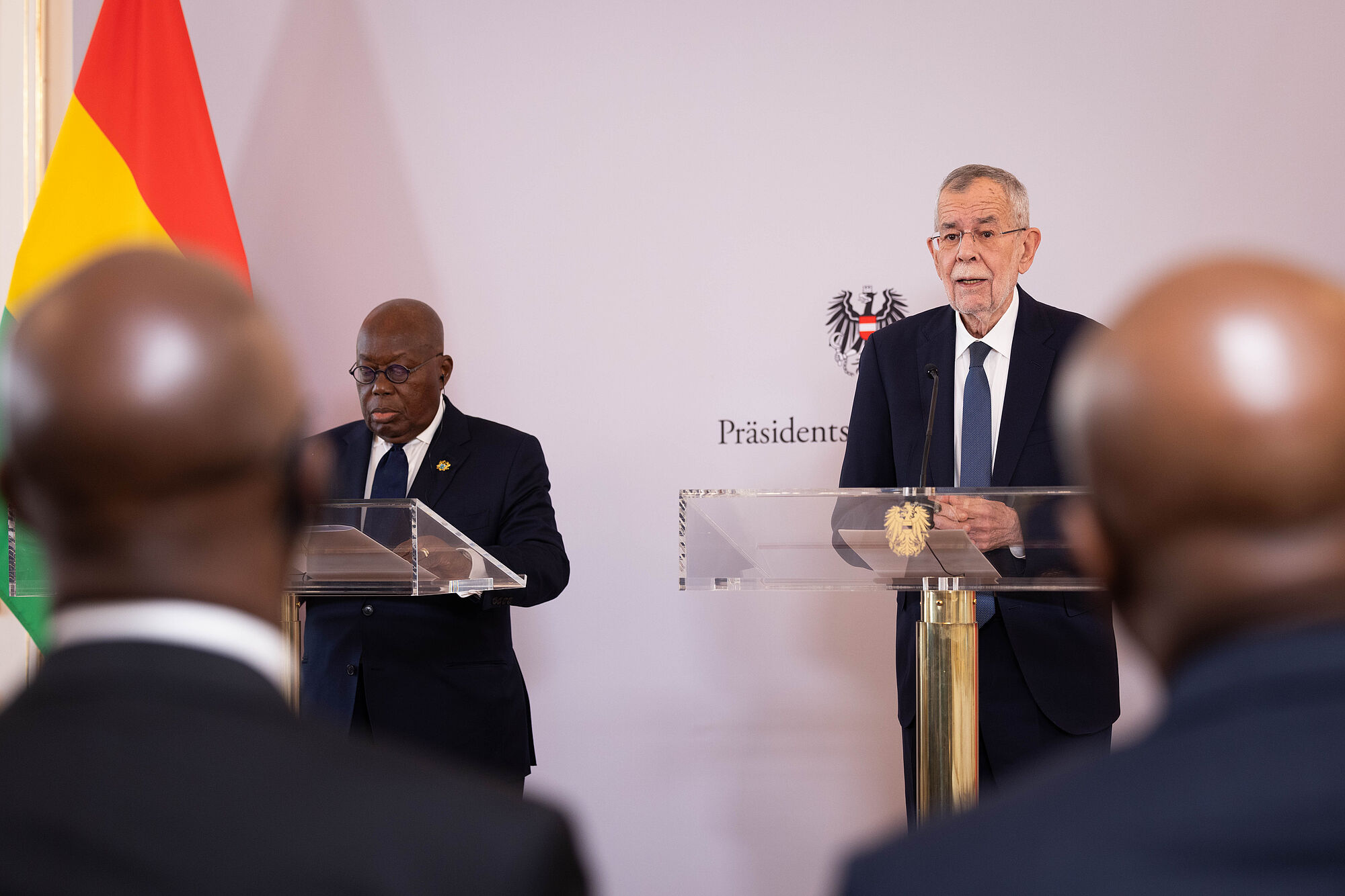 Österreich und das westafrikanische Ghana wollen ihre wirtschaftlichen und politischen Beziehungen verstärken. Dies betonten Bundespräsident Alexander Van der Bellen und der ghanaische Präsident Nana Akufo-Addo am Dienstag in Wien. In der Hauptstadt Accra soll noch heuer eine österreichische Botschaft eröffnet werden. Besorgt zeigten sich beide Staatsoberhaupter über den Einfluss Russlands in der Sahel-Region.