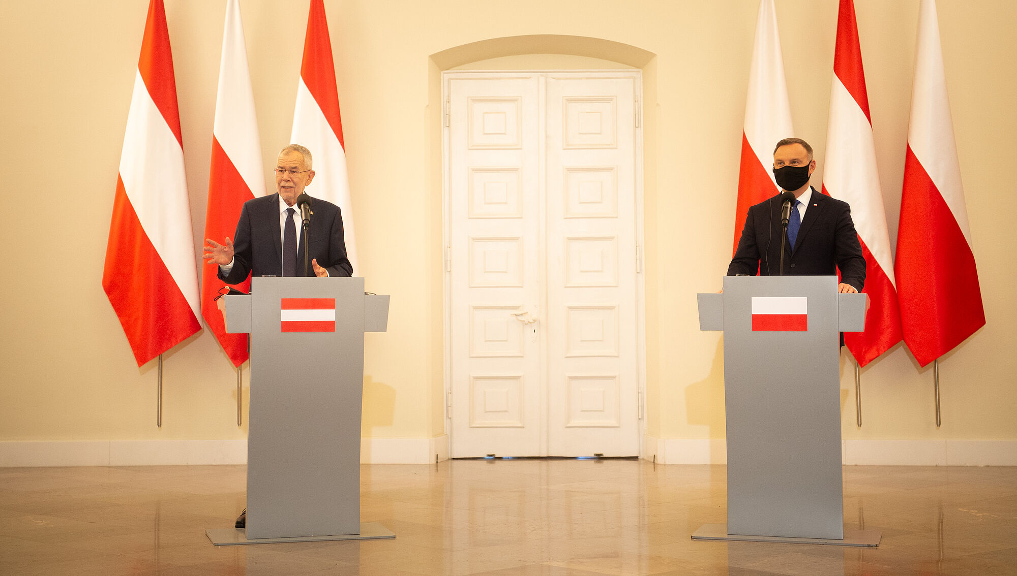 Van der Bellens Visite ist der erste bilaterale Besuch eines Bundespräsidenten in Polen seit 2009. Am Montag hatte Van der Bellen an der Eröffnung der neuen österreichischen Länderausstellung "Entfernung - Österreich und Auschwitz" im Staatlichen Museum Auschwitz-Birkenau teilgenommen.