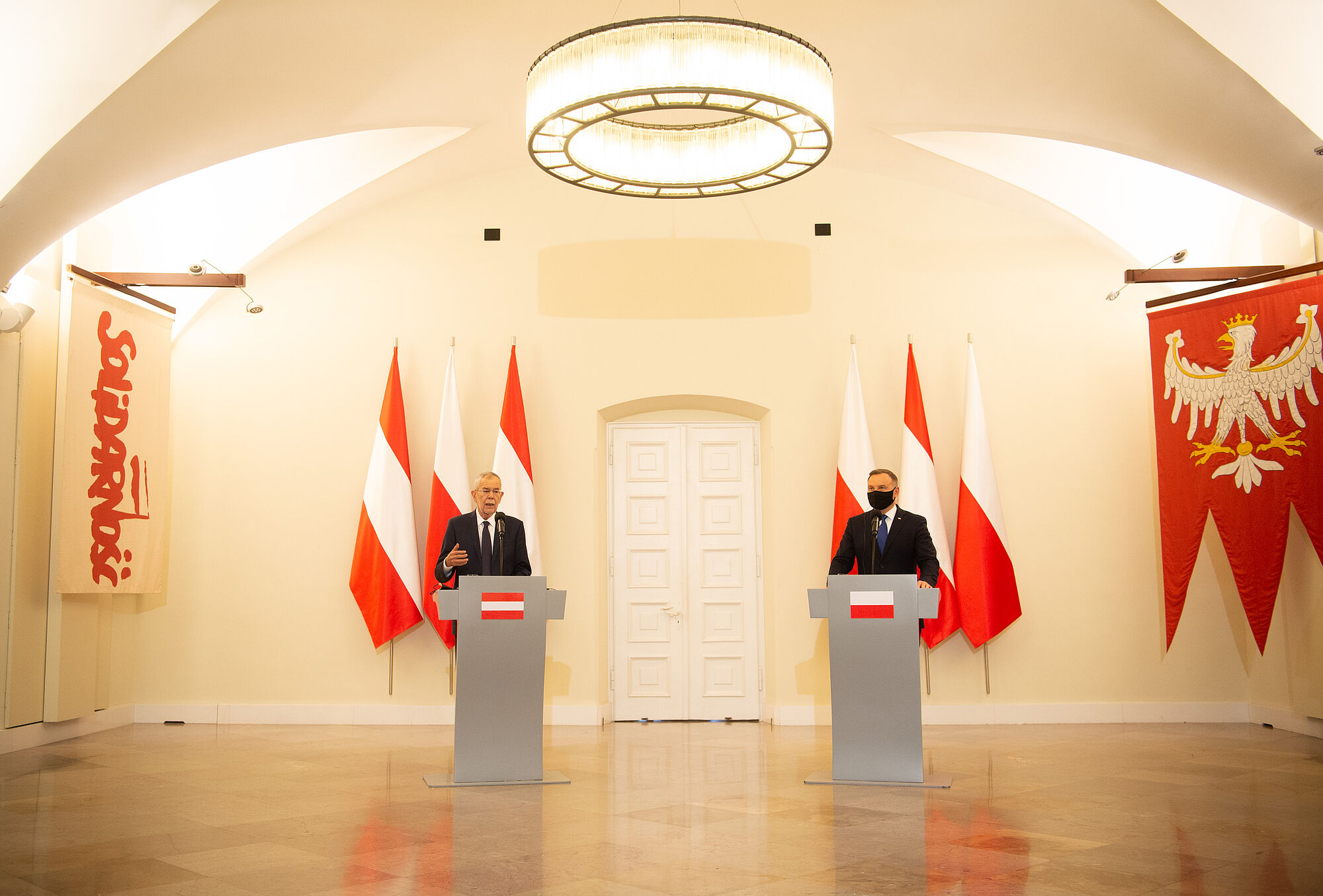 Bundespräsident Alexander Van der Bellen setzt am Dienstag seine Polen-Reise mit einem Offiziellen Besuch in Warschau fort. Der Bundespräsident wurde am späten Vormittag von seinem polnischen Amtskollegen Andrzej Duda mit militärischen Ehren begrüßt. Nach einem Vier-Augen-Gespräch wird es eine gemeinsame Pressekonferenz der beiden Staatsoberhäupter geben.