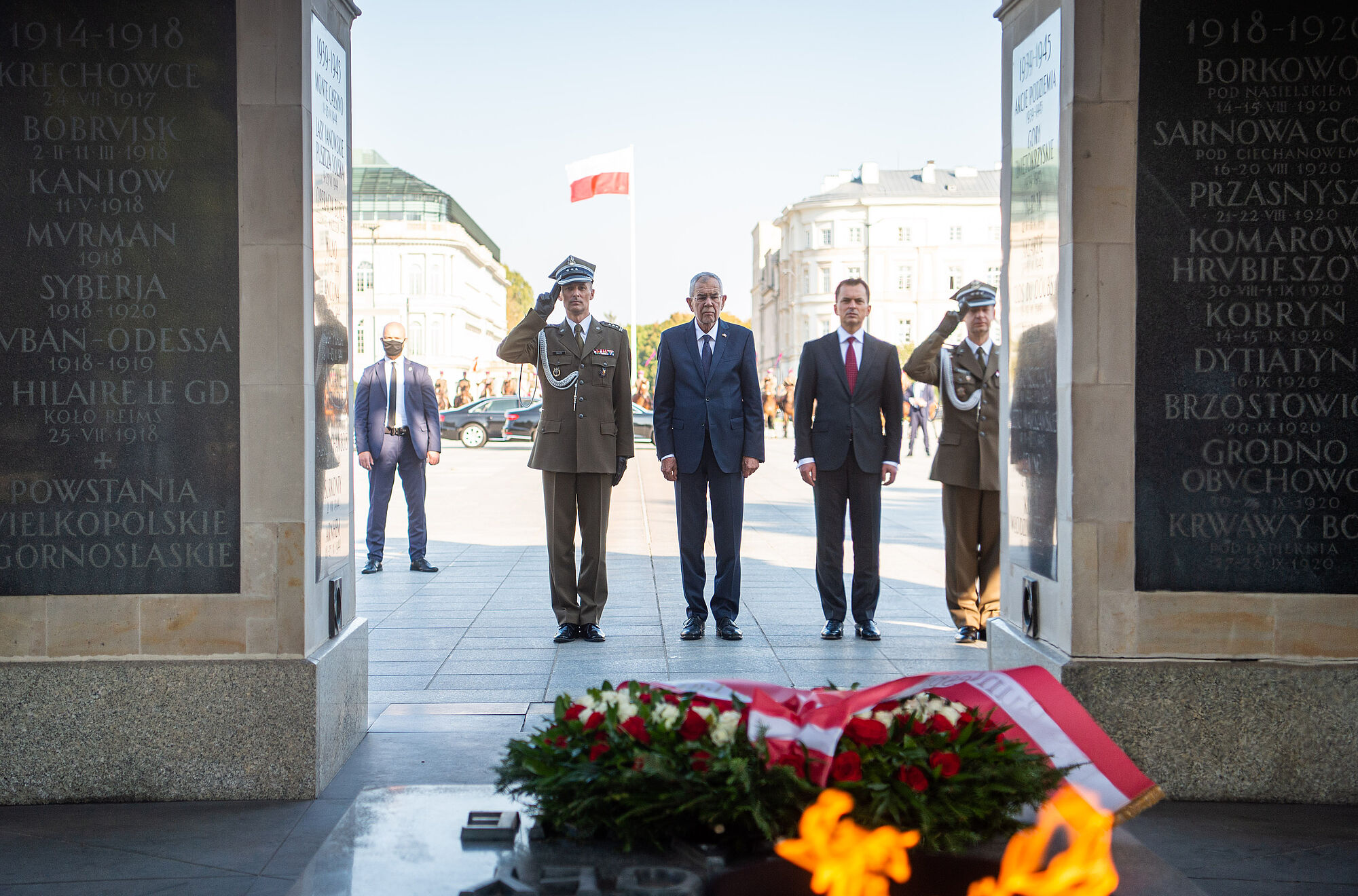 Für den Nachmittag ist eine Kranzniederlegung am Grab des unbekannten Soldaten in Warschau geplant. Auf dem Programm stehen zudem Treffen des Bundespräsidenten mit dem polnischen Ministerpräsidenten Mateusz Morawiecki sowie mit den Vorsitzenden der beiden Parlamentskammern Sejm und Senat, Elżbieta Witek und Tomasz Grodzki. Ebenfalls geplant ist ein Wirtschaftsforum mit polnischen und österreichischen Wirtschaftsvertretern. Alexander Van der Bellen wird bei seinem Besuch in Warschau von Wirtschaftsministerin Margarete Schramböck und WKÖ-Vizepräsidentin Martha Schultz begleitet. Zum Abschluss trifft der Bundespräsident gemeinsam mit seiner Frau Doris Schmidauer Vertreterinnen des Zentrums für Frauenrechte zu einem Austausch.