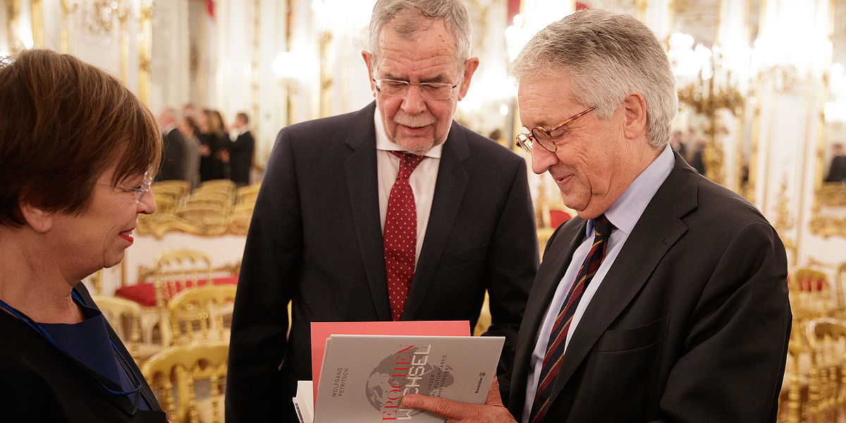 Auf Einladung von Bundespräsident Alexander Van der Bellen präsentiert Wolfgang Petritsch sein neues Buch »Epochenwechsel - Unser digital-autoritäres Jahrhundert« im Spiegelsaal der Präsidentschaftskanzlei.