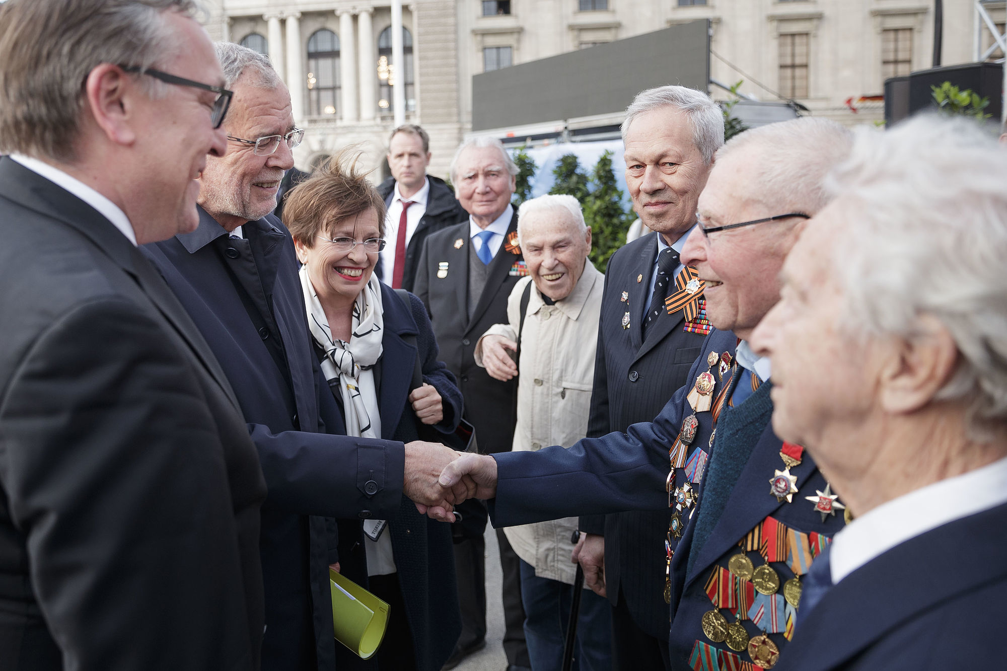 Und wir verneigen uns vor allen Opfern, die vom Nationalsozialismus verfolgt, gequält, ermordet wurden. Wir verneigen uns aber auch vor allen, die den Glauben und die Hoffnung an das Gute nicht verloren haben und ihm so zum Sieg verhalfen. Besondere Freude und Genugtuung erfüllt mich, dass ich heute auch einige Überlebende in unserer Mitte begrüßen darf, nämlich: Shaul Spielmann, Daniel Chanoch und Richard Wadani.