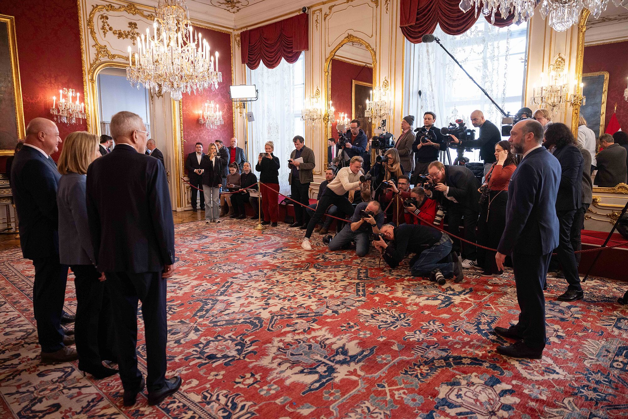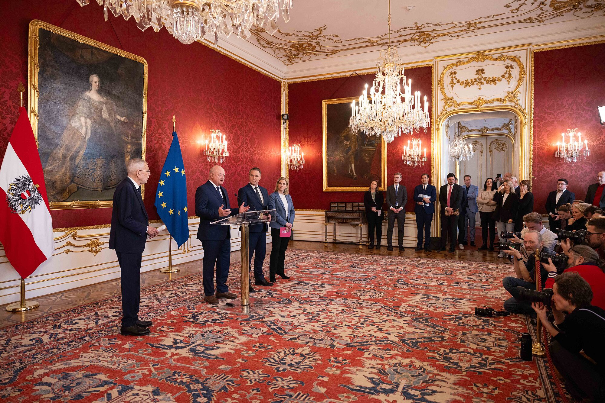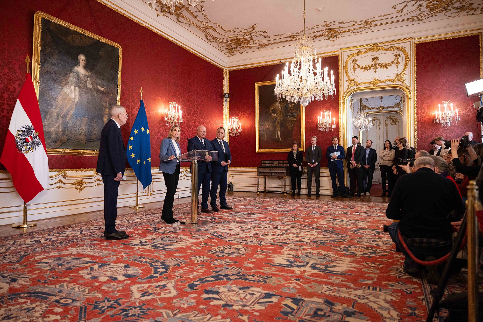 „Österreich gemeinsam zurück an die Spitze bringen“ – Statement von Bundespräsident Alexander Van der Bellen nach dem heutigen Gespräch mit den Parteiobleuten Christian Stocker (ÖVP), Andreas Babler (SPÖ) und Beate Meinl-Reisinger (Neos) pic.twitter.com/UXu1DFdAMj