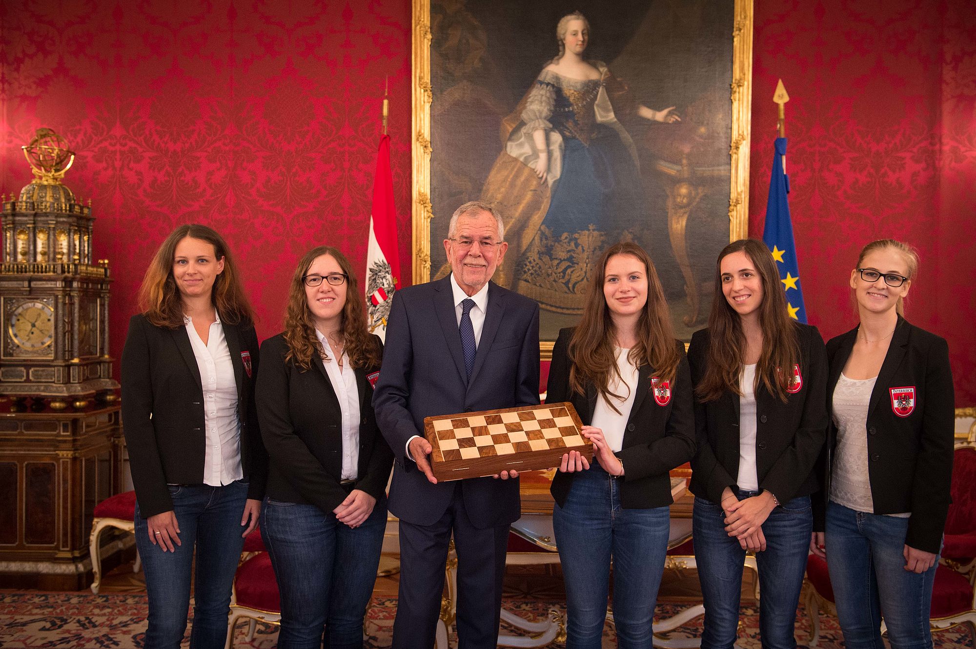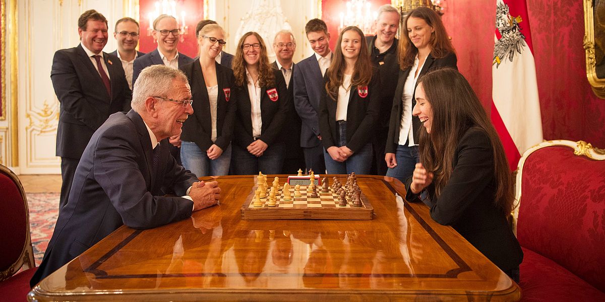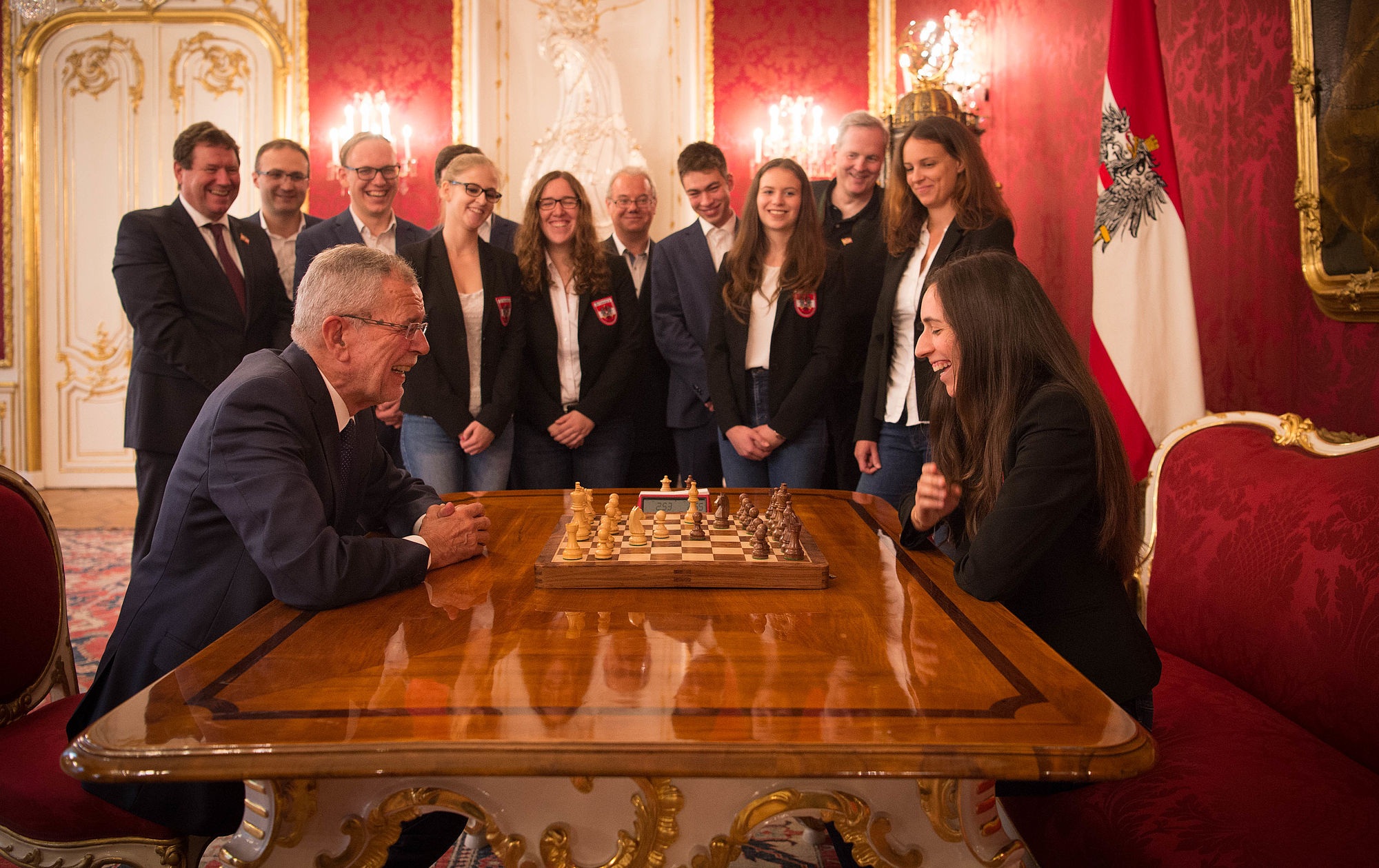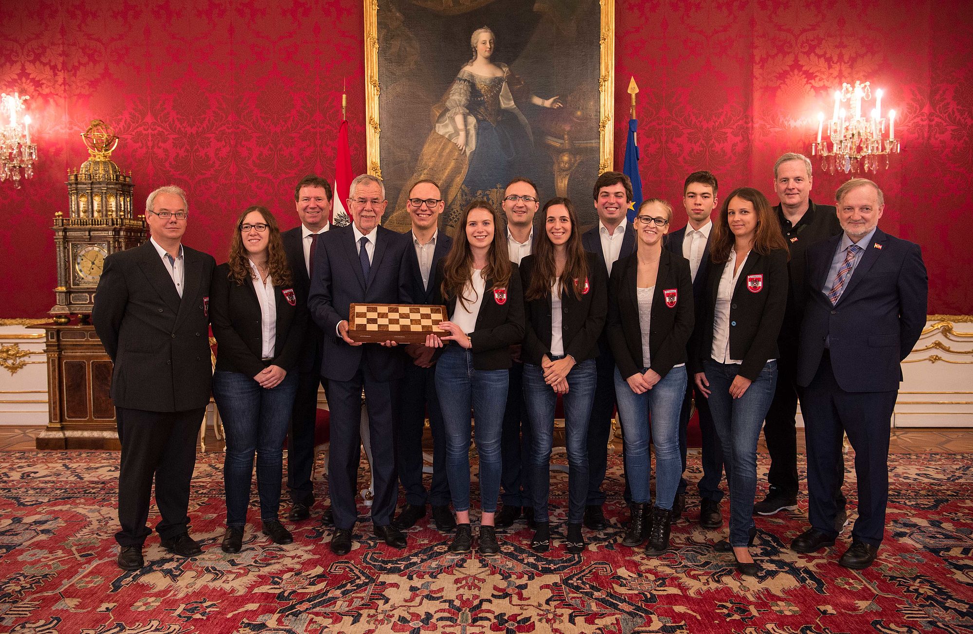 Bundespräsident Alexander Van der Bellen verabschiedet das österreichische Damen- und Herrennationalteam für die Schach-Olympia 2018 in Batumi.