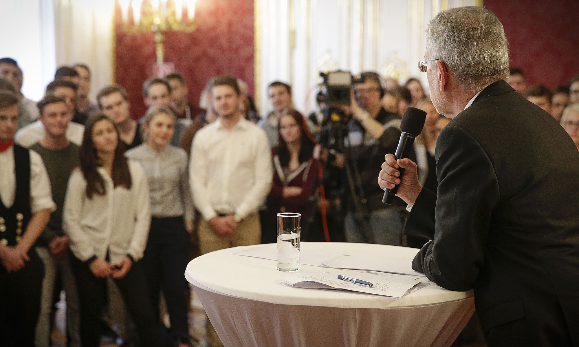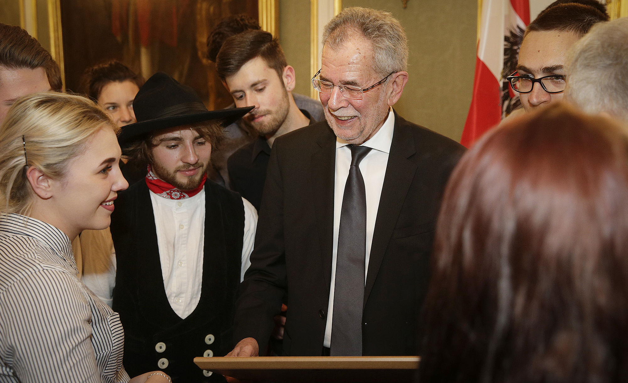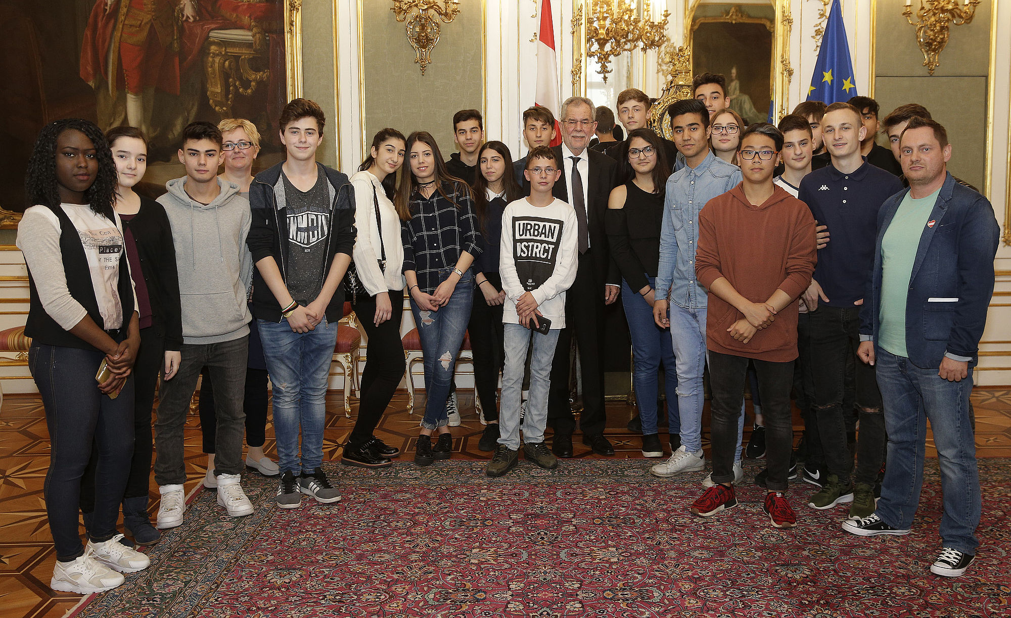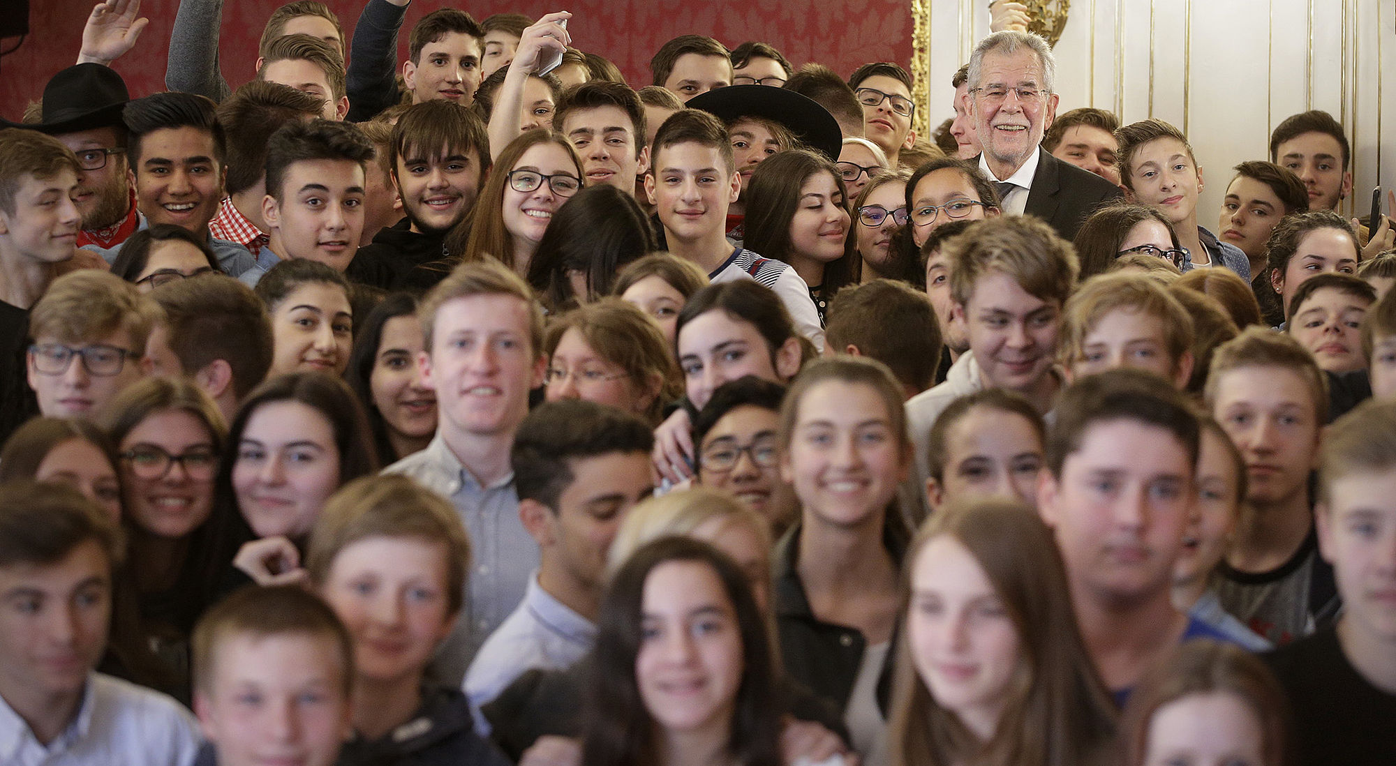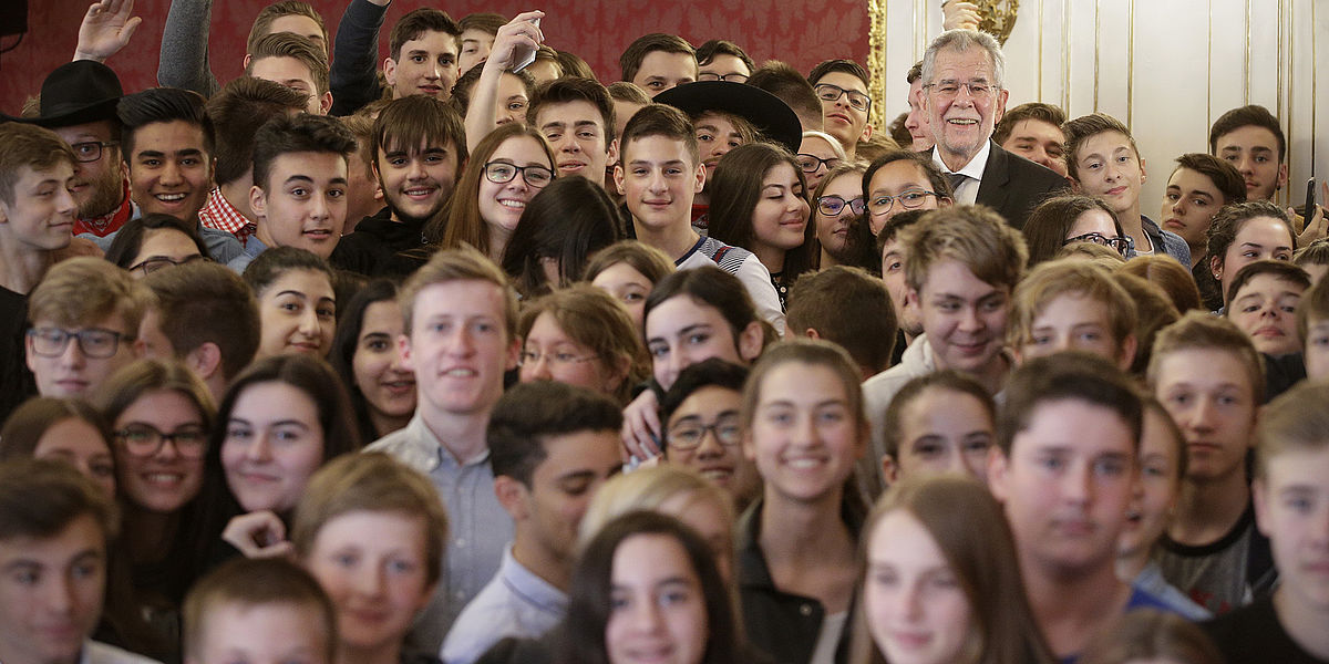 Eingeladen hatten sich die etwa 16- bis 18-jährigen Schüler durchwegs selbst: In zahlreichen Briefen wurde um einen Empfang beim Präsidenten gebeten; anlässlich des Europatages öffnete Van der Bellen nun erstmals in seiner bisher rund 100 Tage zählenden Amtszeit die Präsidentschaftskanzlei. Die rund 250 Schüler aus ganz Österreich begrüßten das Staatsoberhaupt - nach einer kurzen Führung durch die prunkvollen Räumlichkeiten - mit lautstarkem Applaus.