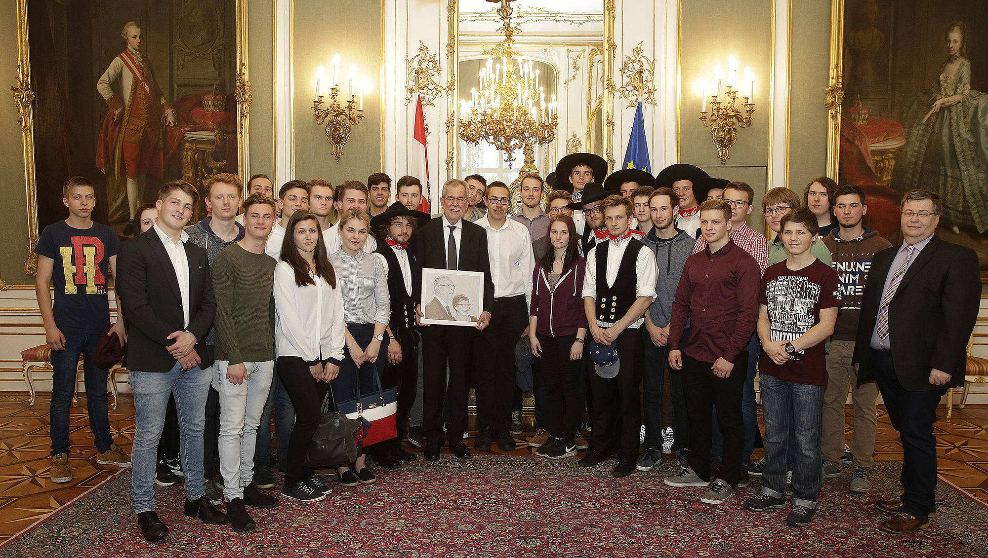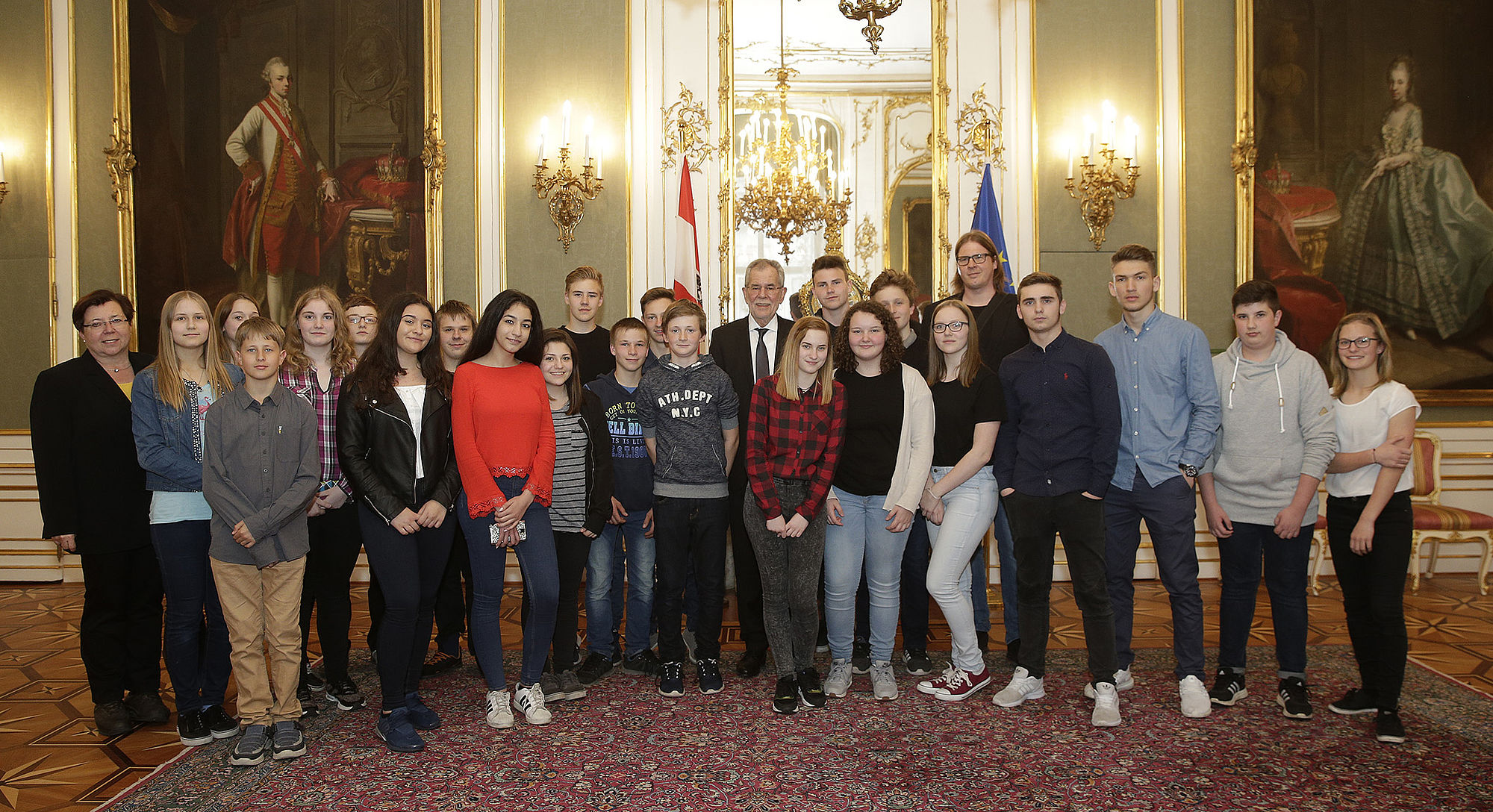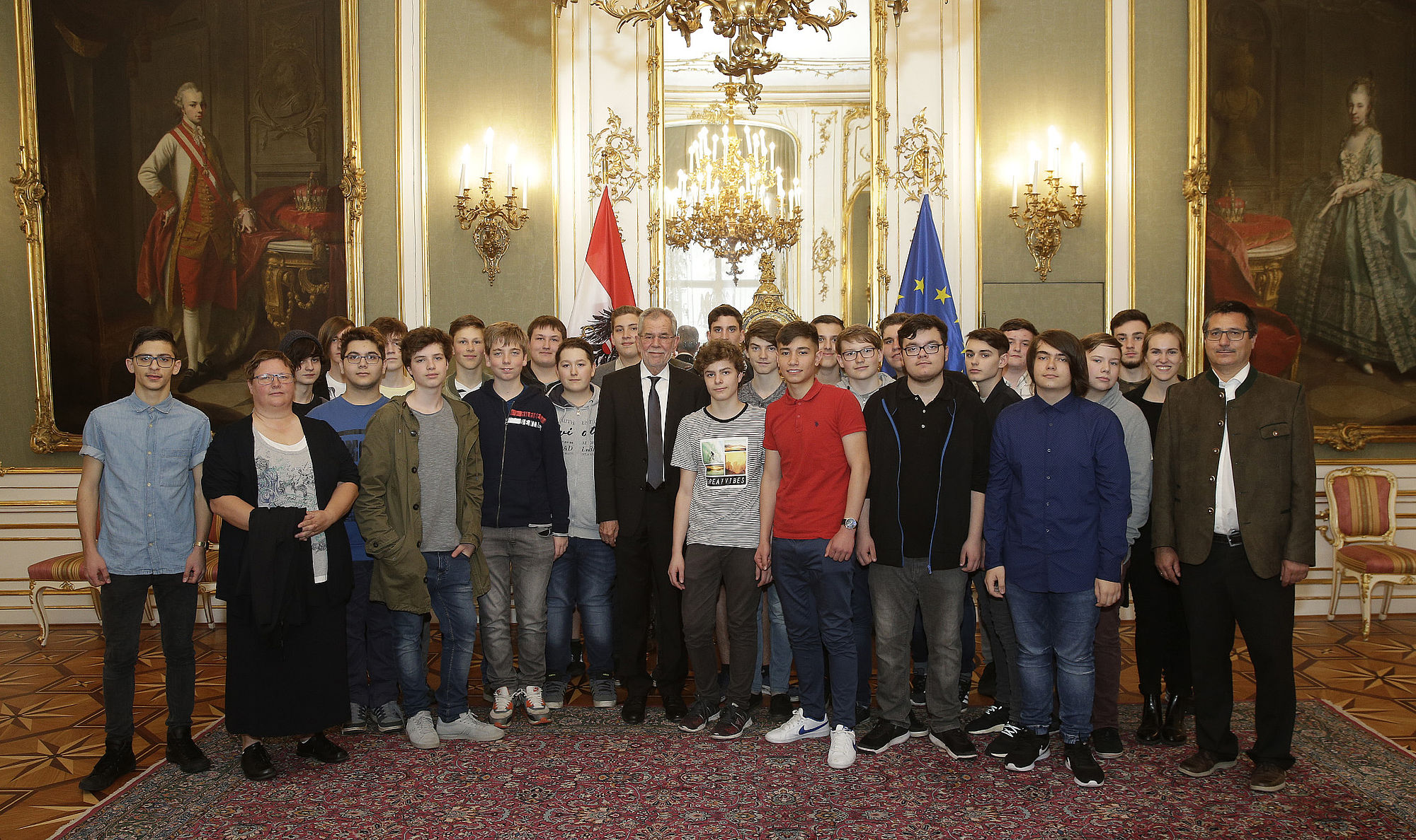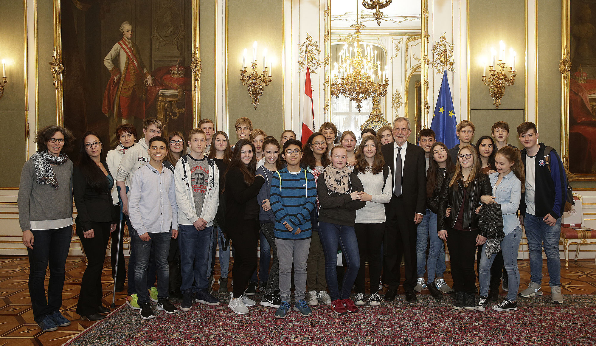 Eingeladen hatten sich die etwa 16- bis 18-jährigen Schüler durchwegs selbst: In zahlreichen Briefen wurde um einen Empfang beim Präsidenten gebeten; anlässlich des Europatages öffnete Van der Bellen nun erstmals in seiner bisher rund 100 Tage zählenden Amtszeit die Präsidentschaftskanzlei. Die rund 250 Schüler aus ganz Österreich begrüßten das Staatsoberhaupt - nach einer kurzen Führung durch die prunkvollen Räumlichkeiten - mit lautstarkem Applaus.