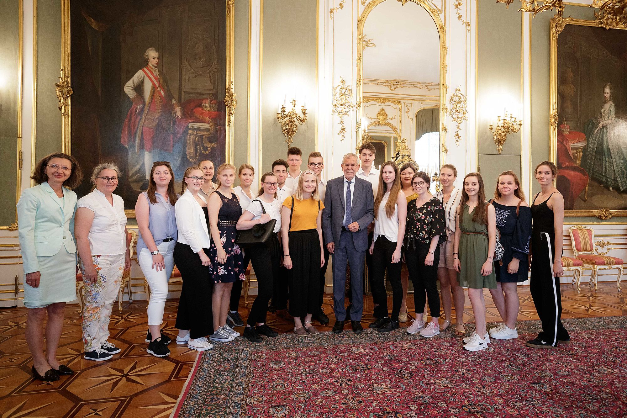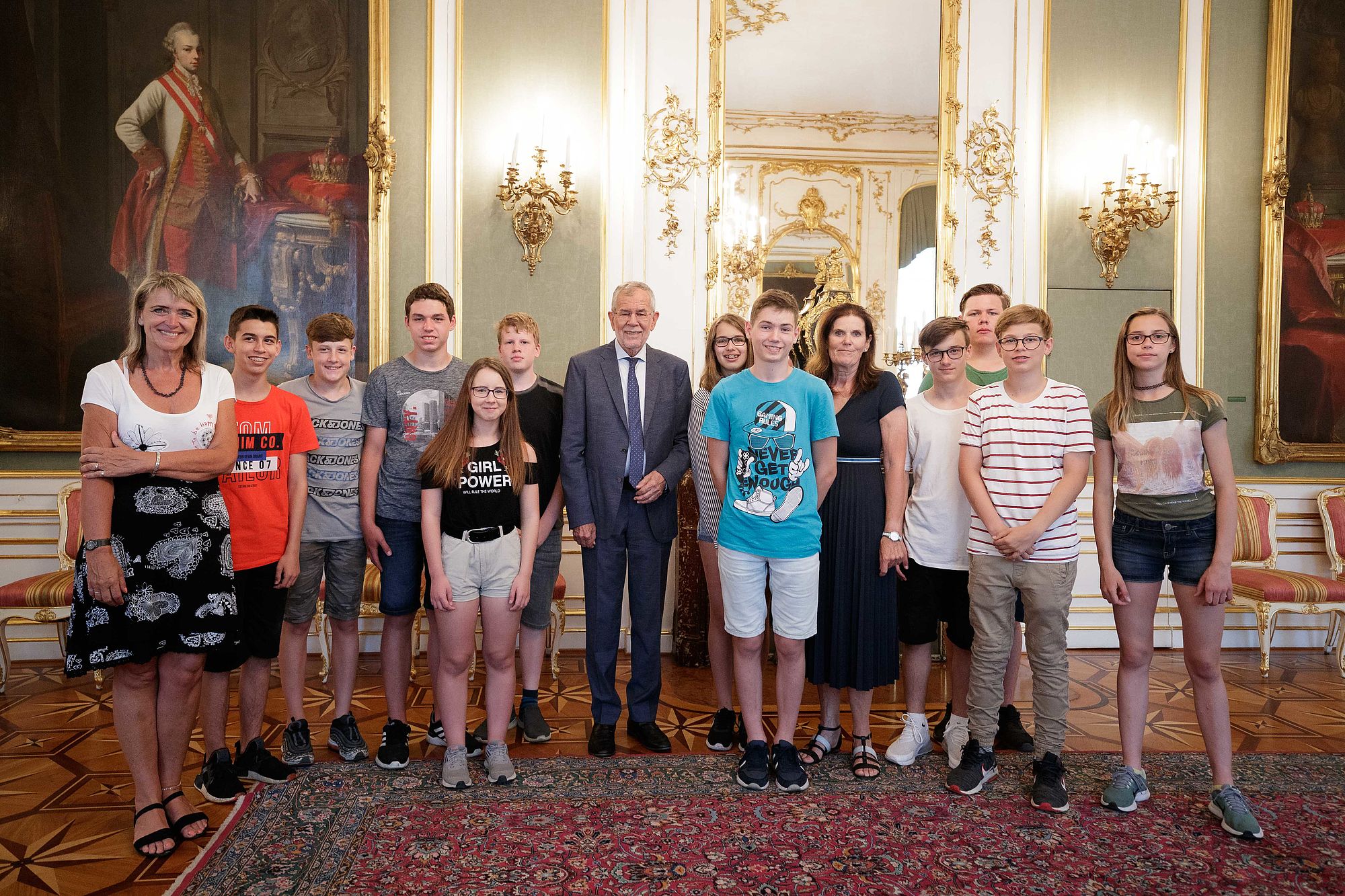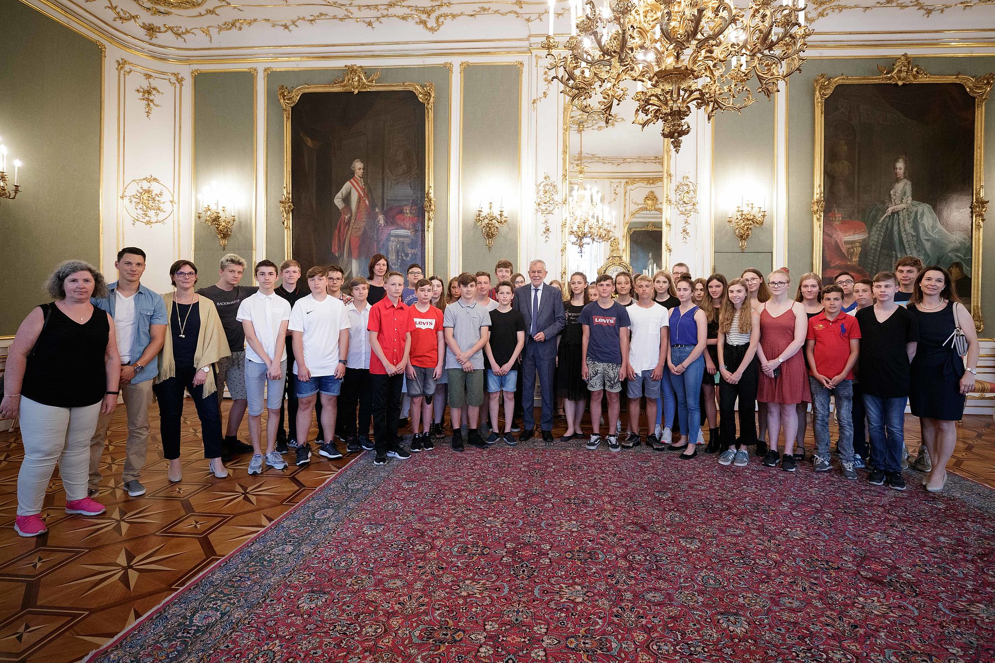 "Herzlich willkommen in der Hofburg, dem Amtssitz des Bundespräsidenten. Ich freu mich sehr, dass Sie hier sind und Leben in unser Haus bringen. Und ich freue mich über Ihr Interesse, mich hier zu besuchen." Bundespräsident Alexander Van der Bellen hat heute über 200 Schülerinnen und Schüler aus ganz Österreich in der Präsidentschaftskanzlei begrüßt. Neben vielen mitgebrachten Fragen und den Antworten des Staatsoberhauptes gab es natürlich auch für jede Schulklasse das besondere "Klassenfoto mit Bundespräsident".