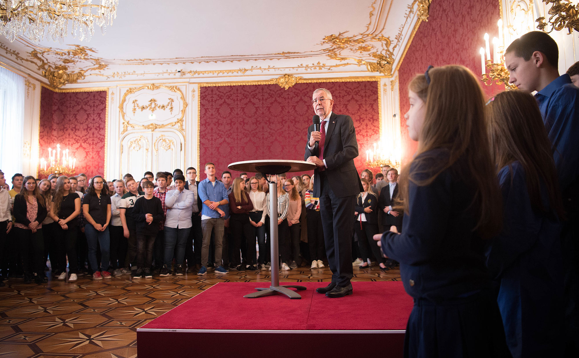 Über 250 Schülerinnen und Schüler haben Bundespräsident Alexander Van der Bellen am 7. Schülertag in der Hofburg besucht.
