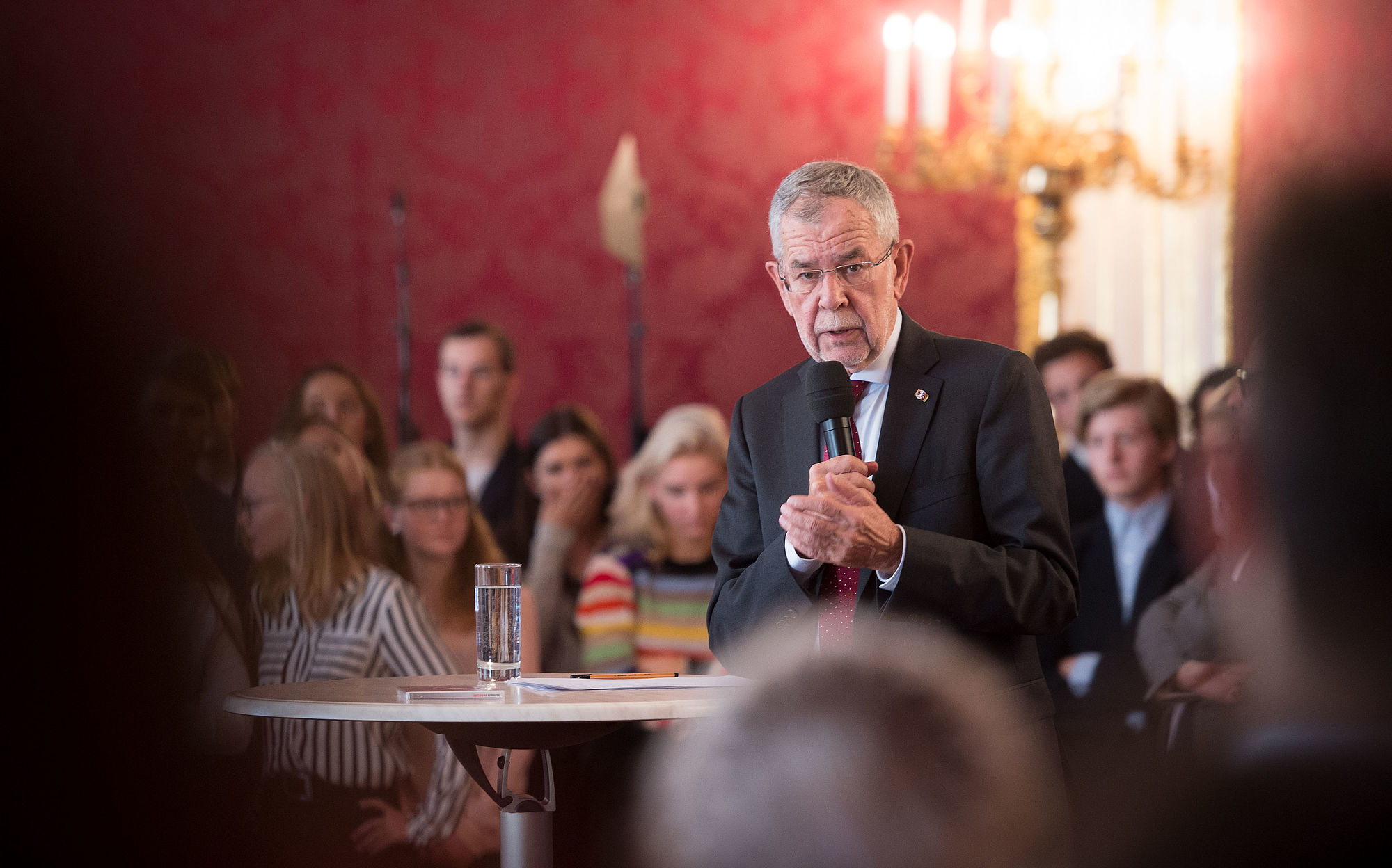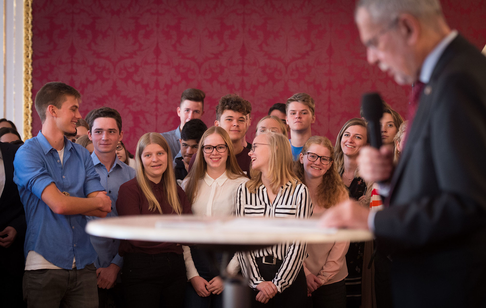 Nach einer Führung durch die Amtsräume der Präsidentschaftskanzlei gab es eine Diskussion mit Bundespräsident Alexander Van der Bellen. Der Dialog mit der Jugend ist dem Bundespräsidenten ein großes Anliegen.