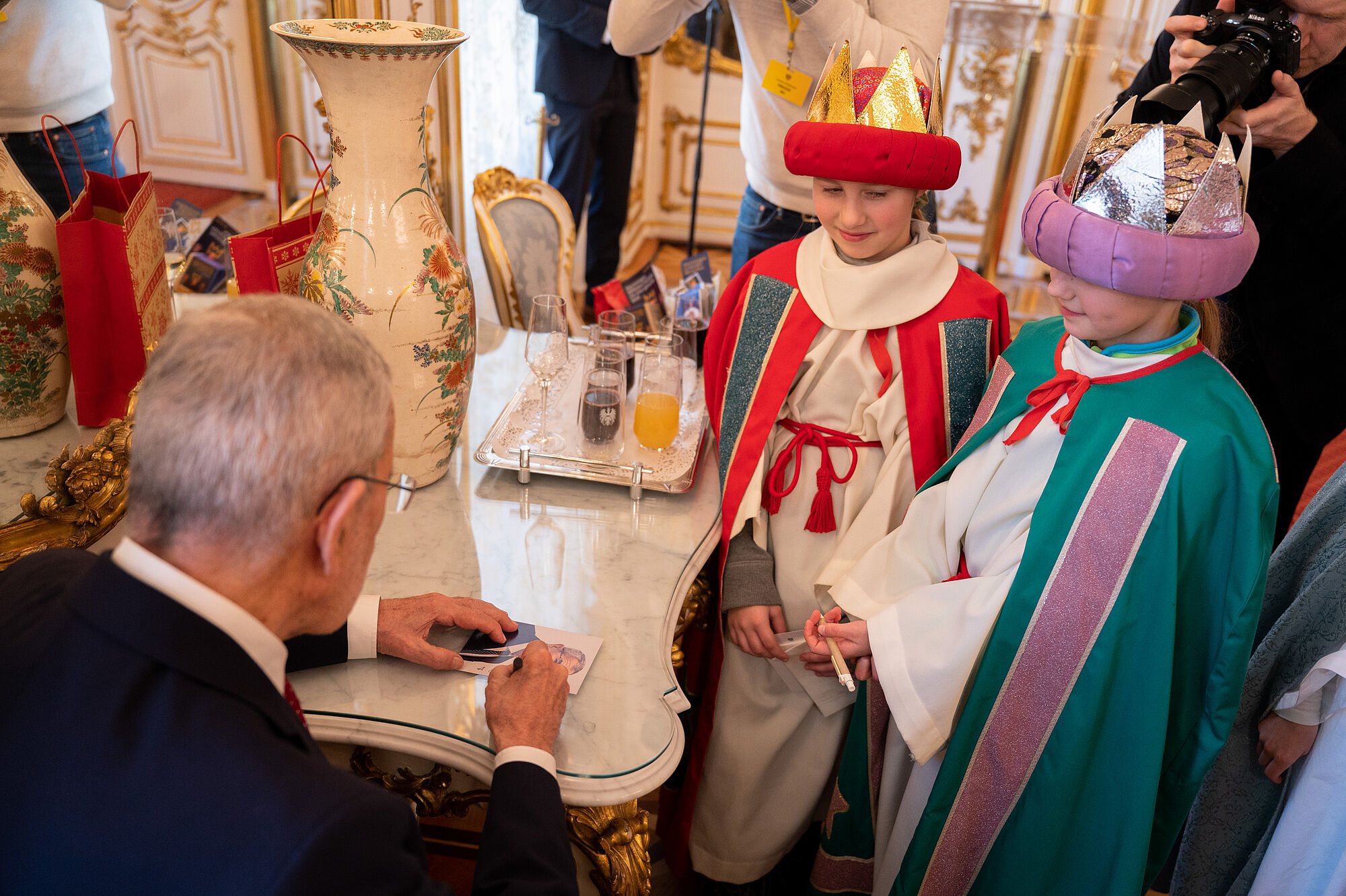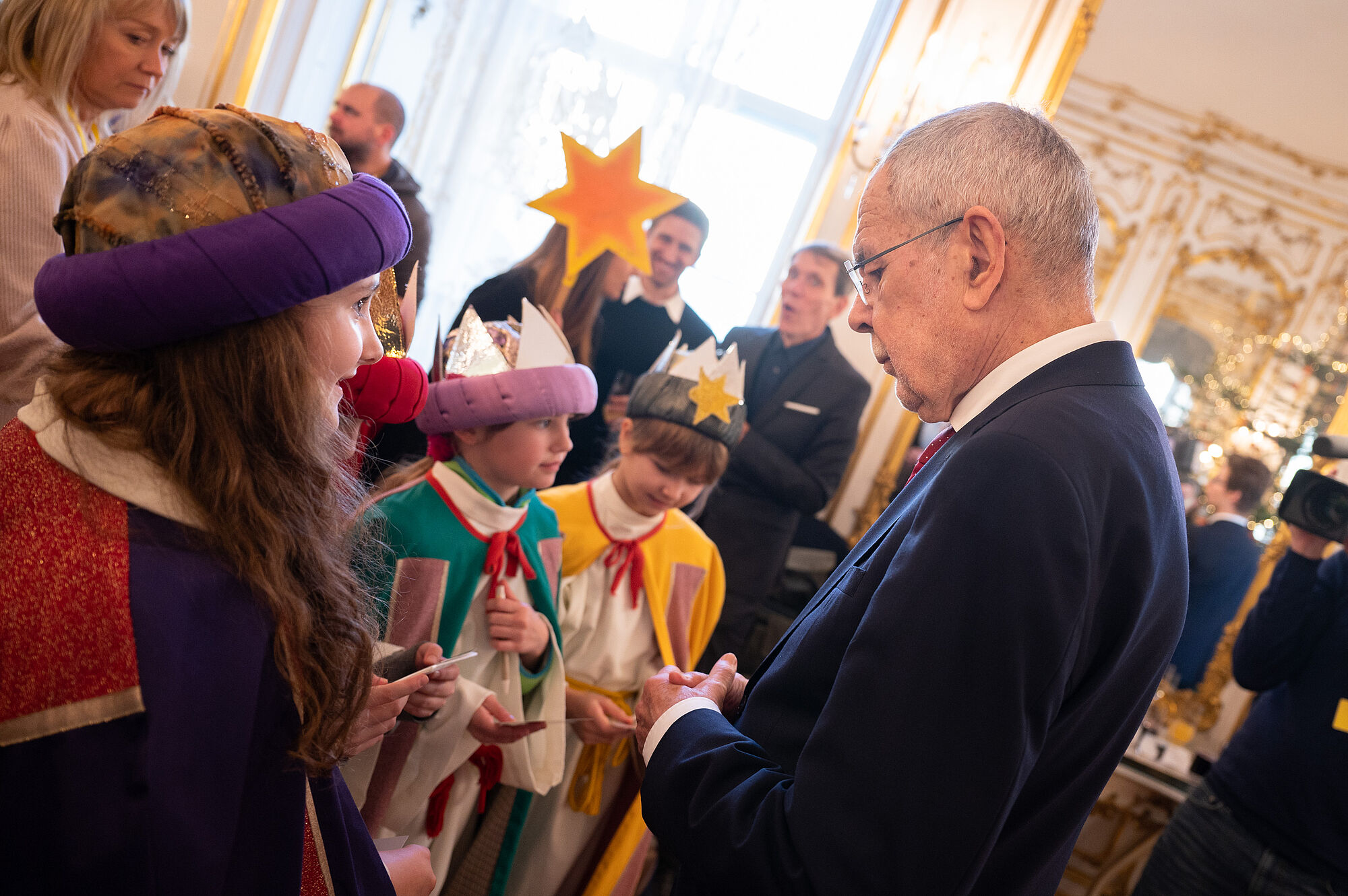 Großen Respekt zollte der Bundespräsident dem Einsatz der österreichweit 85.000 als Kaspar, Melchior und Balthasar verkleideten Kinder, die in den verbleibenden Ferientagen bis 8. Jänner in allen Bundesländern von Tür zu Tür ziehen und singend um Unterstützung bitten für Hilfsprojekte der Dreikönigsaktion in armen Weltregionen. Selbst durch die Corona-Pandemie hätten sich die Beteiligten in den vergangenen beiden Jahren nicht beirren lassen und durch Hygienemaßnahmen und Online-Angebote neue Wege zu den Menschen gefunden. "Mit dem Geld, das ihr sammelt, wird vor Ort geholfen, gemeinsam mit etablierten Partnerorganisationen", betonte Van der Bellen.