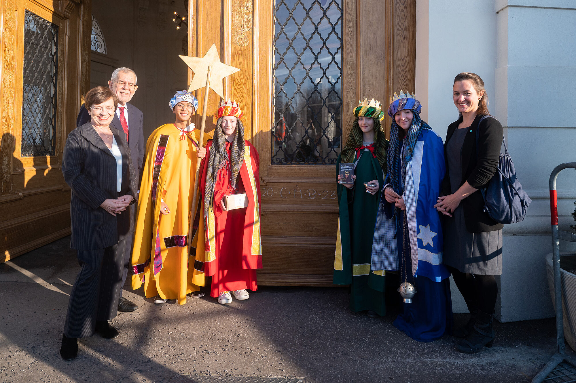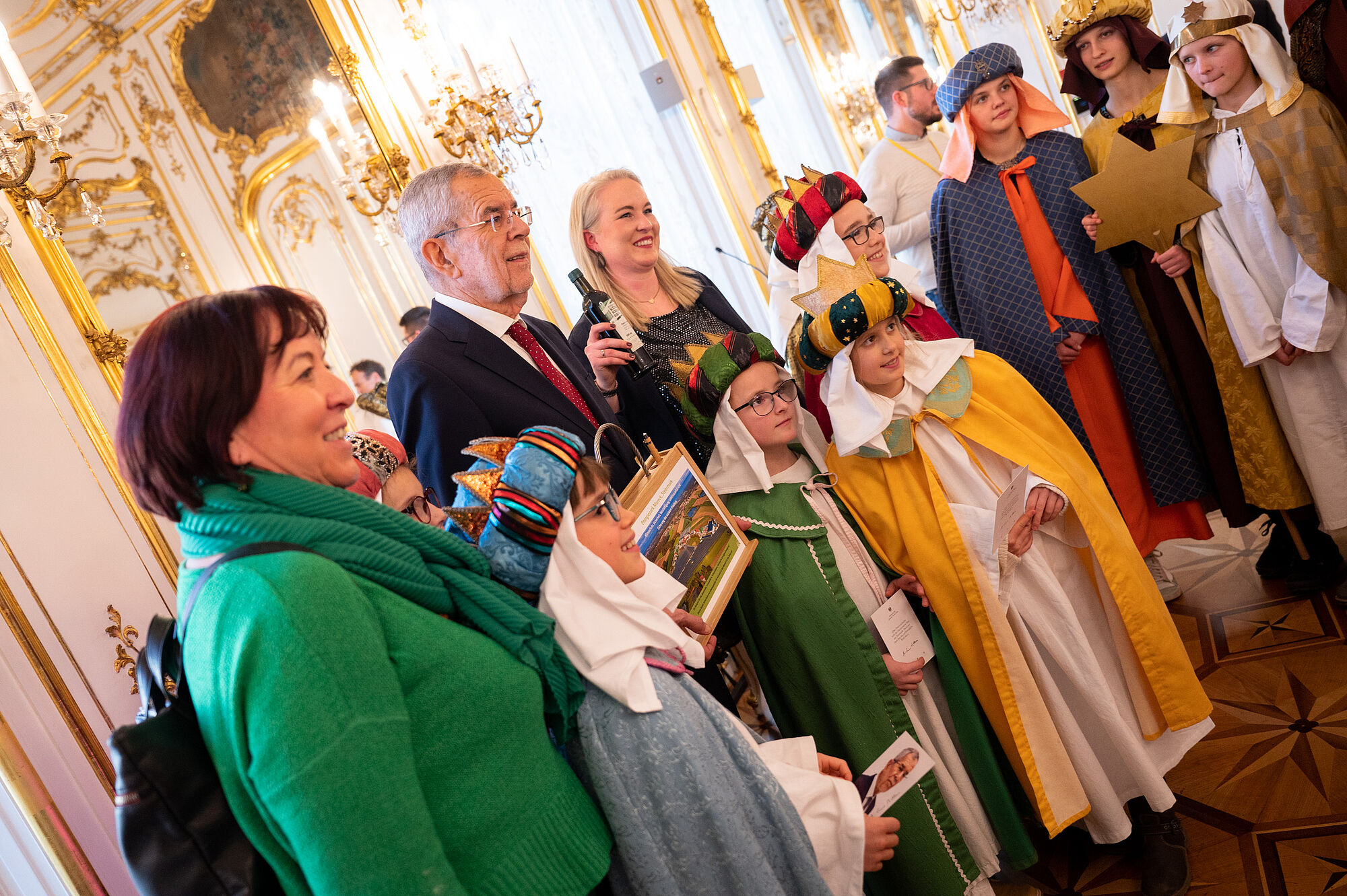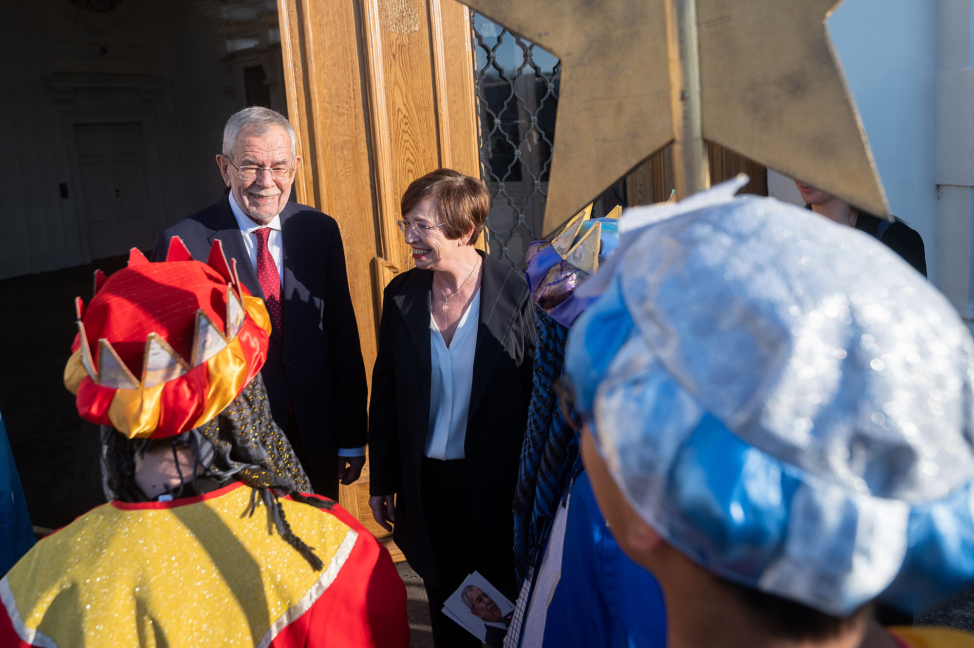 Bundespräsident Alexander Van der Bellen hat am Freitag Sternsingergruppen aus sechs österreichischen Bundesländern in der Wiener Hofburg empfangen. Die als Könige verkleideten Kinder und Jugendlichen wünschten dem von seiner Gattin Doris Schmidauer begleiteten Staatsoberhaupt Segen und "friedliches Zusammenleben, Solidarität und Toleranz" für das ganze Land und über die Grenzen hinaus. Van der Bellen betonte, durch eine Spende an die Sternsinger sei man unabhängig von der religiösen Überzeugung "wie ein vierter König" und bezeuge, "dass Hilfe, Zusammenhalt und füreinander Dasein möglich ist".