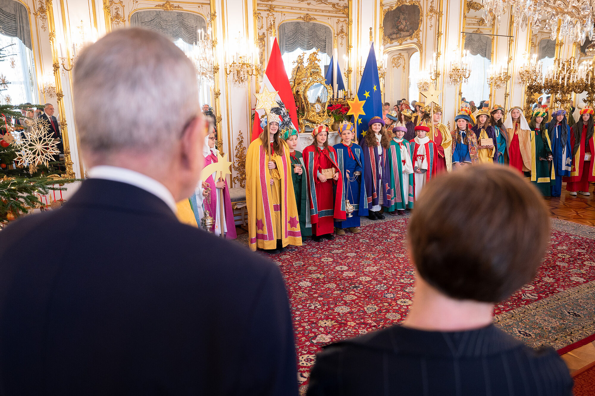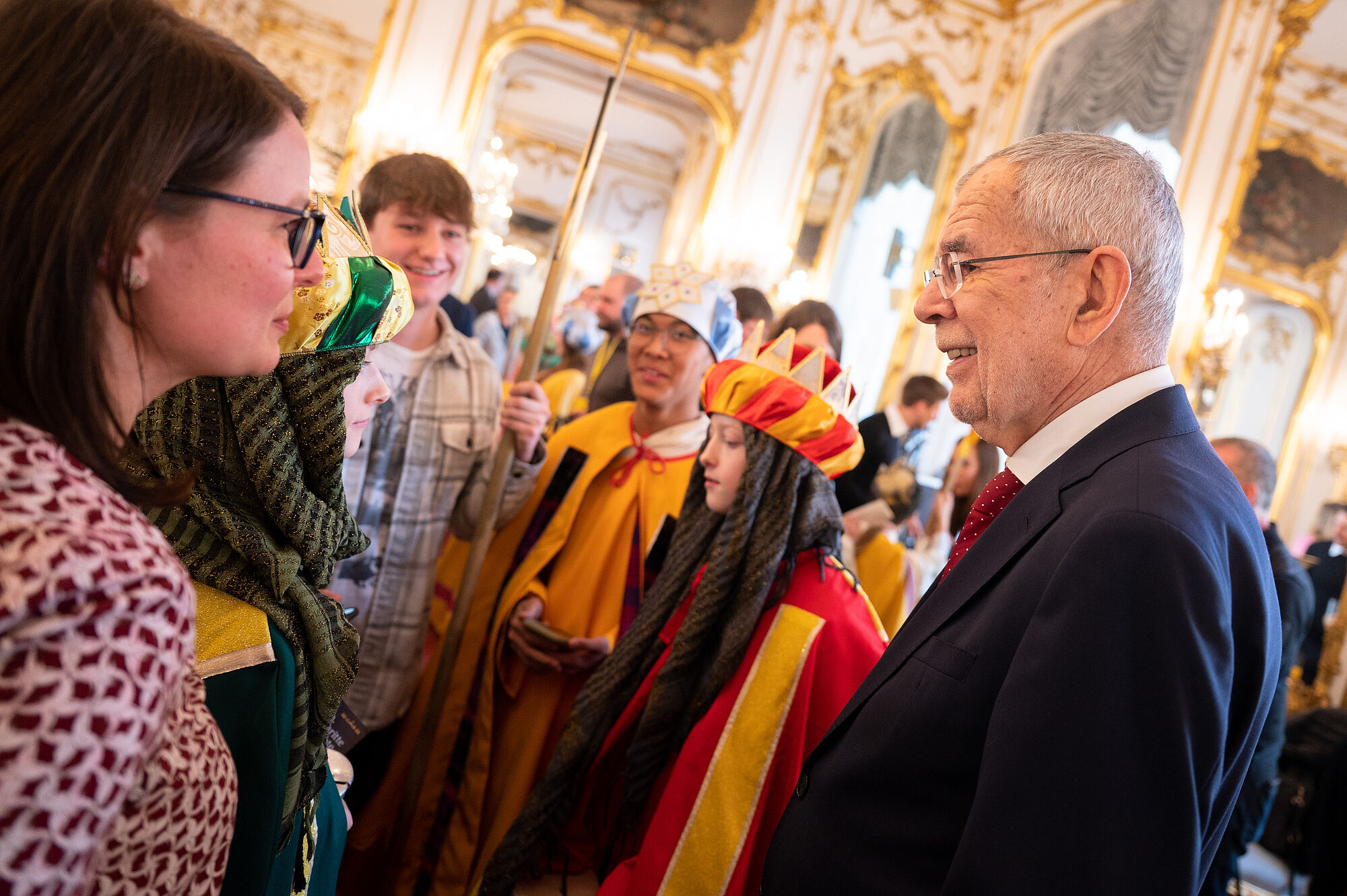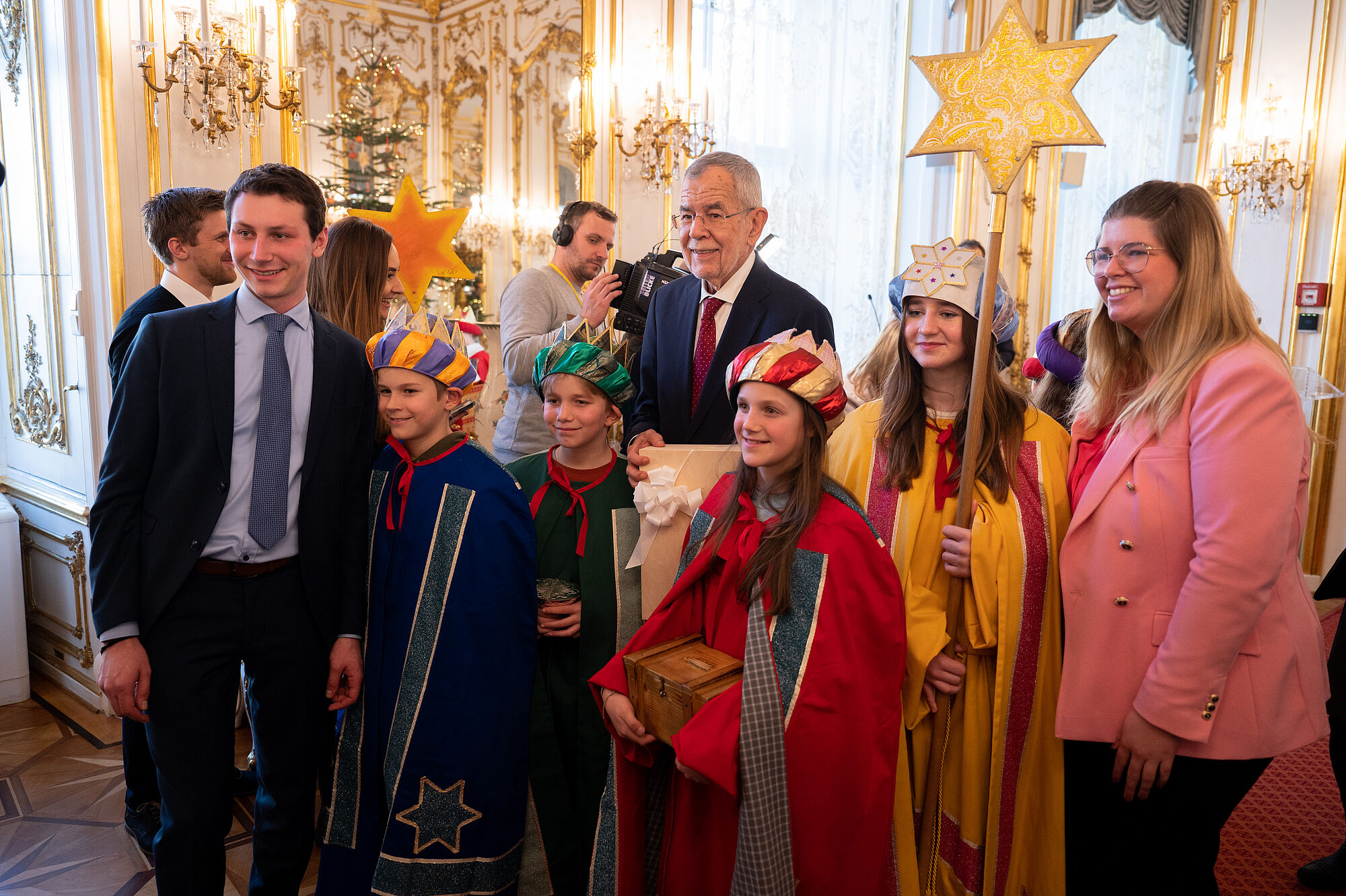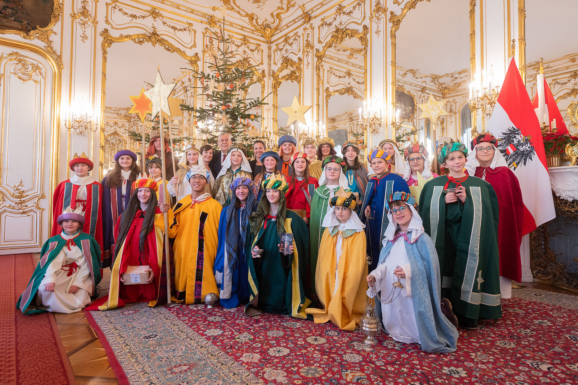 Bundespräsident Alexander Van der Bellen hat am Freitag Sternsingergruppen aus sechs österreichischen Bundesländern in der Wiener Hofburg empfangen. Die als Könige verkleideten Kinder und Jugendlichen wünschten dem von seiner Gattin Doris Schmidauer begleiteten Staatsoberhaupt Segen und "friedliches Zusammenleben, Solidarität und Toleranz" für das ganze Land und über die Grenzen hinaus. Van der Bellen betonte, durch eine Spende an die Sternsinger sei man unabhängig von der religiösen Überzeugung "wie ein vierter König" und bezeuge, "dass Hilfe, Zusammenhalt und füreinander Dasein möglich ist".