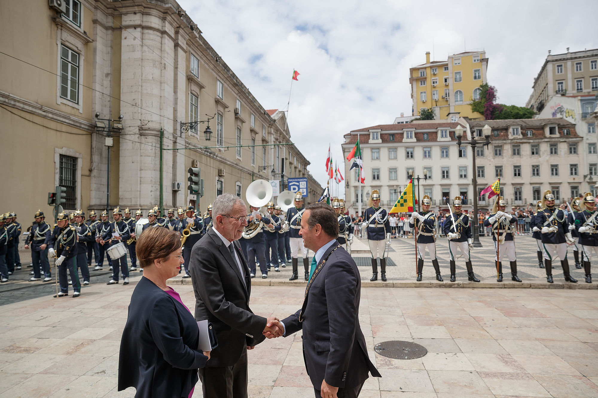 Der Bundespräsident schloss seinen offiziellen Staatsbesuch in Portugal am Mittwoch ab. Auf dem Programm standen Treffen mit Parlamentspräsident Eduardo Ferro Rodrigues und Bürgermeister Fernando Medina, inklusive der symbolischen Übergabe der "Schlüssel der Stadt Lissabon".