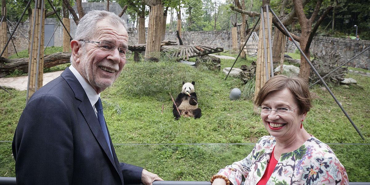Der Staatsspitze wurde auch eine besondere Ehre zuteil: Sie durfte manchen Bären ein bisschen Futter verabreichen. In dem Park leben auch "Auslandsösterreicher": Drei der insgesamt rund 30 Pandas wurden im Tiergarten Schönbrunn geboren.
