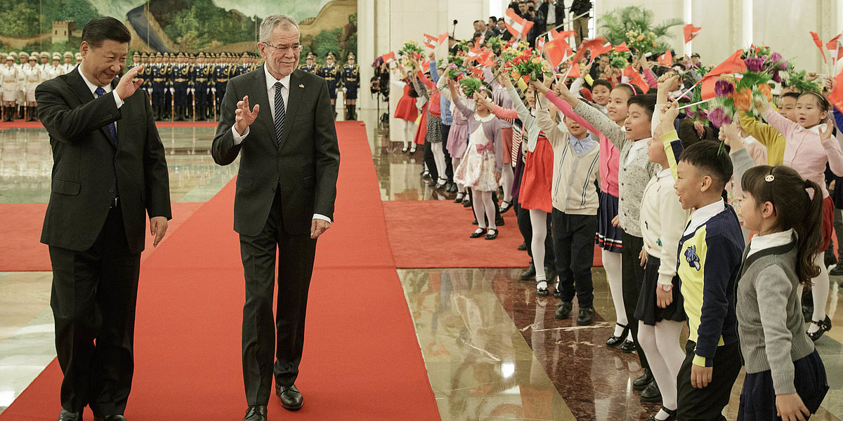 Es war ein Empfang mit allen militärischen Ehren und einer jubelnden Kinderschar: Bundespräsident Alexander Van der Bellen und fünf Vertreter der schwarz-blauen Bundesregierung sind am Sonntagnachmittag (Ortszeit) in Peking mit der Staatsspitze Chinas zusammengetroffen.