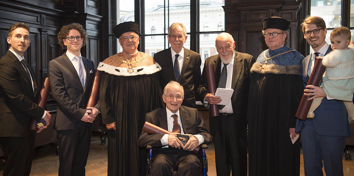 Nach 1945 sei es der Republik schwergefallen, "sich der Geschichte zu stellen und sich einzugestehen, dass Österreich sowohl Opfer als auch Täter war", sagte Bundespräsident Alexander Van der Bellen bei der Veranstaltung. Es wurden kaum Einladungen an Vertriebene ausgesprochen, in die Heimat zurückzukehren, "und wenn sie kamen, so waren sie nicht immer willkommen. Die Republik Österreich muss sich heute die gemachten Fehler eingestehen". Die Ehrendoktorate seien "Zeichen, dass Österreich die Konsequenzen zieht", so der Präsident, der sich bei Shaw und Witz für die Annahme der Ehrung bedankte.