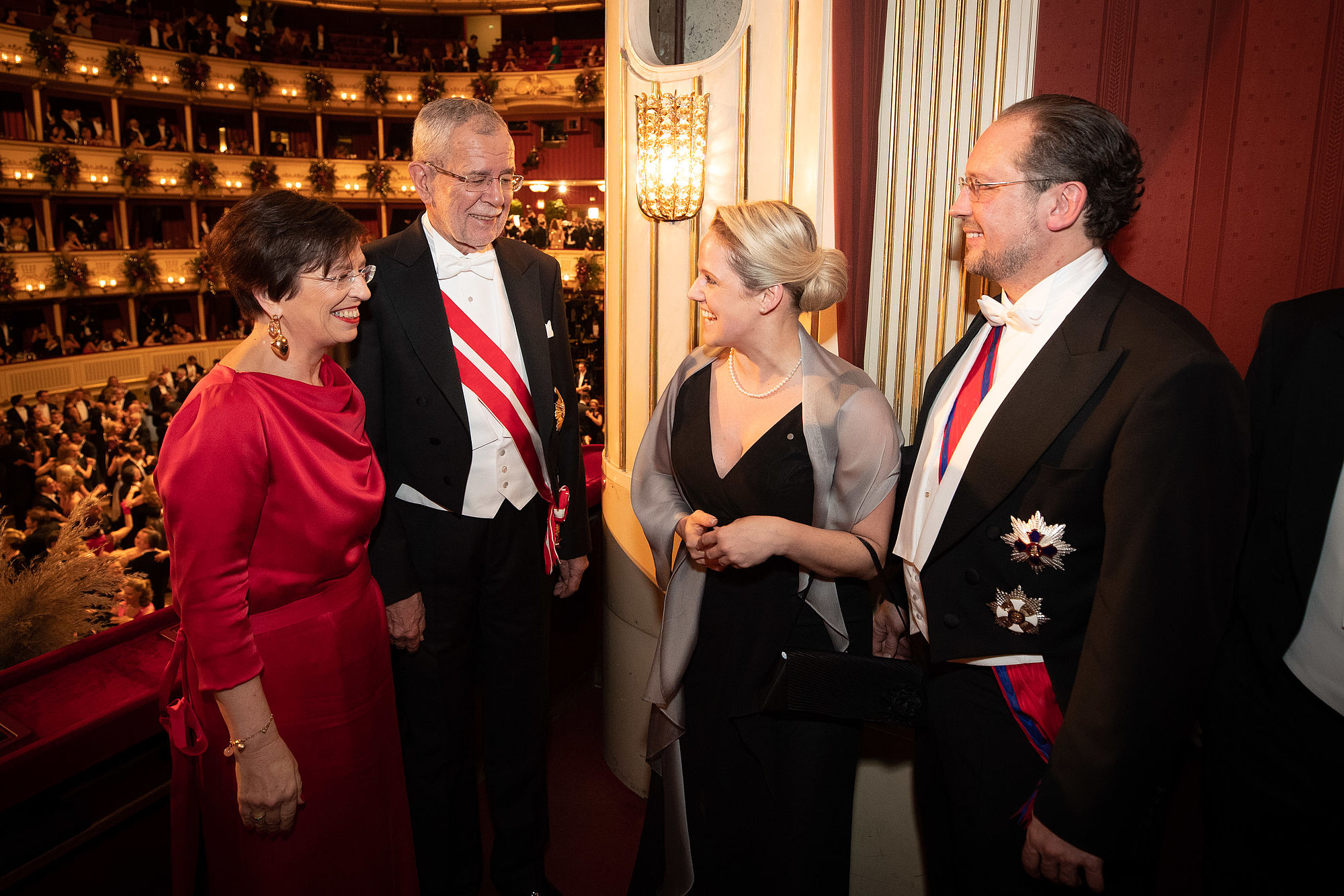 An der Spitze des offiziellen Österreichs war Bundespräsident Alexander Van der Bellen in die Oper gekommen. "Die Eröffnung war großartig, die Choreografie war perfekt, die Debütanten schön und diszipliniert", sagte das Staatsoberhaupt der APA. "Es gibt jedes Jahr etwas neues, letztes Jahr die Hebefigur, heuer haben die Debütanten gesungen", freute sich Ehefrau Doris Schmidauer. In der Loge des Bundespräsidenten gab es am Donnerstagabend regen Andrang.