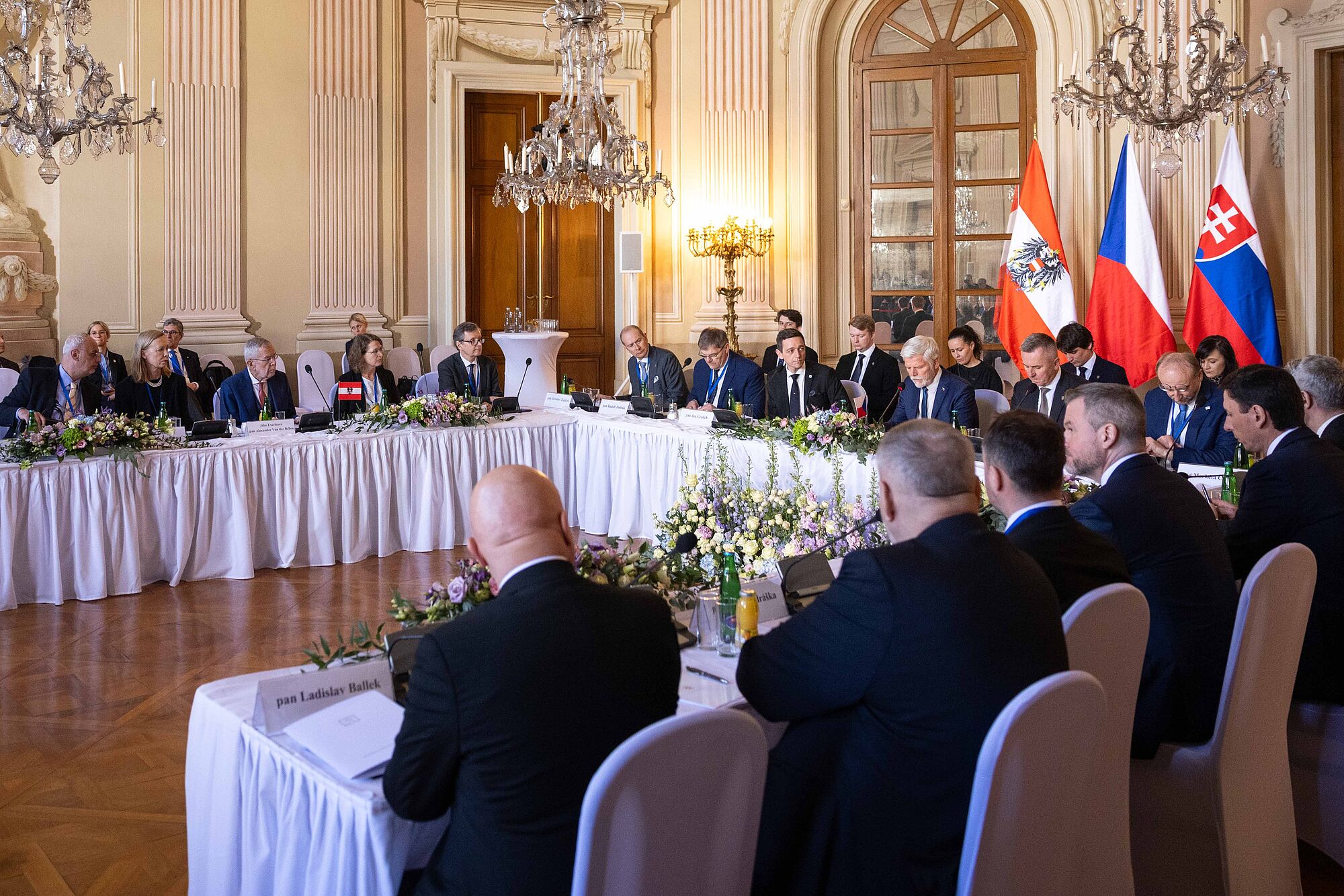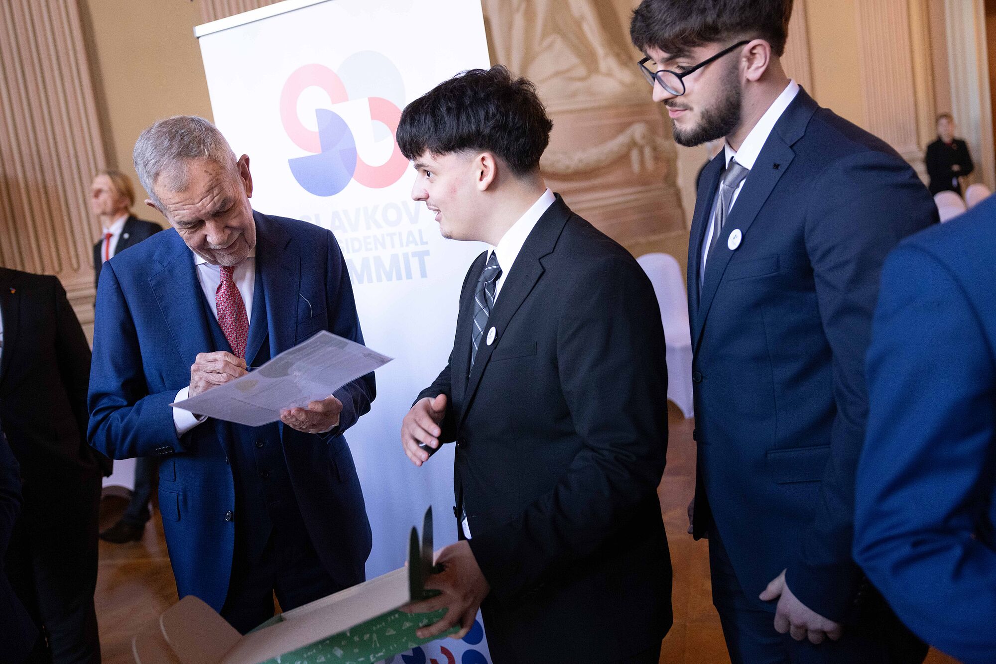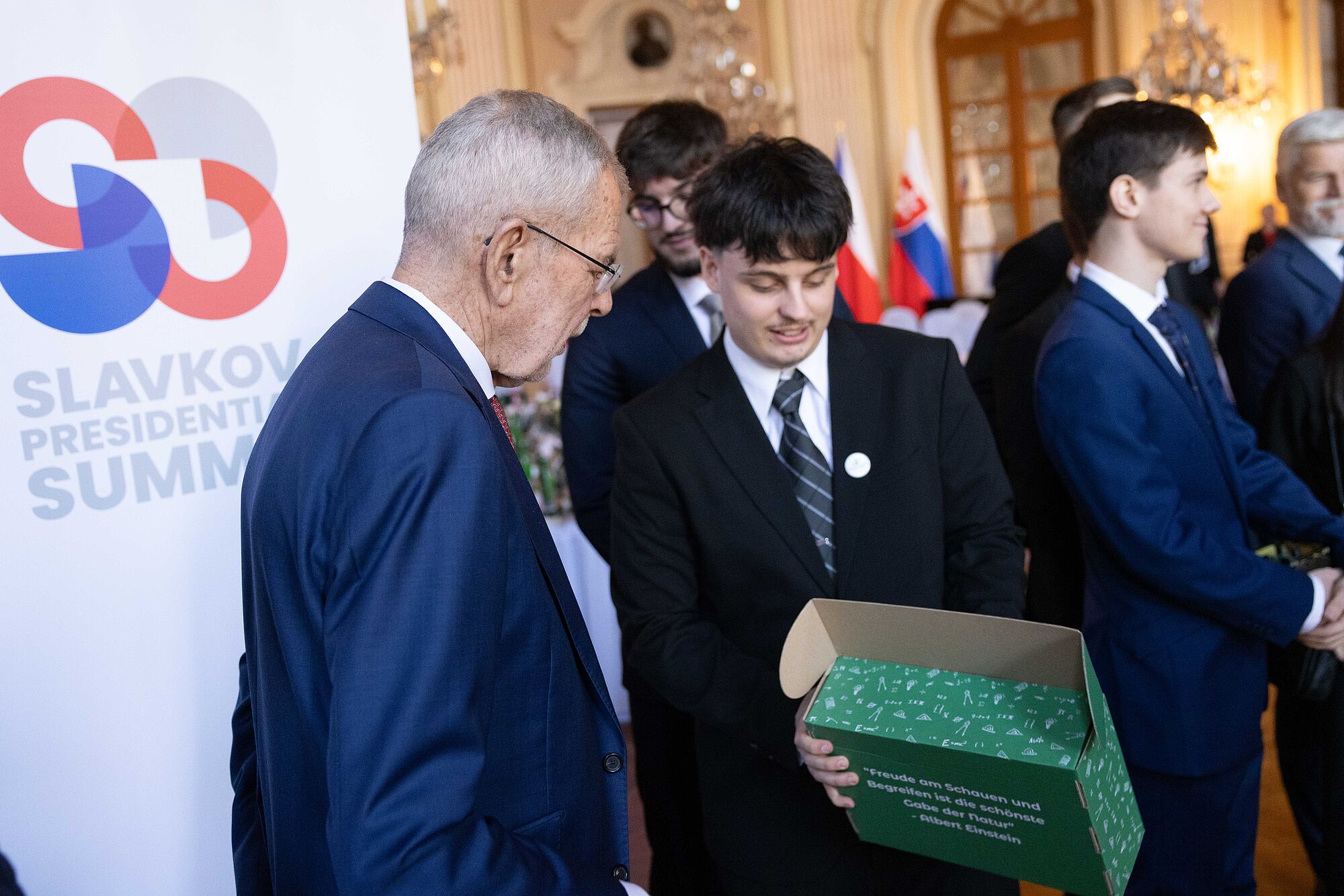 Van der Bellen nannte einige konkrete Beispiele für die Zusammenarbeit im Slavkov-Format. "So wirkten Tschechien, die Slowakei und Österreich gemeinsam erfolgreich darauf hin, dass Deutschland seine umstrittene Gastransitgebühr aufgab." Die "hohe Qualität" der grenzüberschreitenden Zusammenarbeit sei auch 2021 sichtbar geworden, als österreichische Rettungskräfte beim Tornado in Südmähren mithalfen. 2023 halfen Feuerwehrleute aus Tschechien in Oberösterreich, einen Großbrand im Zentrum von Ulrichsberg zu löschen. Und Feuerwehrleute aus der Slowakei unterstützten dabei, den Waldbrand im Rax-Gebiet zu bekämpfen. Van der Bellen äußerte zuversichtlich, dass "diese engen grenzüberschreitenden Beziehungen unserer drei Länder in Zukunft sogar noch enger und intensiver werden".