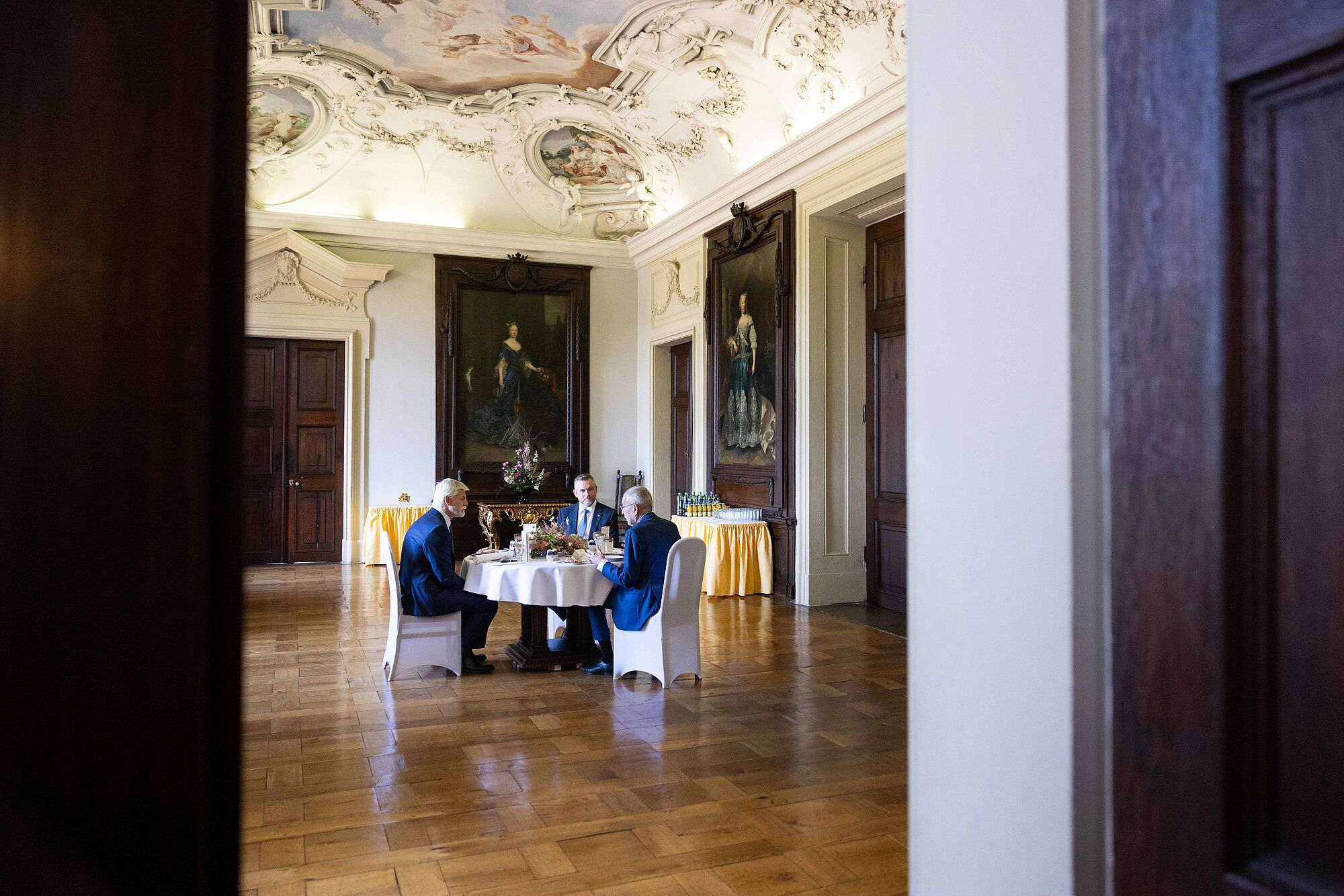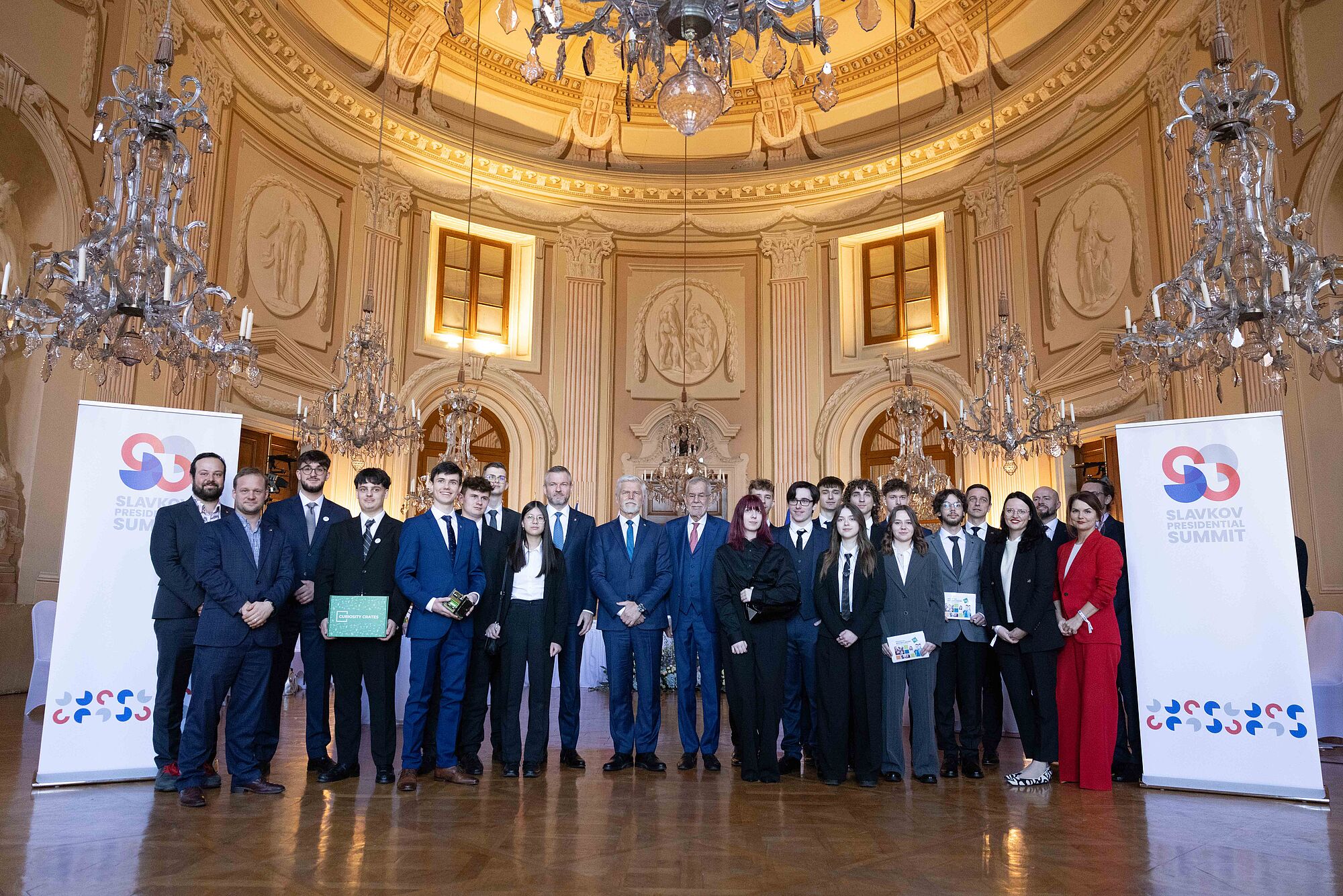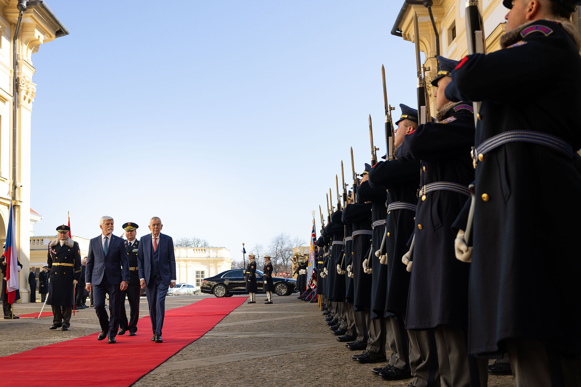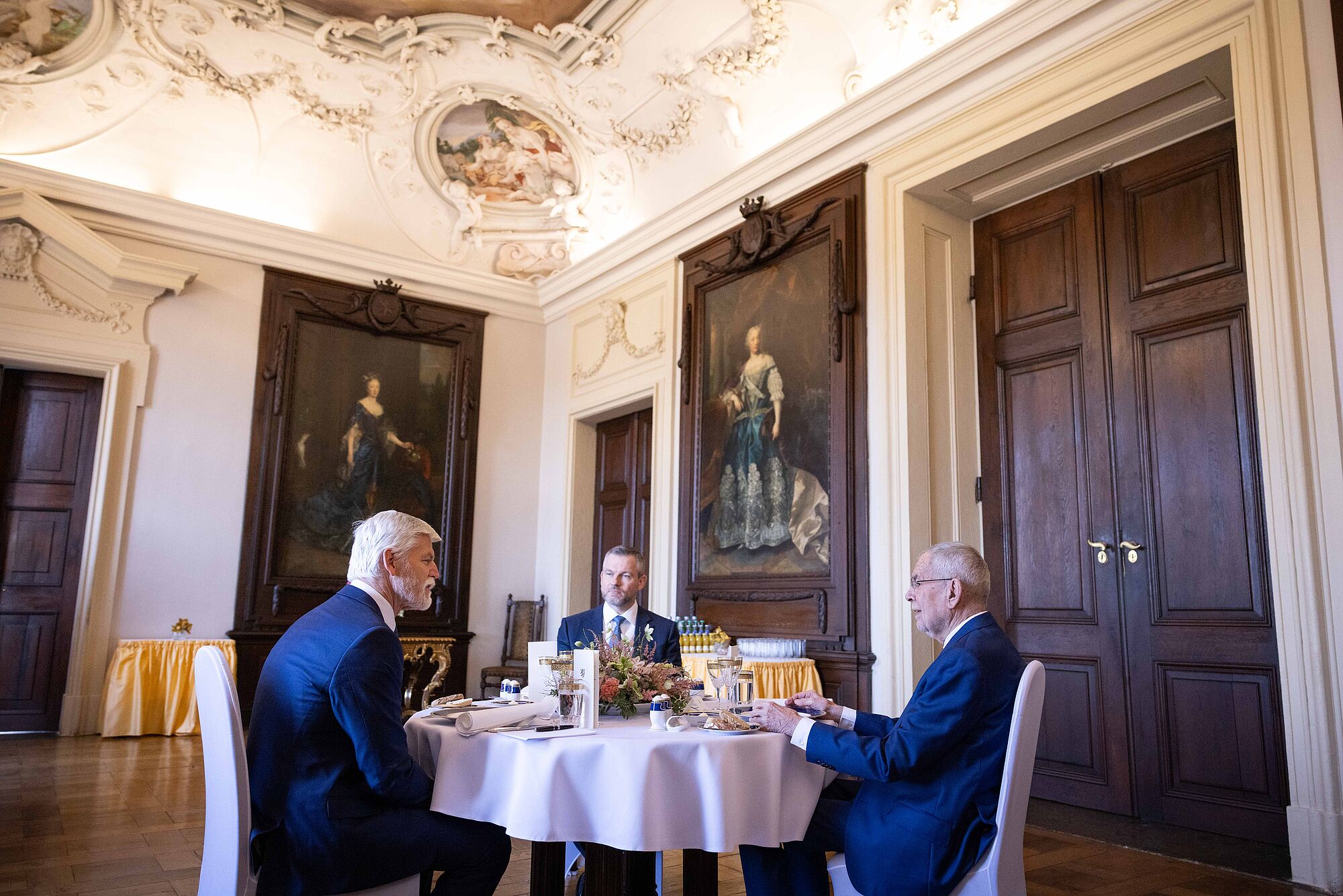 Van der Bellen nannte einige konkrete Beispiele für die Zusammenarbeit im Slavkov-Format. "So wirkten Tschechien, die Slowakei und Österreich gemeinsam erfolgreich darauf hin, dass Deutschland seine umstrittene Gastransitgebühr aufgab." Die "hohe Qualität" der grenzüberschreitenden Zusammenarbeit sei auch 2021 sichtbar geworden, als österreichische Rettungskräfte beim Tornado in Südmähren mithalfen. 2023 halfen Feuerwehrleute aus Tschechien in Oberösterreich, einen Großbrand im Zentrum von Ulrichsberg zu löschen. Und Feuerwehrleute aus der Slowakei unterstützten dabei, den Waldbrand im Rax-Gebiet zu bekämpfen. Van der Bellen äußerte zuversichtlich, dass "diese engen grenzüberschreitenden Beziehungen unserer drei Länder in Zukunft sogar noch enger und intensiver werden".