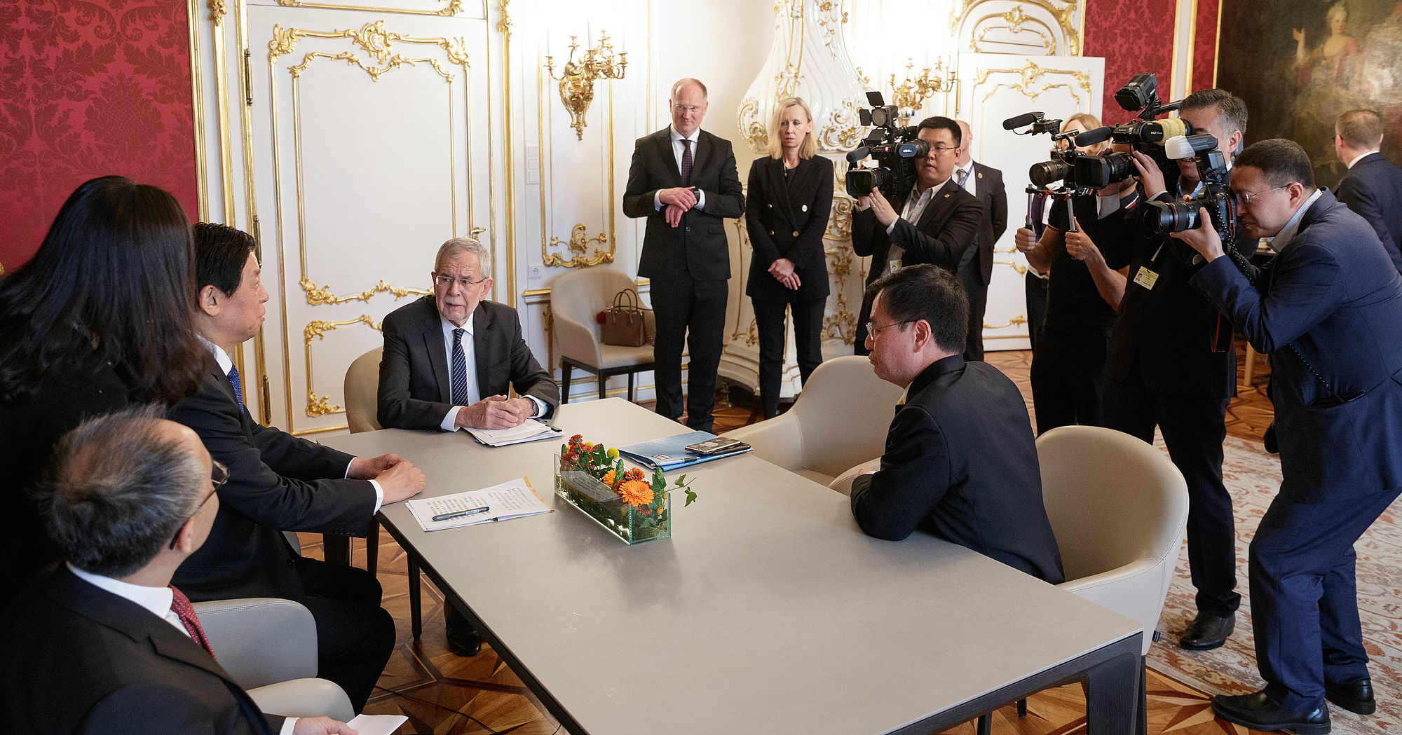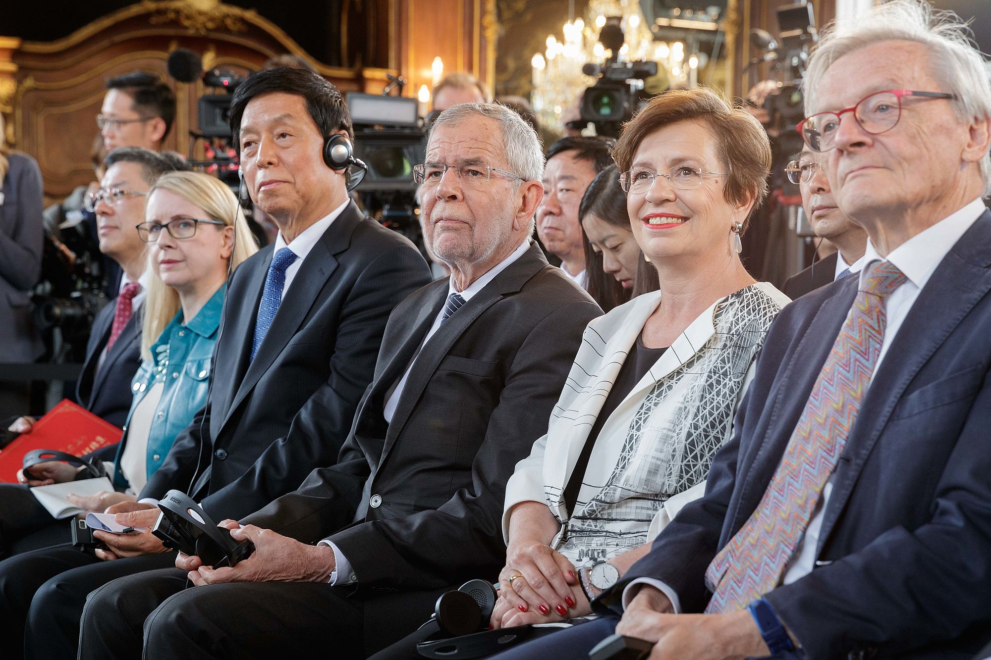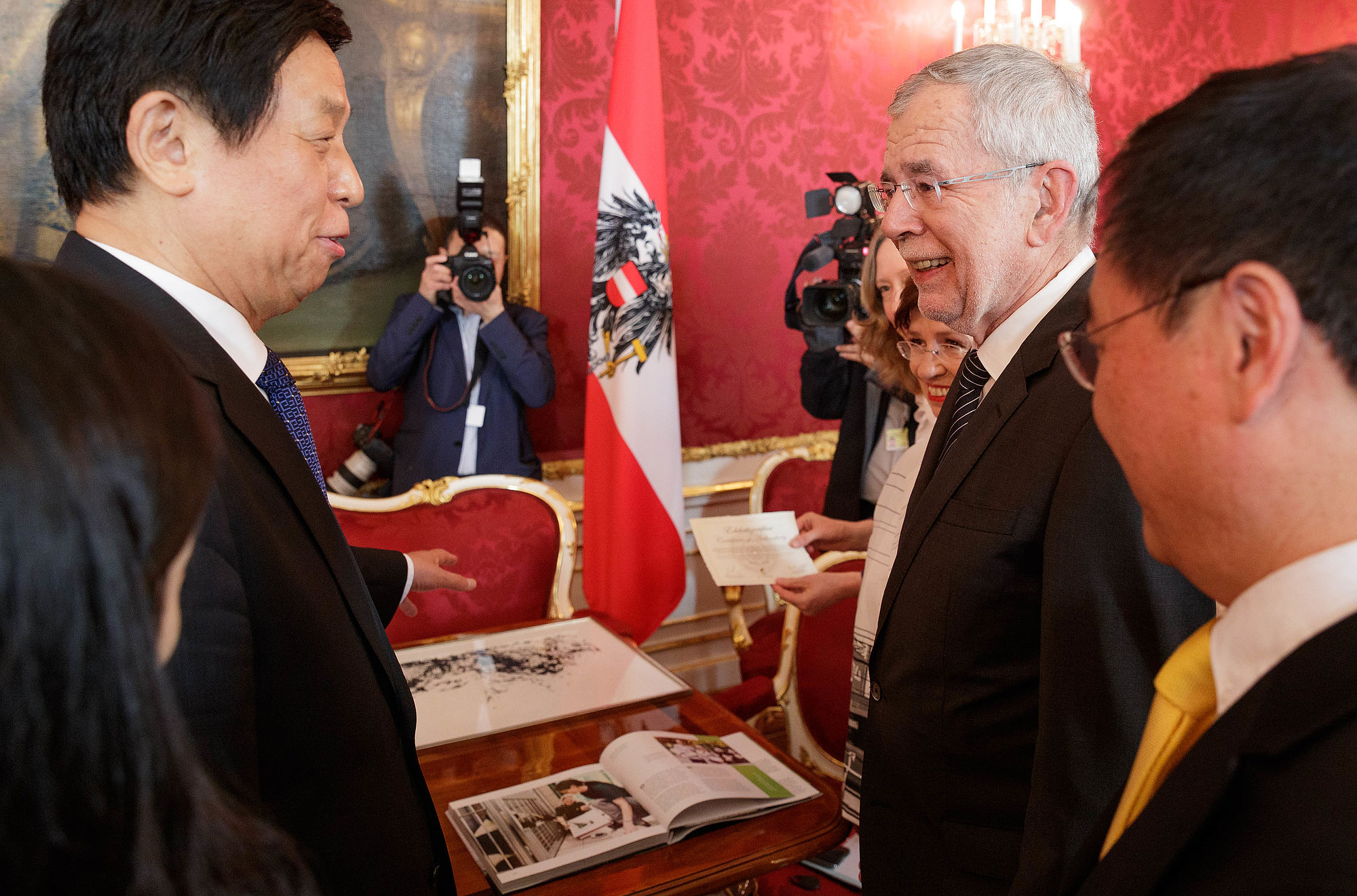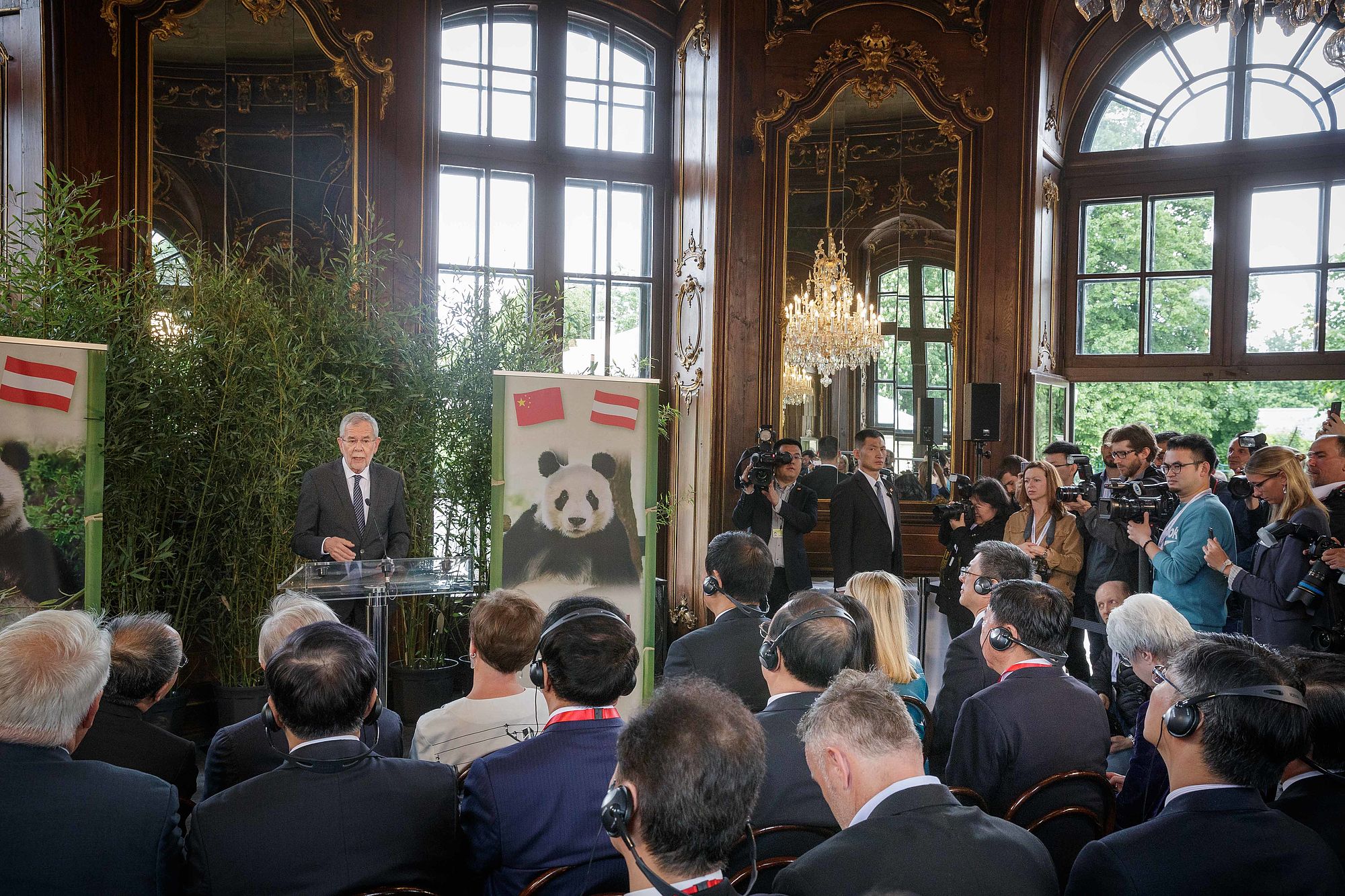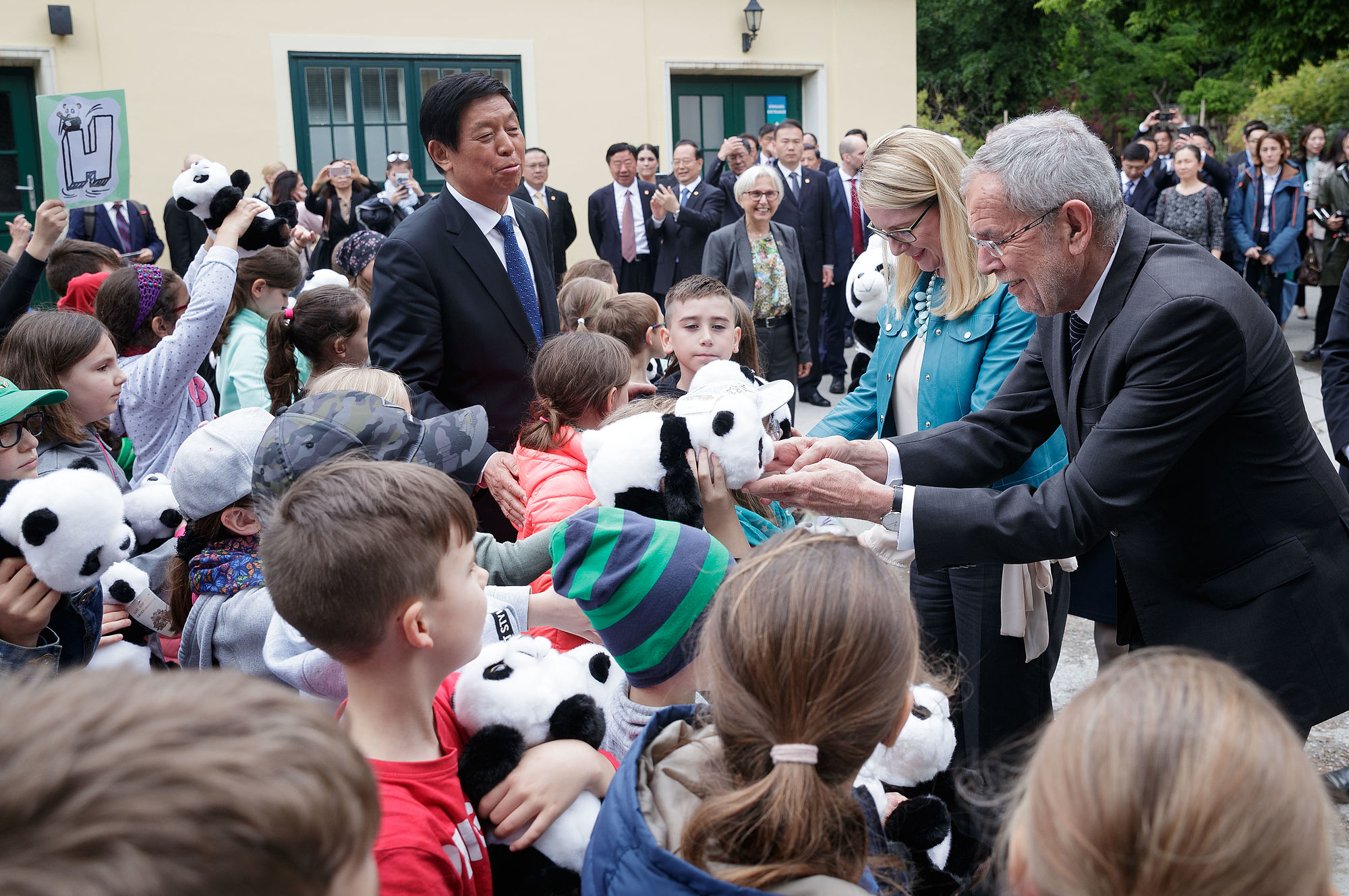 Nach einem Arbeitsgespräch mit dem Vorsitzenden des Ständigen Ausschusses des Nationalen Volkskongresses der Volksrepublik China, Li Zhanshu, in der Präsidentschaftskanzlei übernimmt der Tiergarten Schönbrunn offiziell das Panda-Männchen Yuan Yuan aus China.